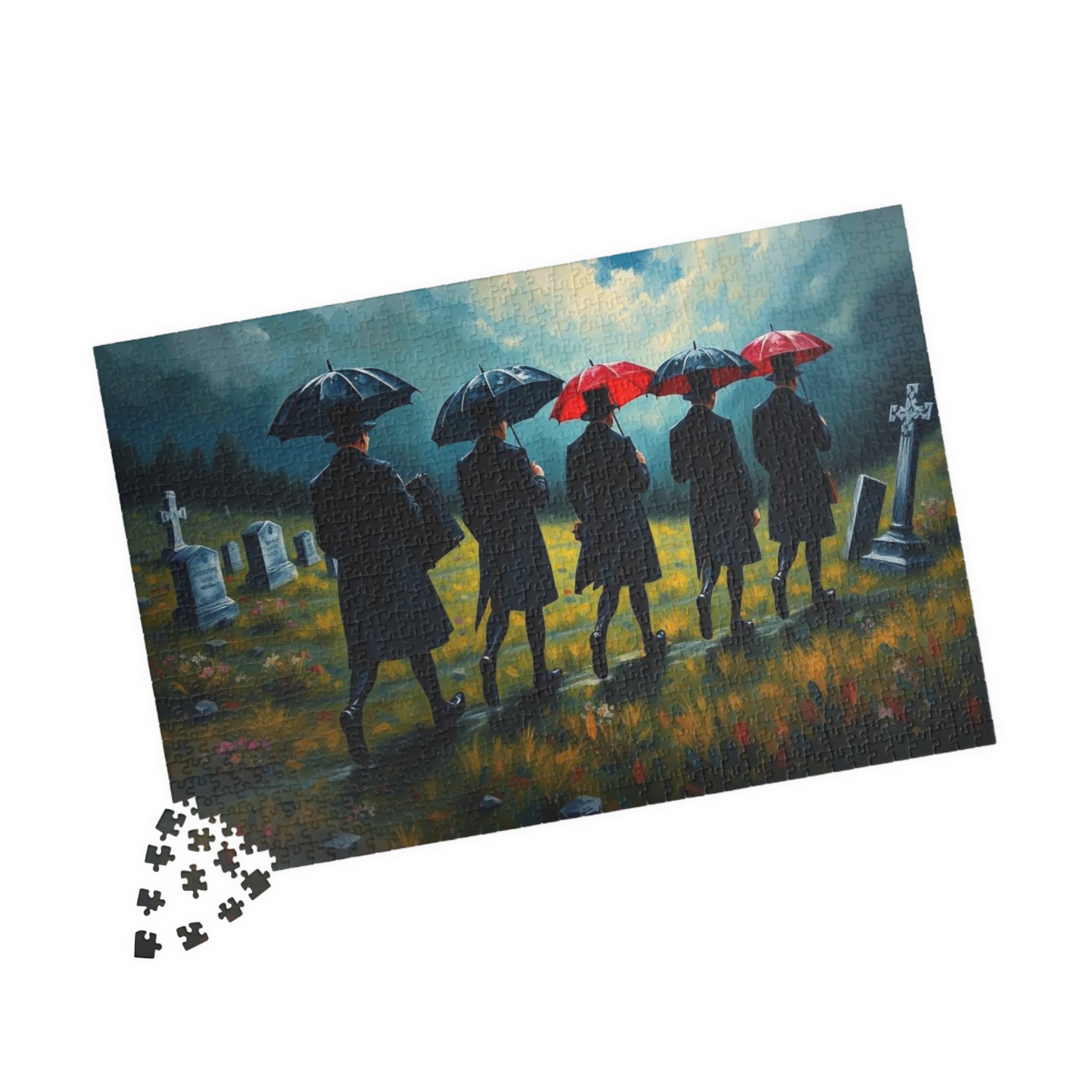Gothic Procession Jigsaw Puzzle, Gothic Puzzle, Dark Art Puzzle, Stormy Cemetery Landscape Puzzle, 1000-Piece Puzzle Gift for Puzzle Lovers