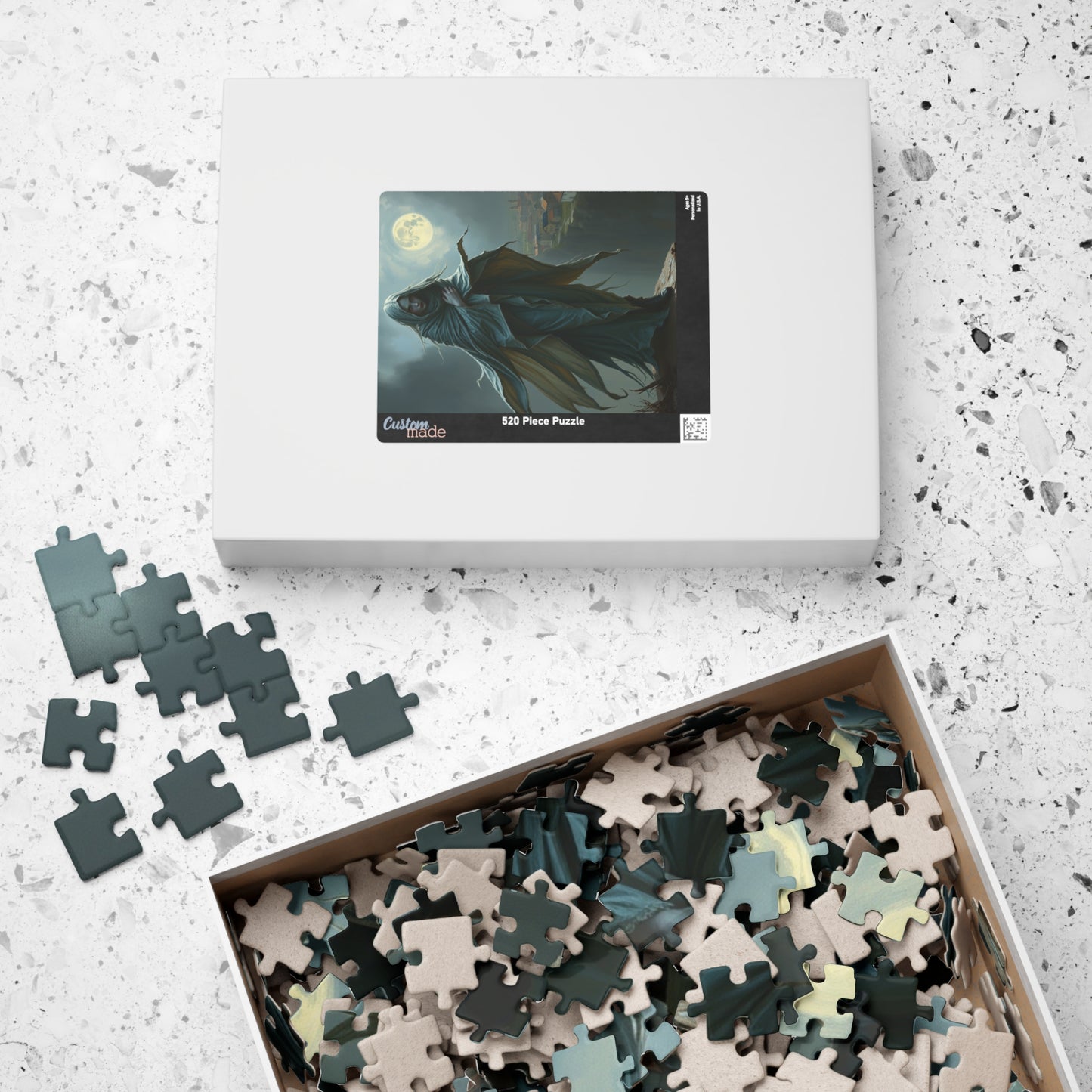 Gothic Puzzle, Banshee Design 110-1014 Piece Jigsaw, Moonlit Village Windswept Cliff Silver Gray Shroud, Unique Gift Idea, Relaxing Activity