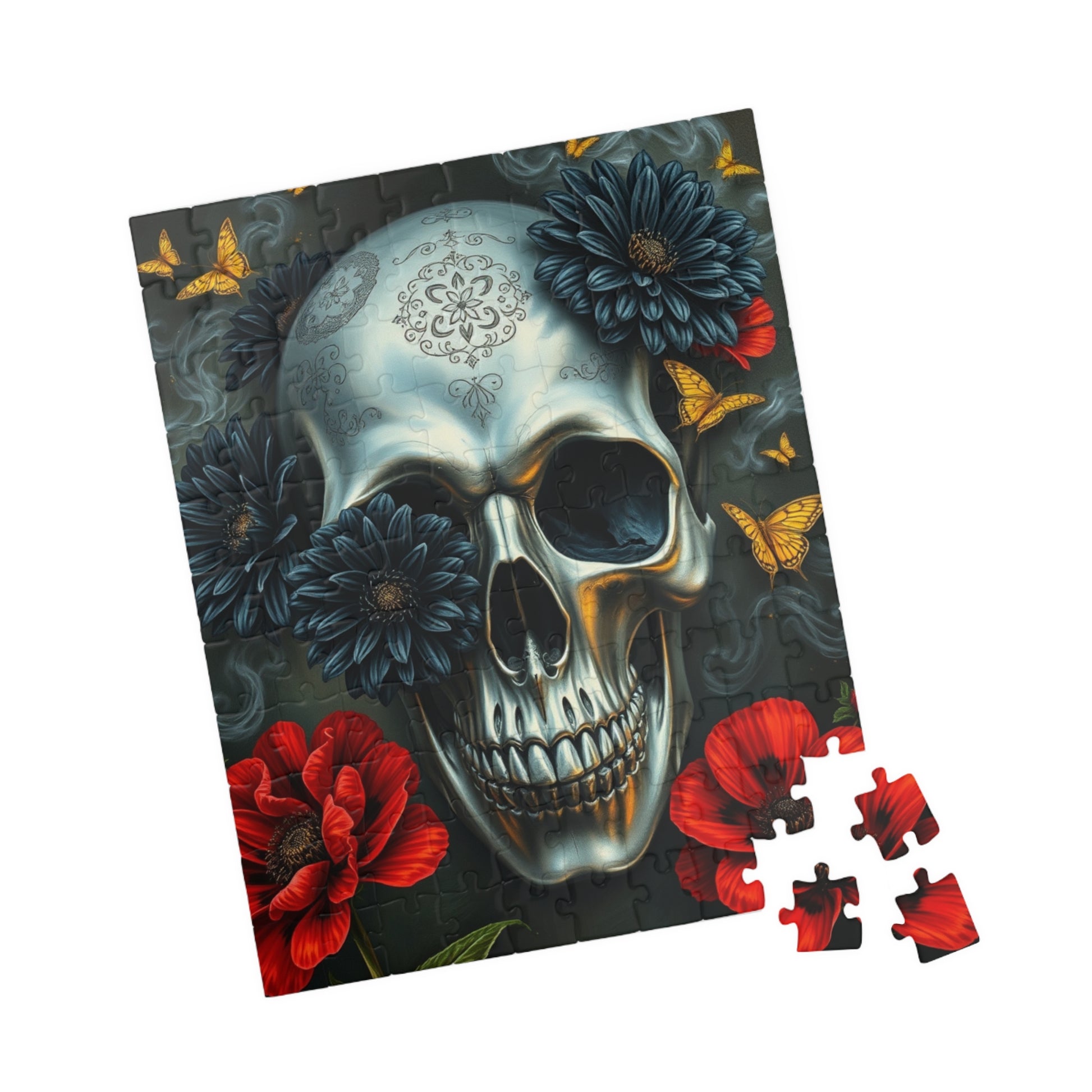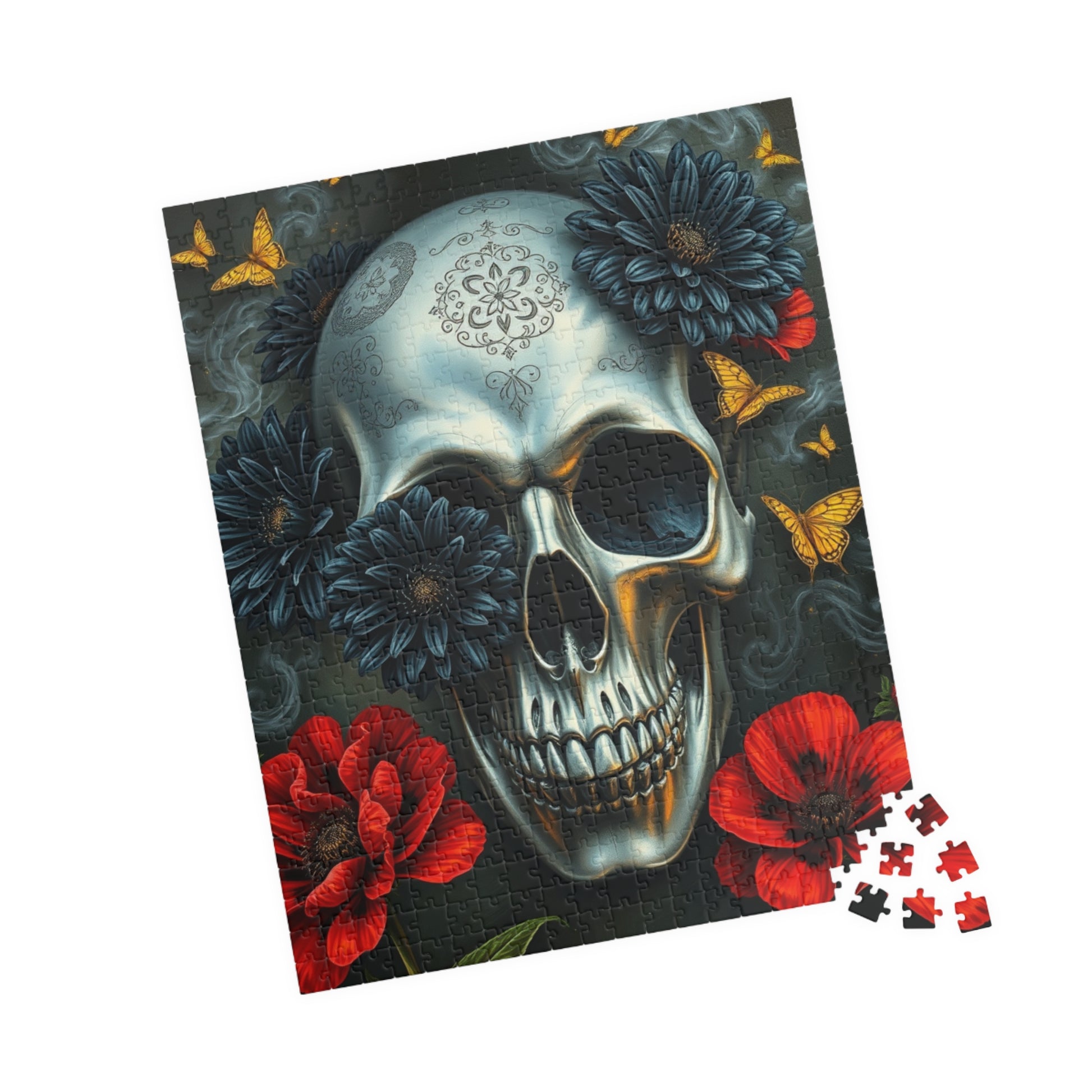 Gothic Skull Floral Puzzle | Artistic Day of the Dead Jigsaw Game for Adults, Gift for Puzzle Lovers Dark Art Enthusiasts, Unique Challenge