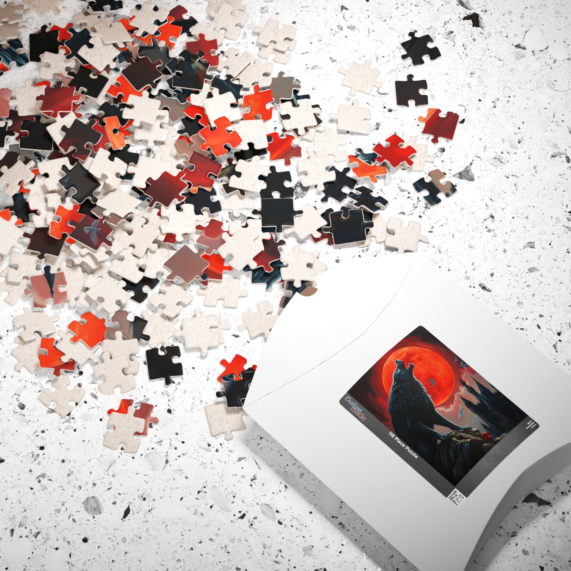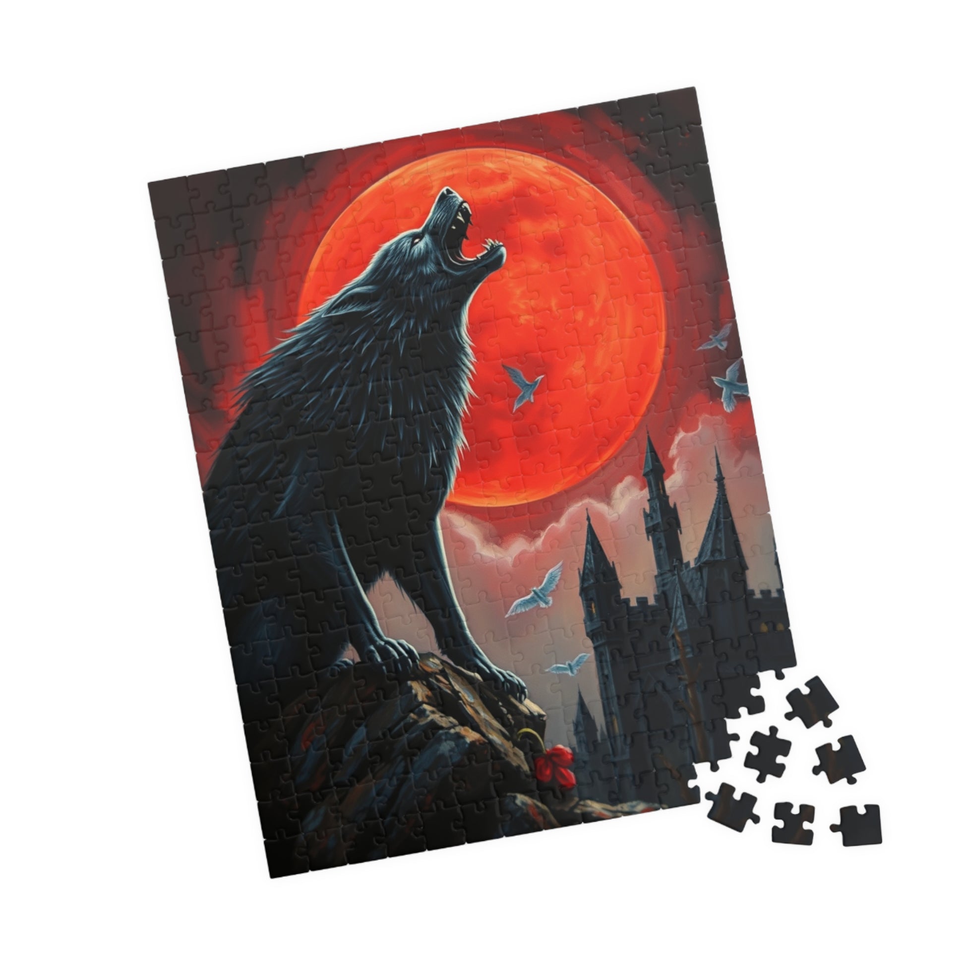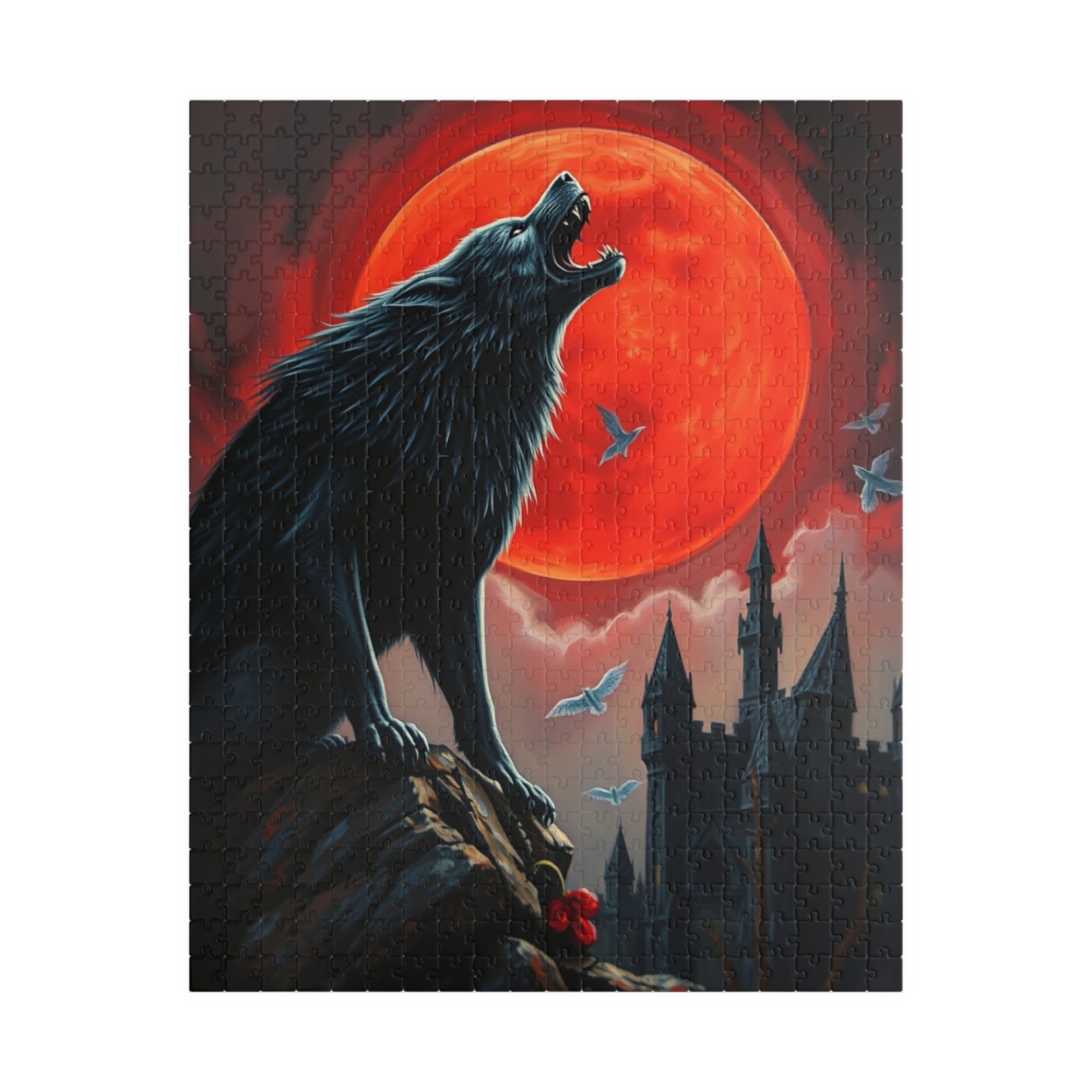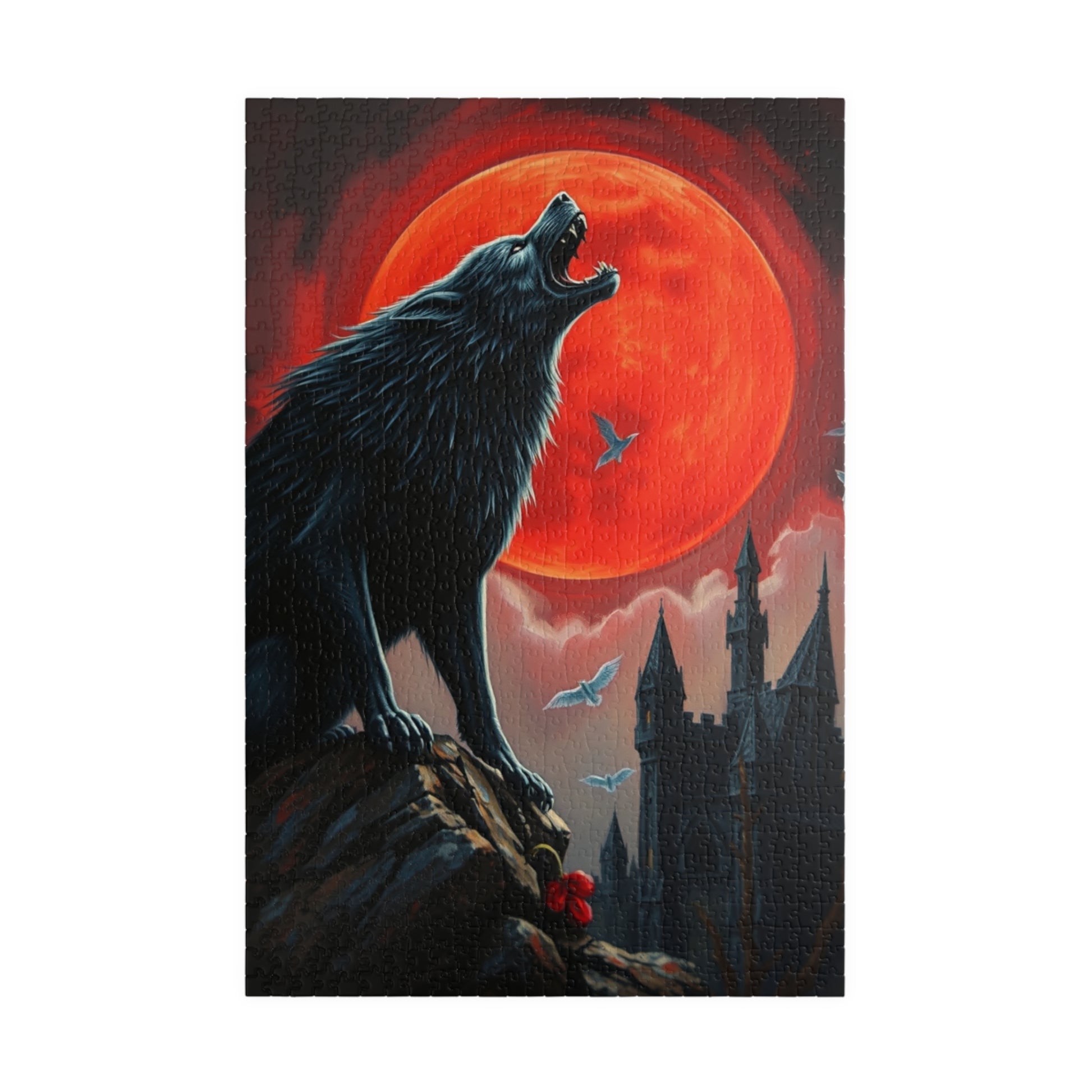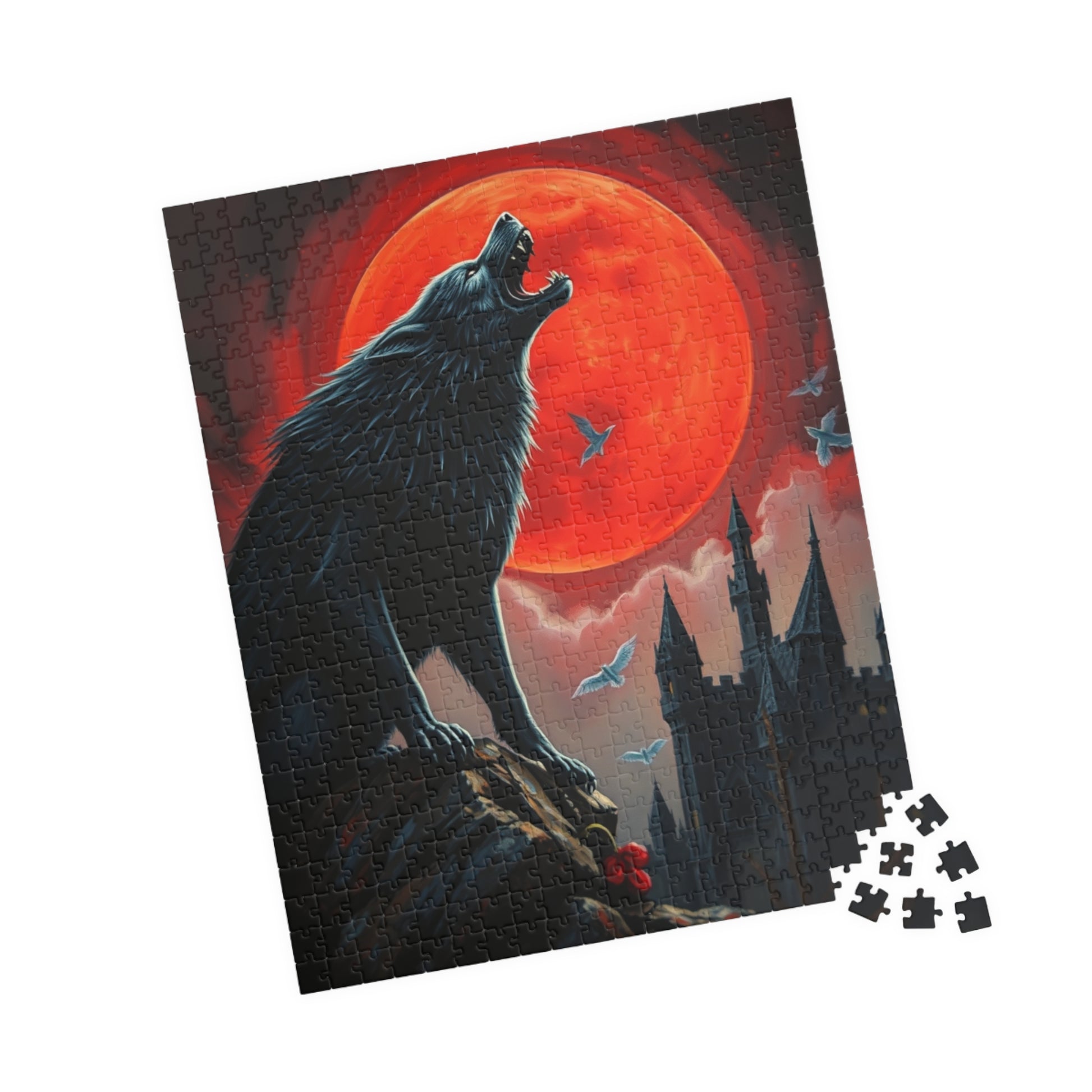 Gothic Wolf Jigsaw Puzzle, Howling at Blood Moon Mysterious Scene, Gift for Wolf Lovers, Spooky Night Entertainment, Solo Fun, Brain Teaser