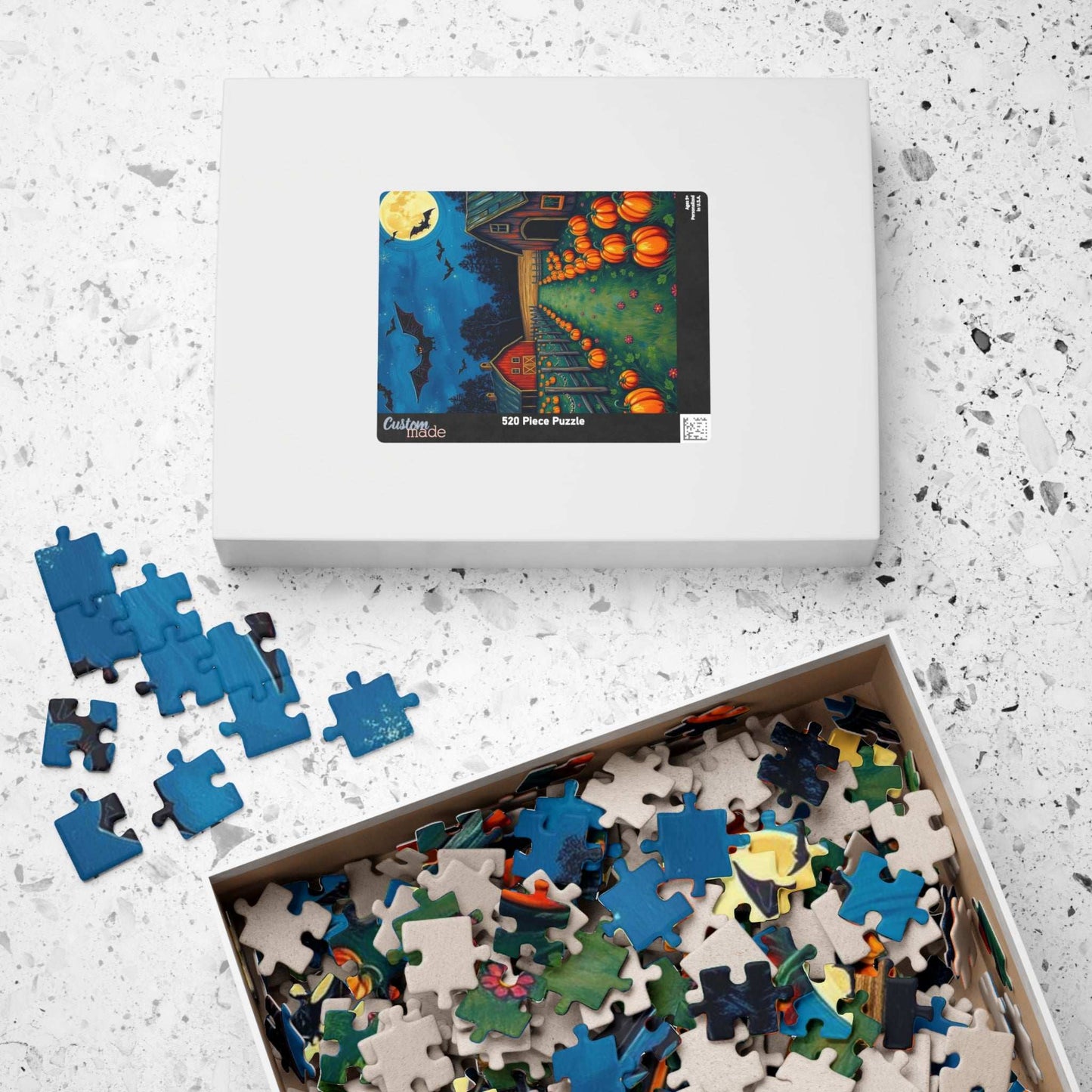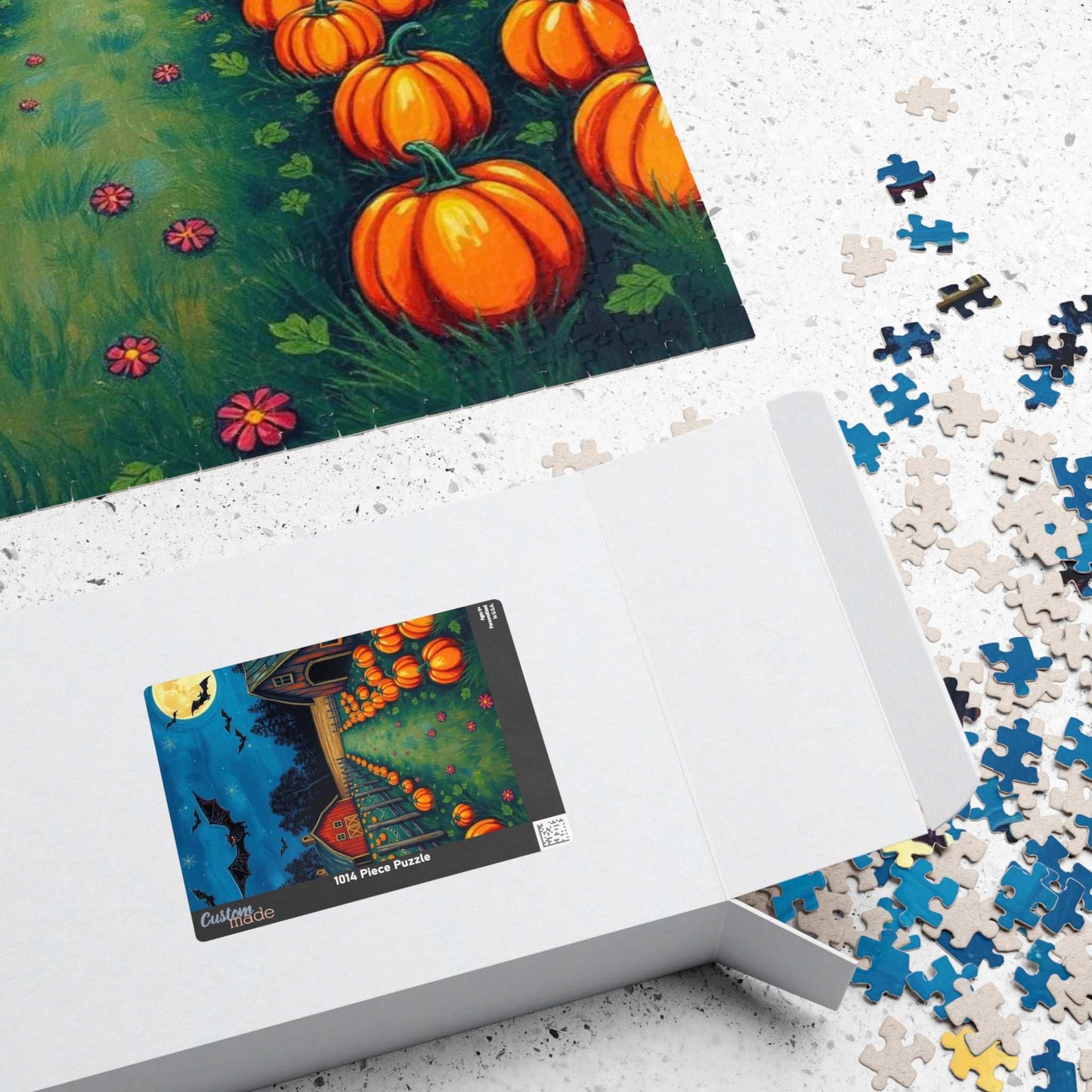 Haunted Pumpkin Patch Festive Halloween Jigsaw Puzzle, Ideal for Family Fun, Autumn Nights, Gift for Puzzle Lover, Cozy Home Activity