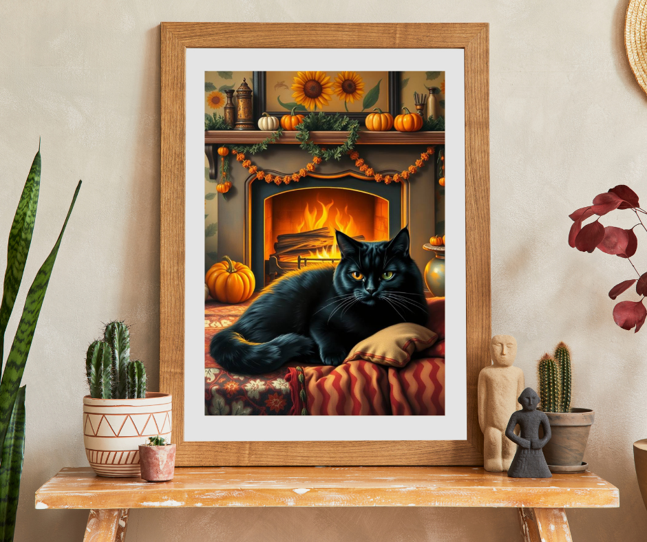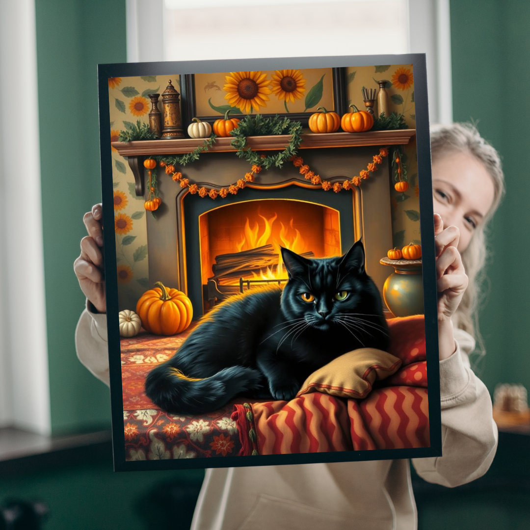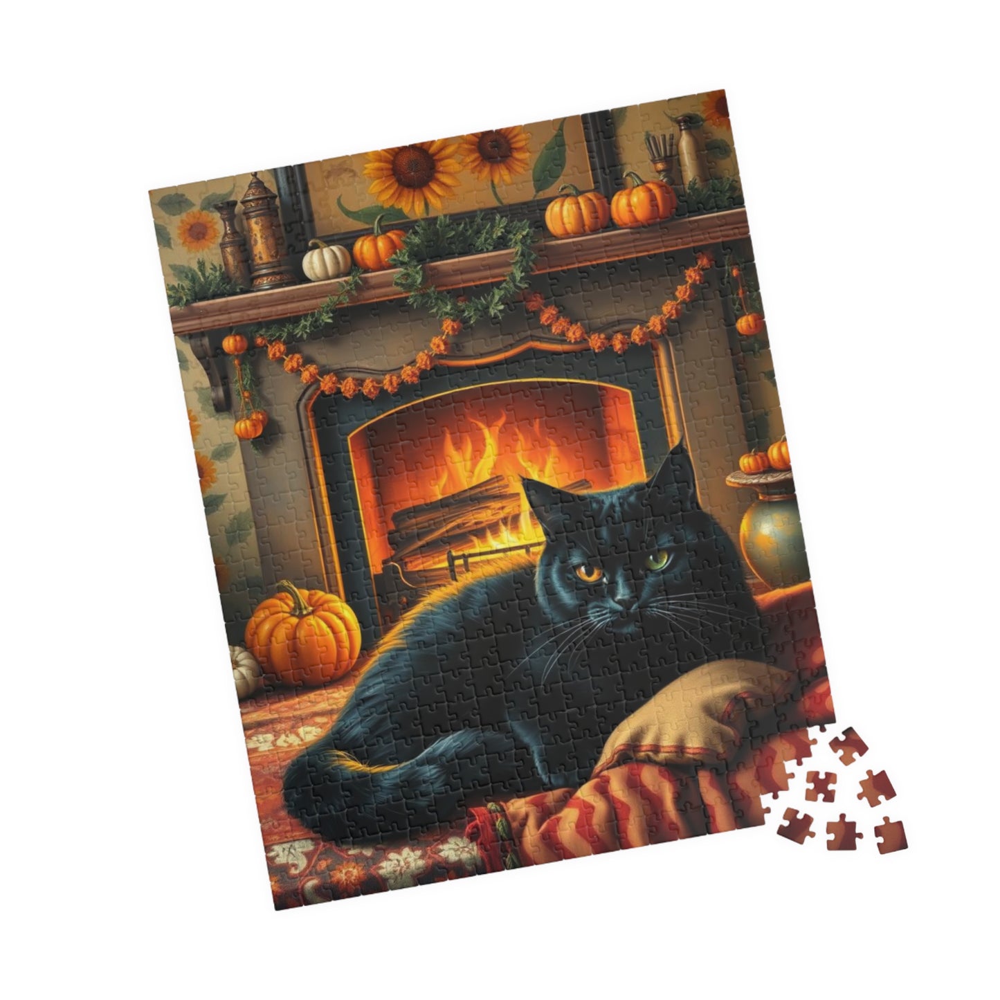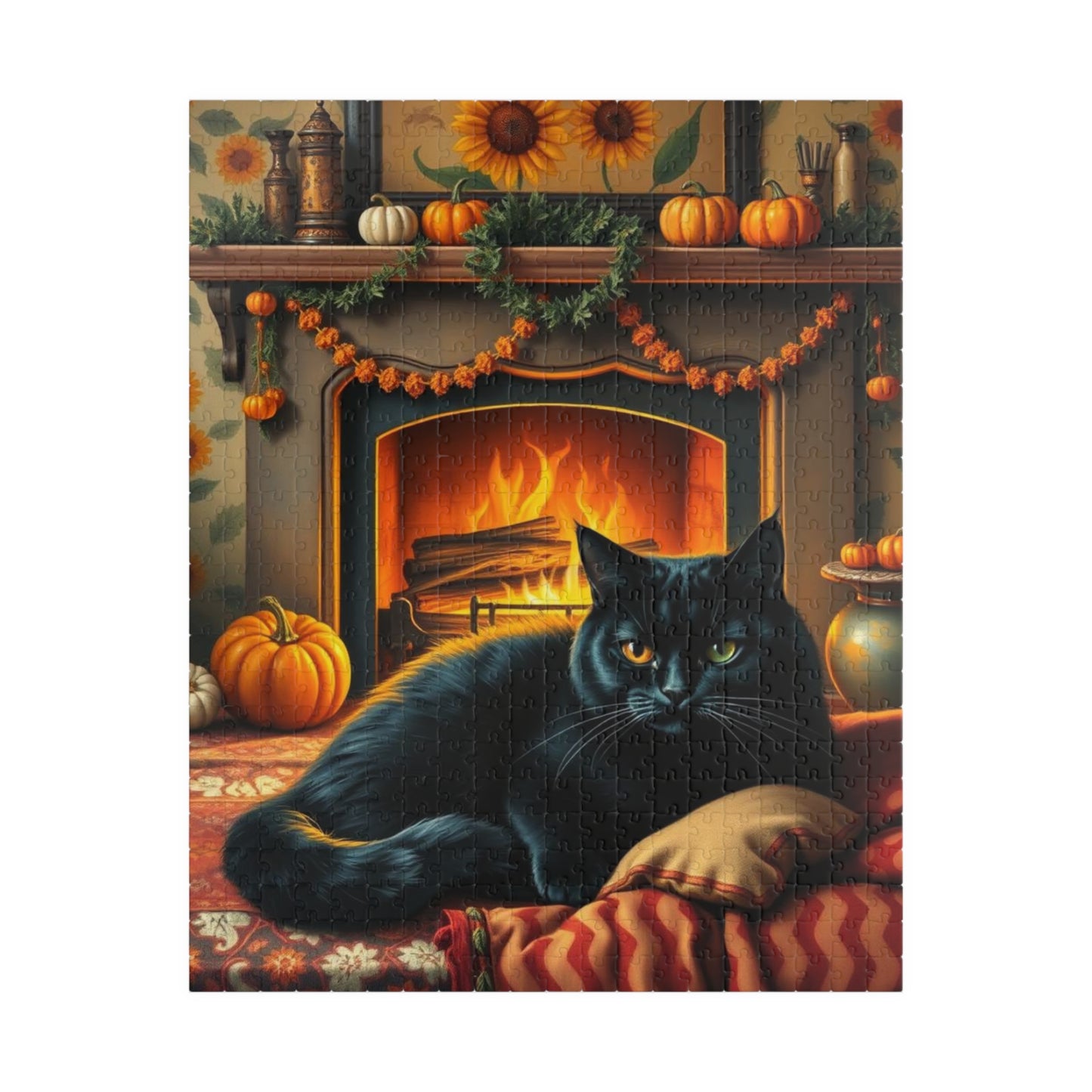 Hearthside Patch Paw Jigsaw Puzzle, Cozy Autumn Adult Folk Art Game with Black Cat and Pumpkins, Gift for Cat Lover, Fall Decor, Family Fun