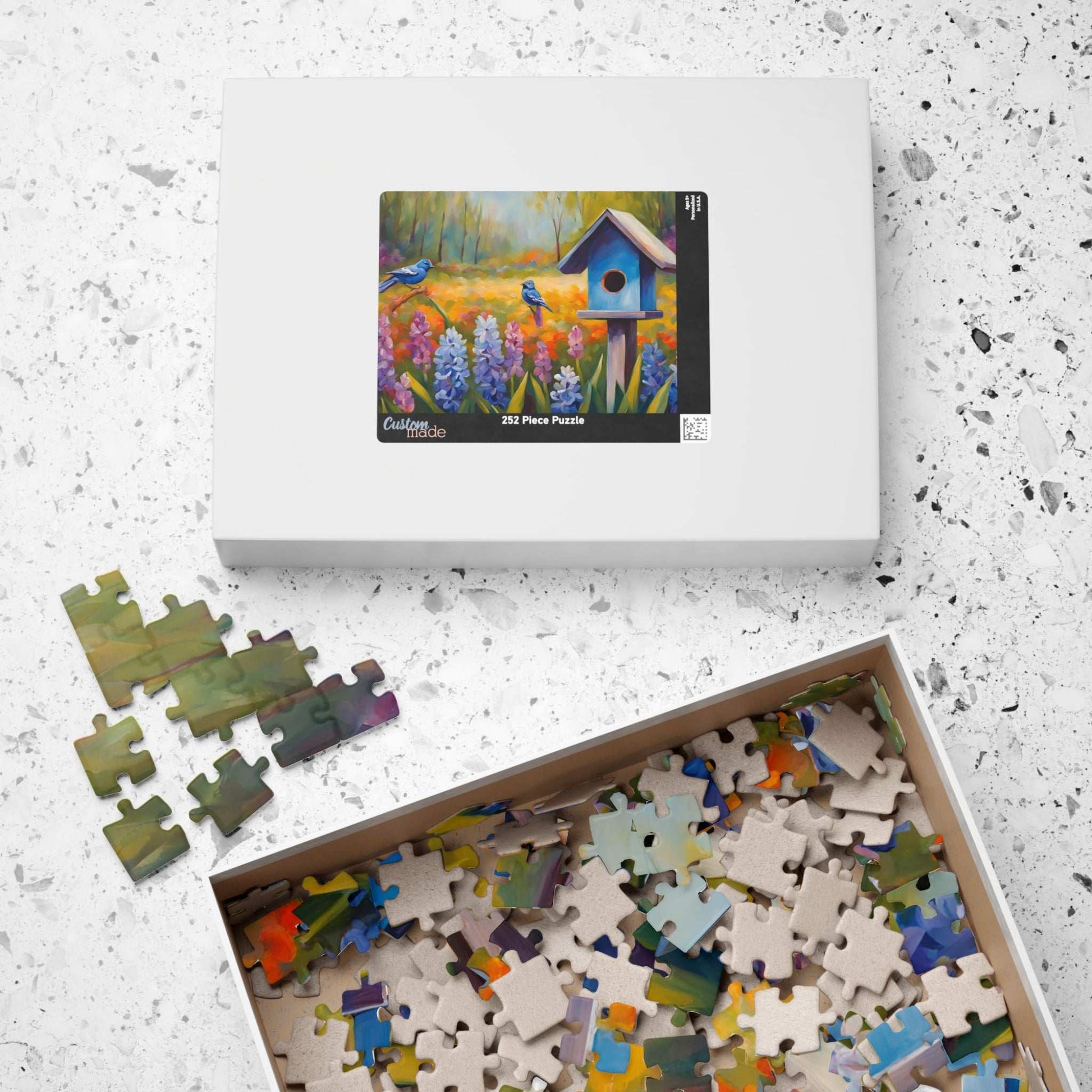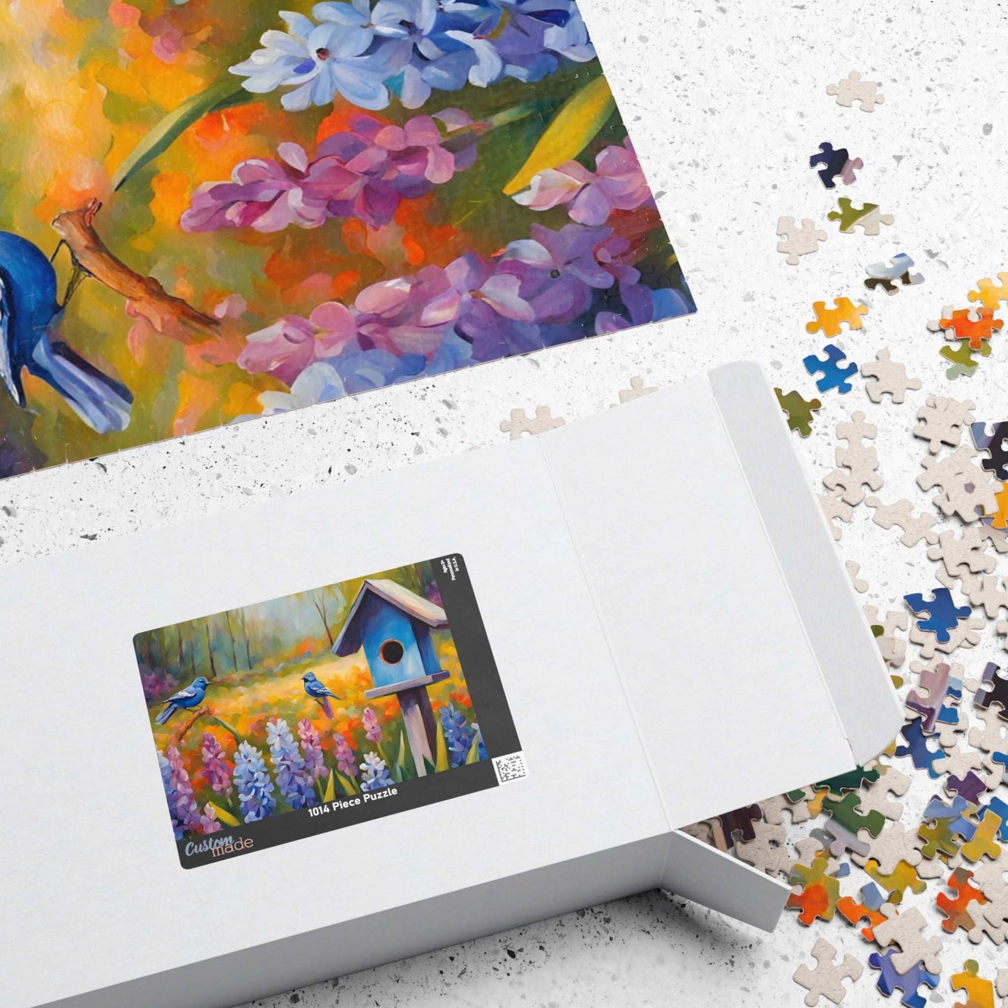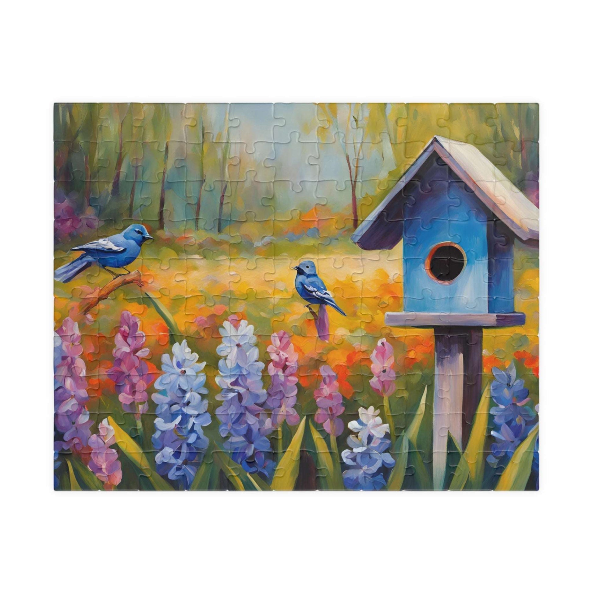 Immerse yourself in a serene garden scene with this charming wooden birdhouse puzzle surrounded by blooming hyacinths. Perfect for bird lovers and nature enthusiasts, this puzzle brings a peaceful and calming vibe to your leisure time. Ideal for cozy nights in, family gatherings, and as a thoughtful gift for nature-loving friends and family. Celebrate Earth Day, Mother's Day, or any occasion with this beautiful and challenging puzzle.