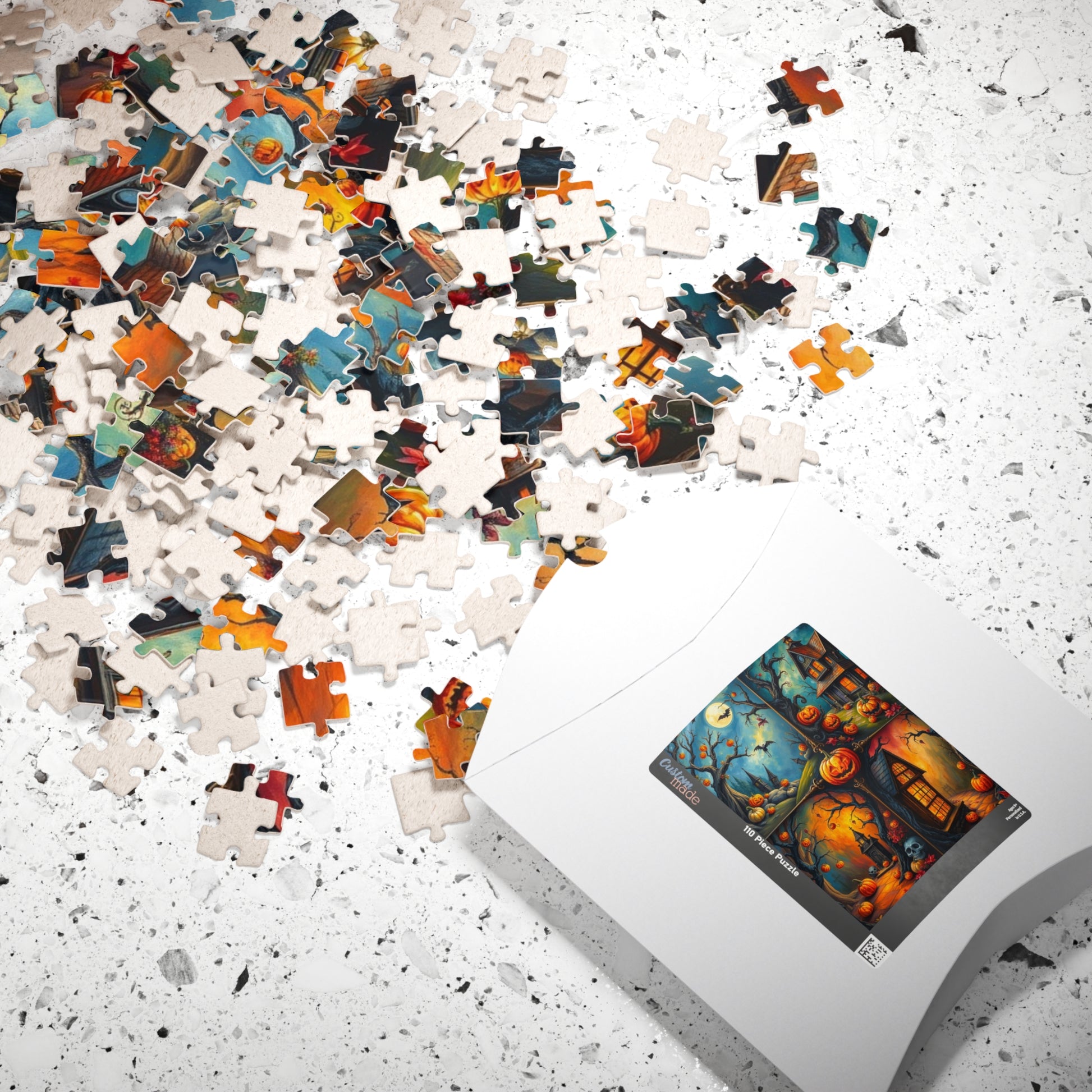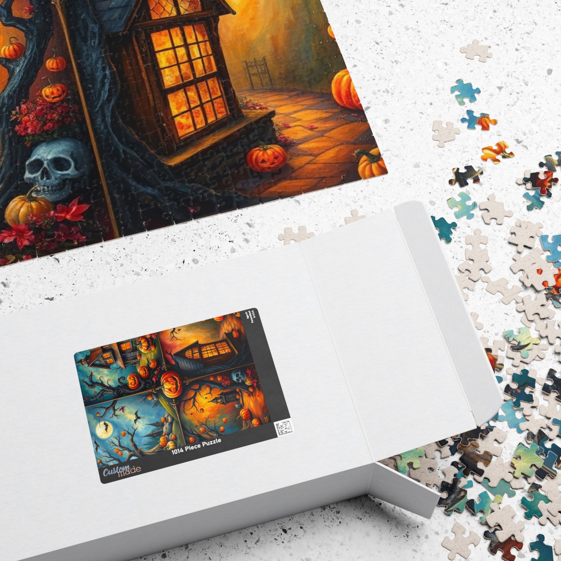 A Halloween-themed puzzle with a four-quadrant image depicting intricate scenes, perfect for those who love spooky and detailed designs. This puzzle is a great way to get into the Halloween spirit and can be a fun activity for both kids and adults during the holiday season.