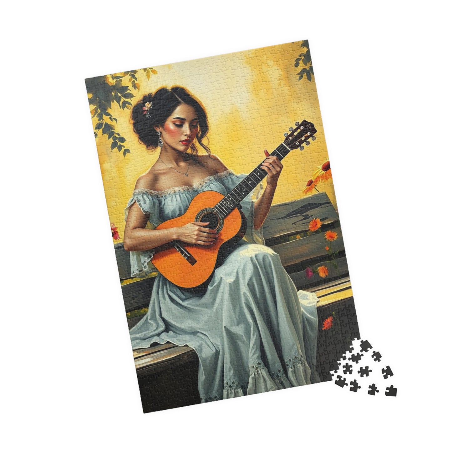 Latina Musician Jigsaw Puzzle, Woman Playing Guitar, Folkloric Dress