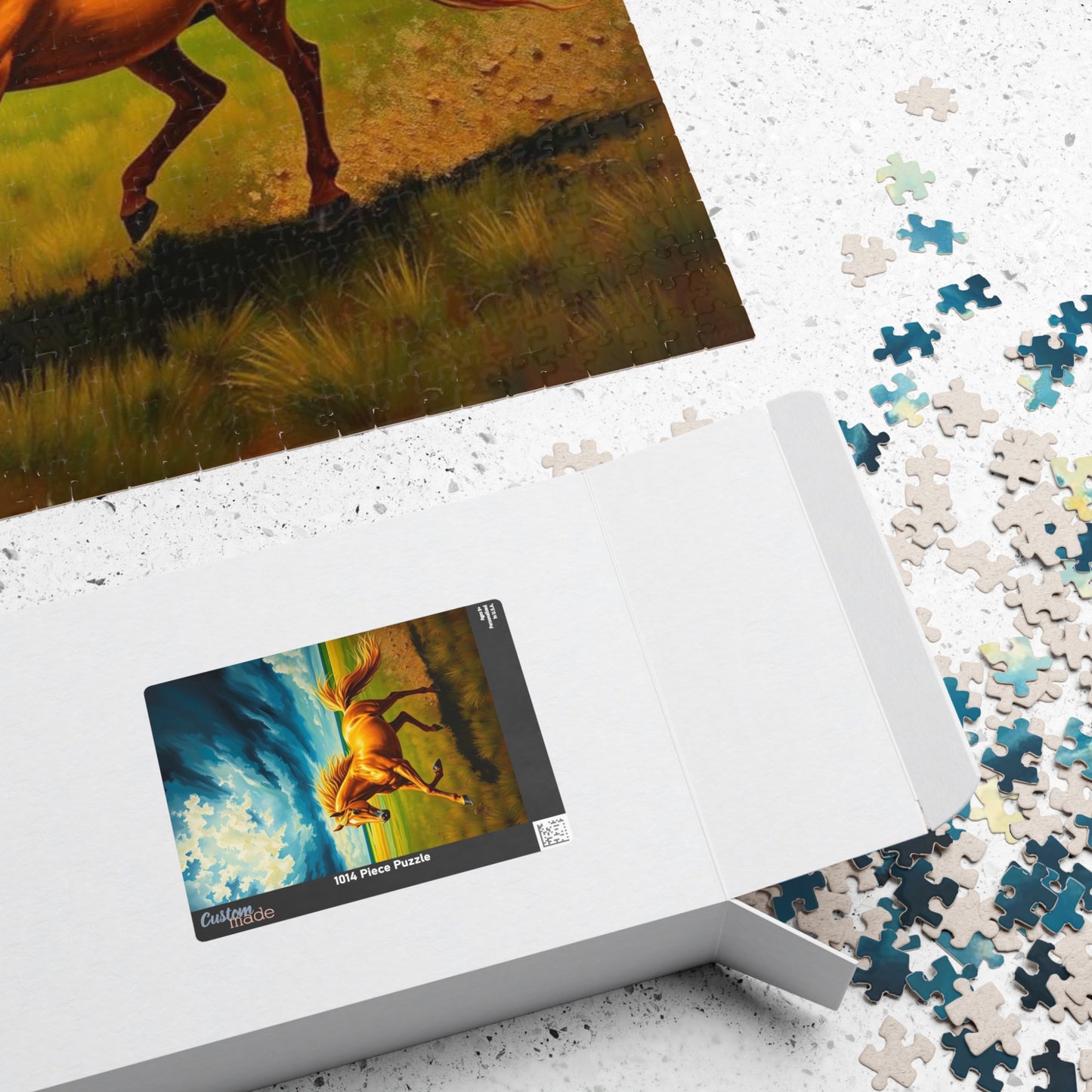Majestic Running Horse Jigsaw Puzzle, Equestrian Gift for Animal Lover, Family Game Night, Solo Fun Mindfulness Activity, Home Entertainment