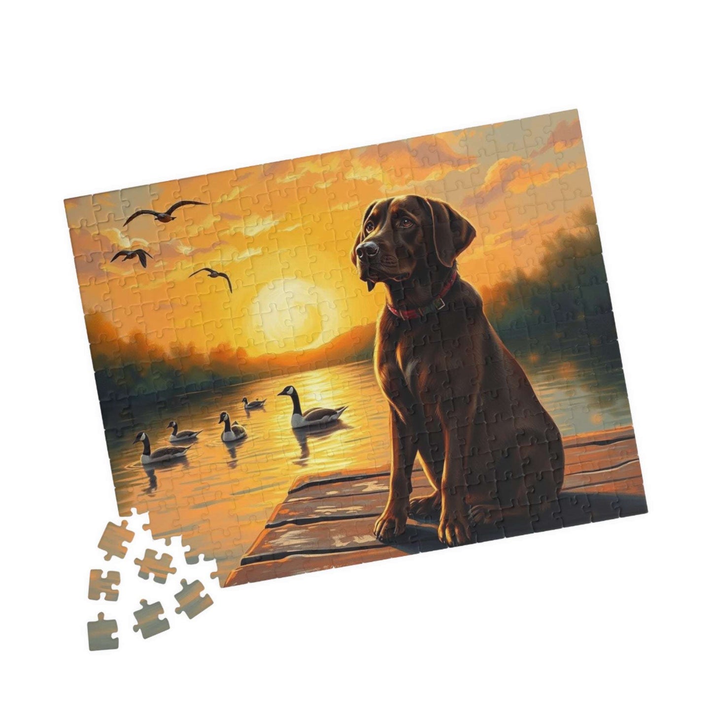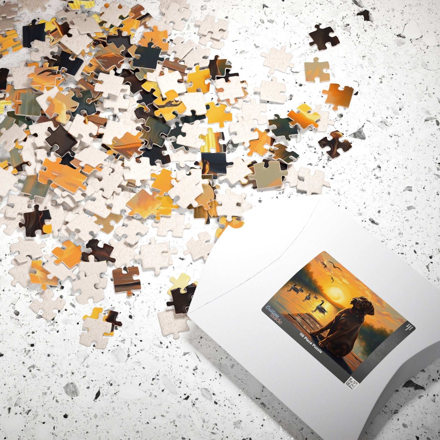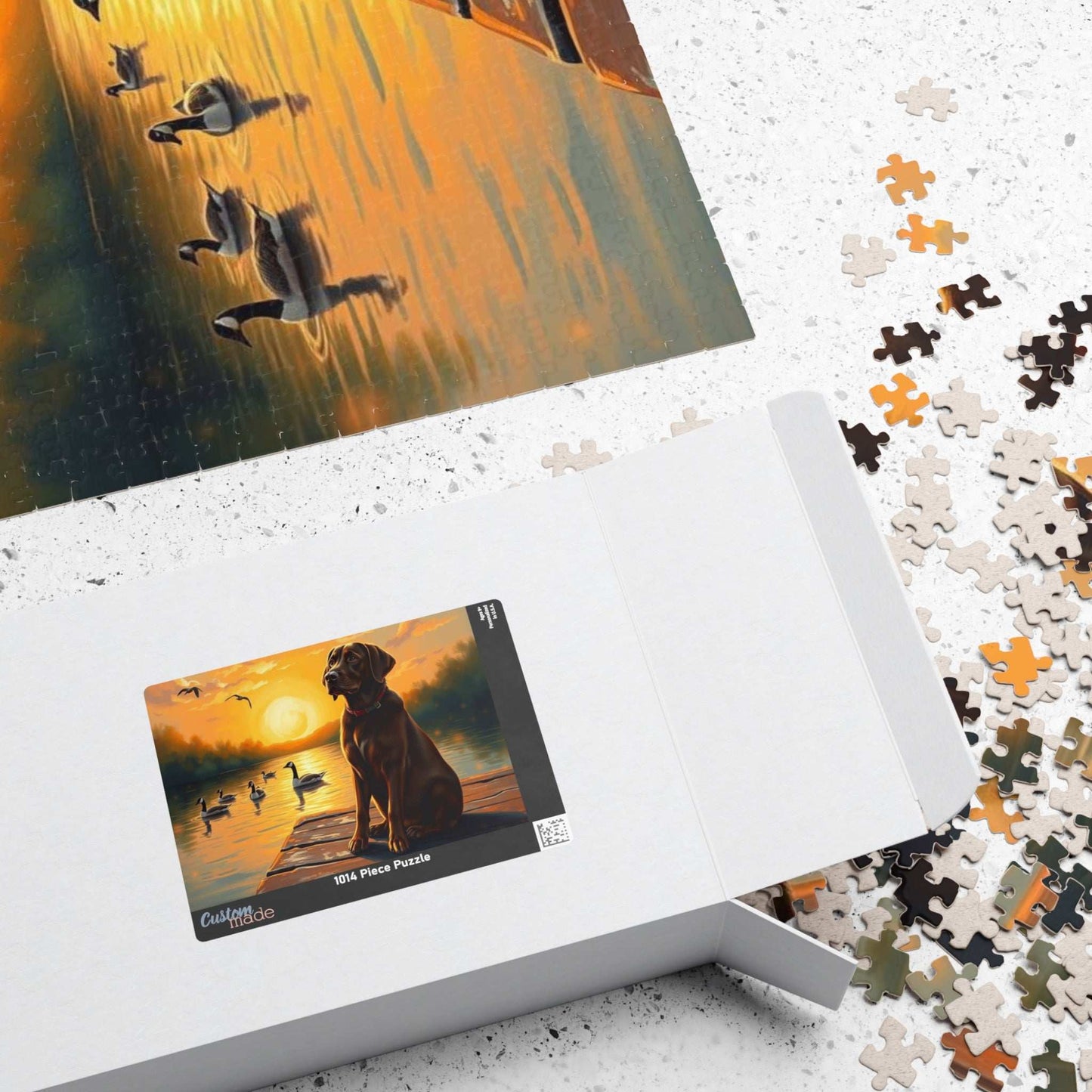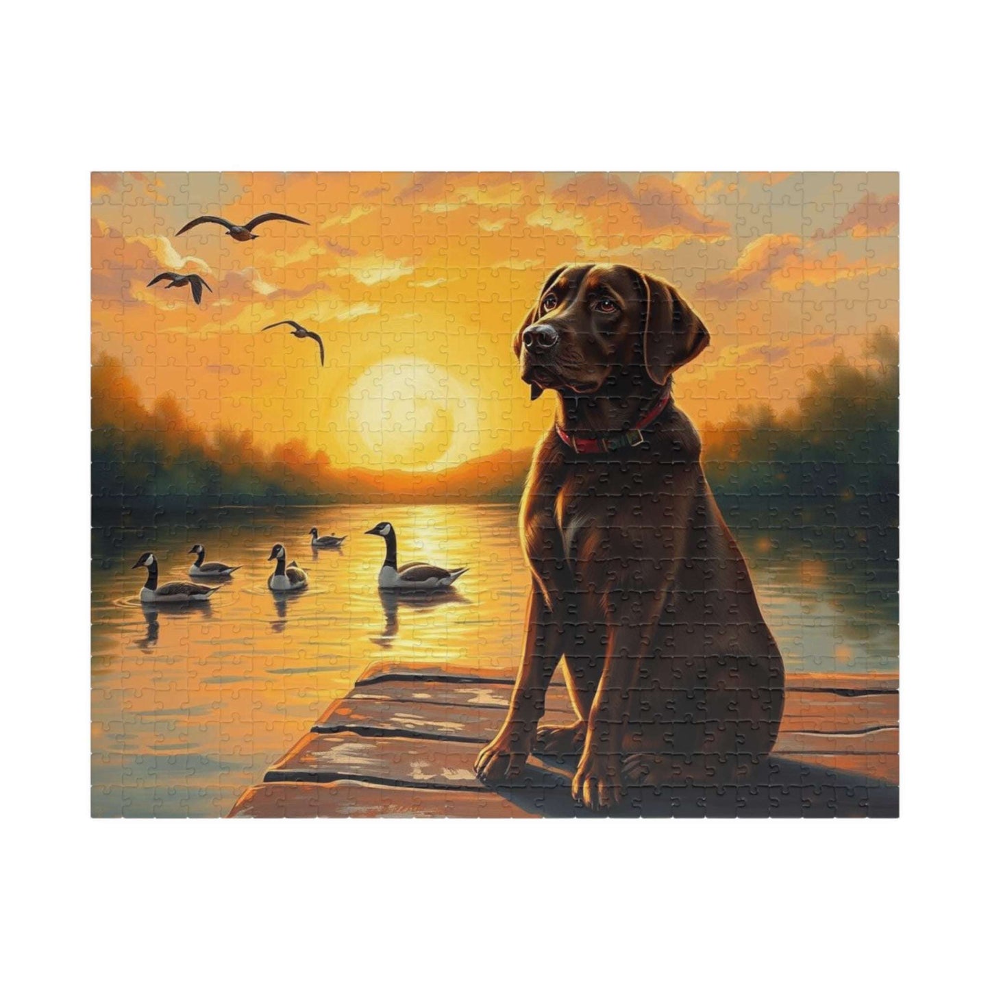 Majestic Sunset Dog Puzzle, Labrador Retriever Jigsaw Game for Family Game Night, Dog Lover Gift, Adult Puzzle for Relaxation, Nature Scene