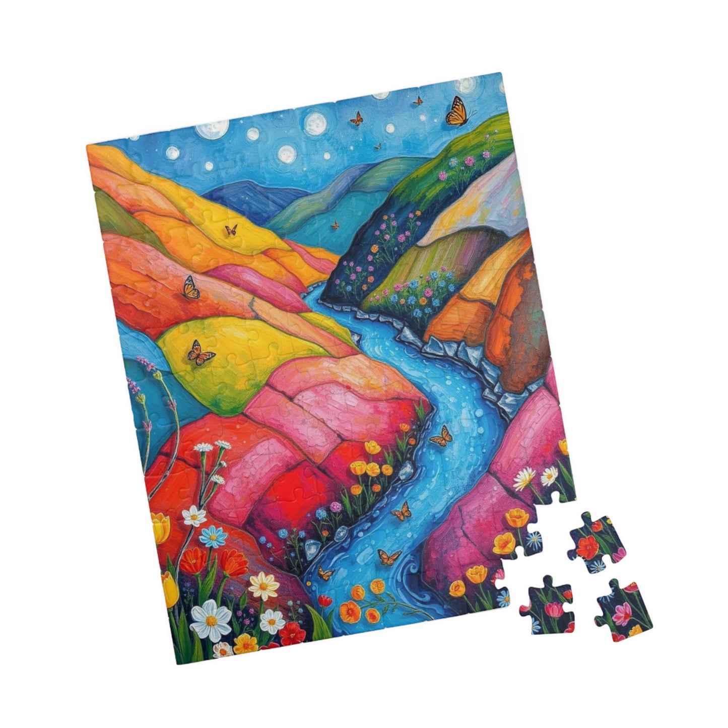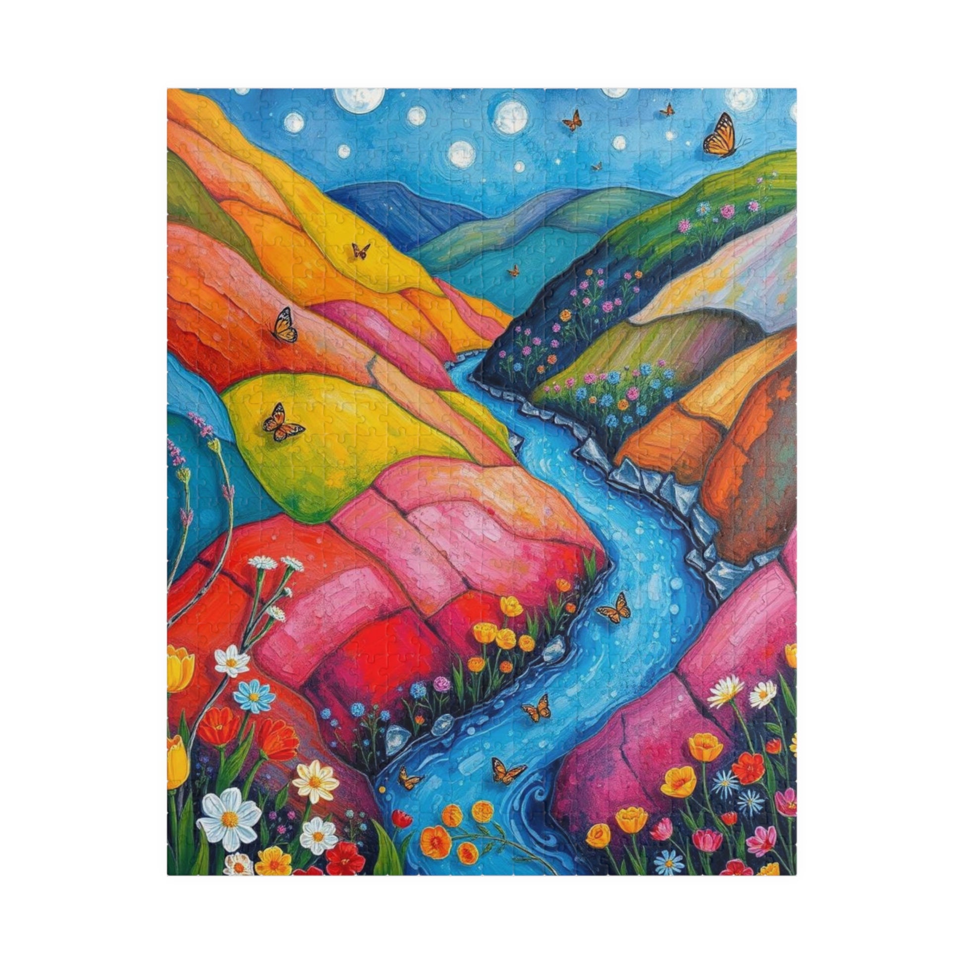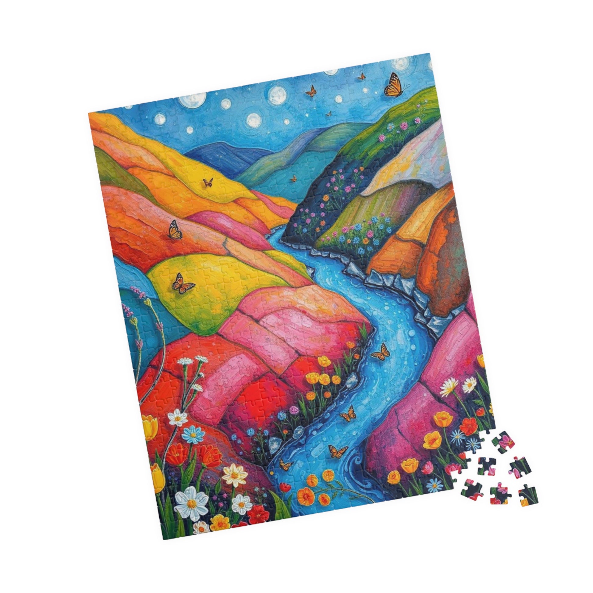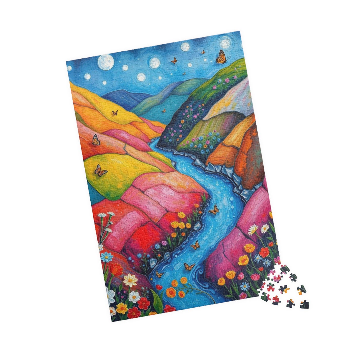 Meadow Stream Melody - River Through Candy Hill Jigsaw Puzzle Collection, Beautiful Nature Puzzle, Colorful Landscape Art, Puzzle Lover Gift, Family Fun, 110/252/520/1014