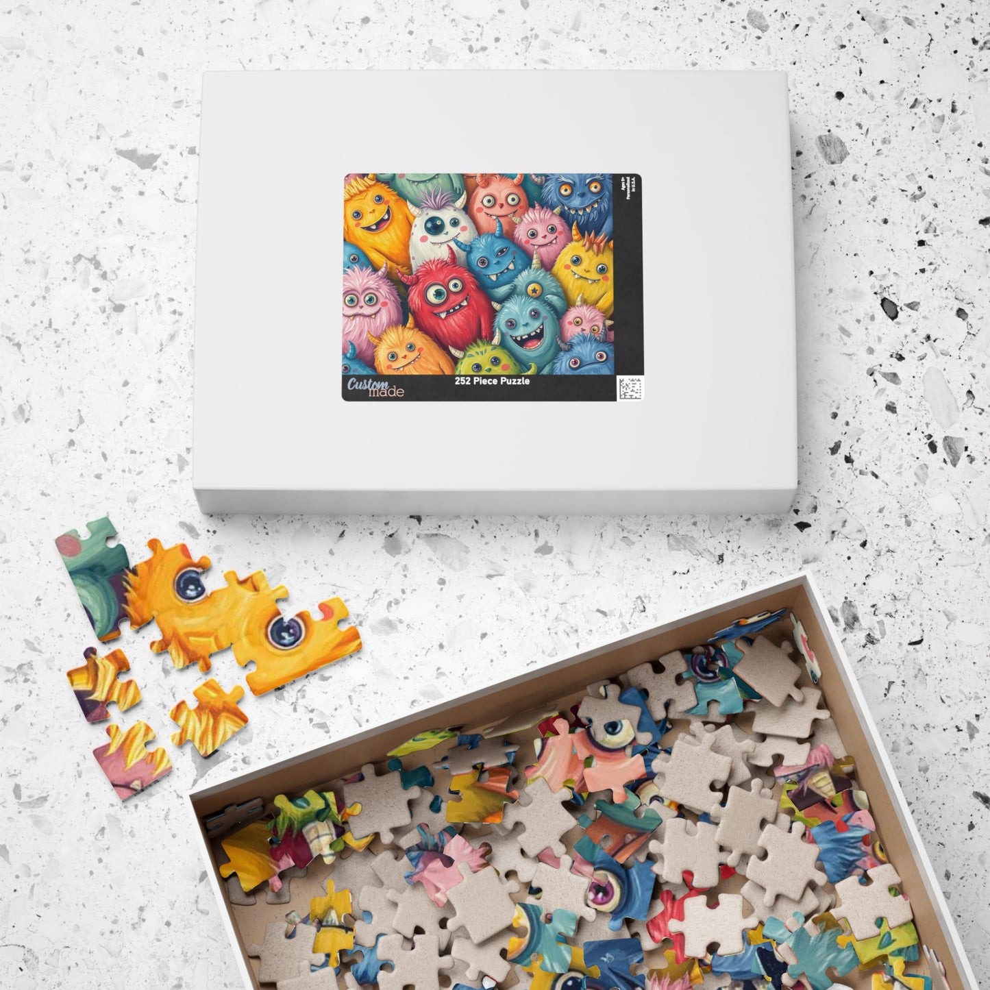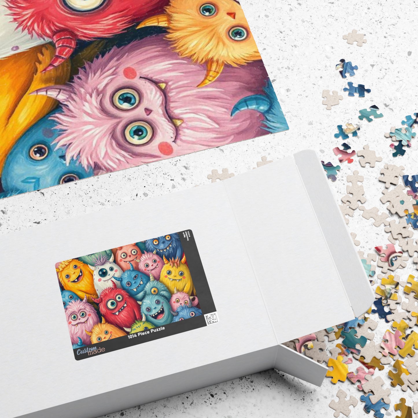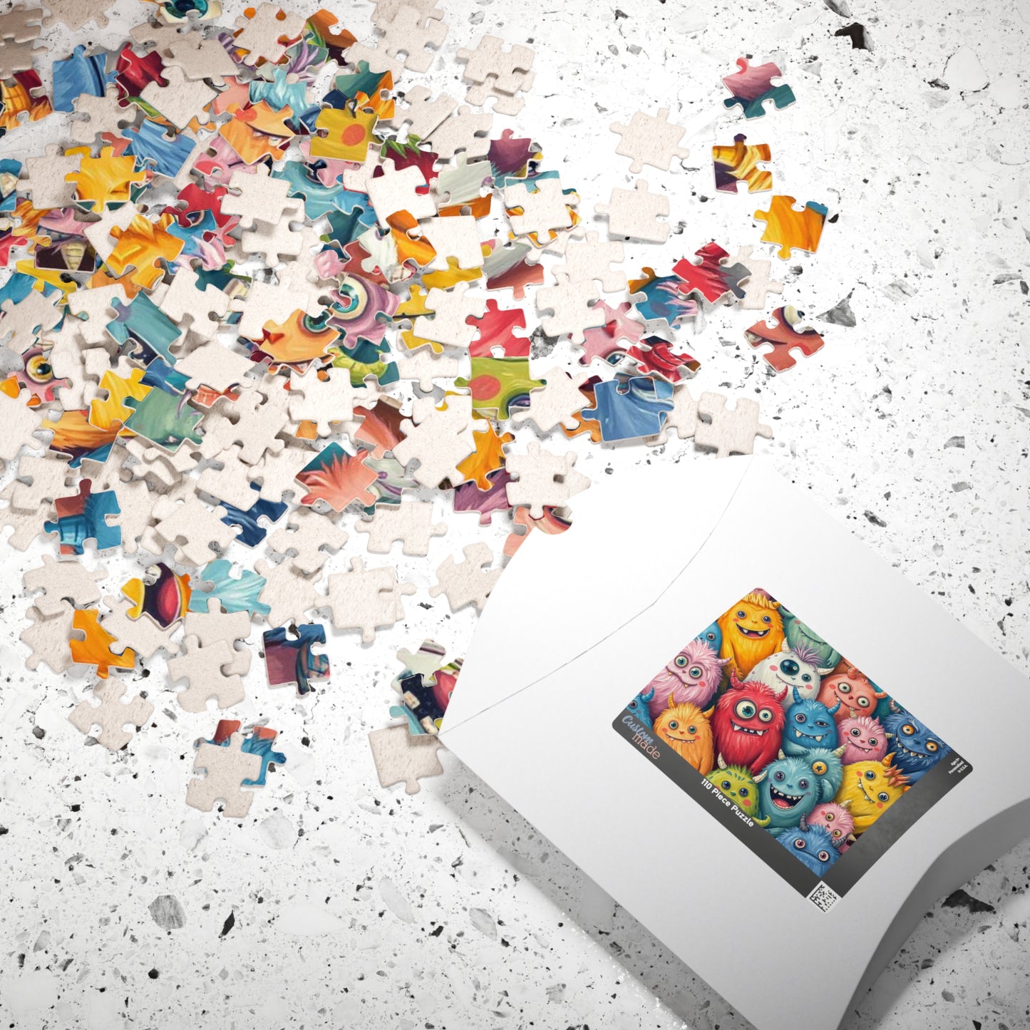 A vibrant and colorful monster design puzzle perfect for adults who love Halloween. This puzzle comes in 110, 252, 520, or 1014 pieces, providing a fun and challenging experience. Ideal for Halloween enthusiasts and puzzle lovers.
