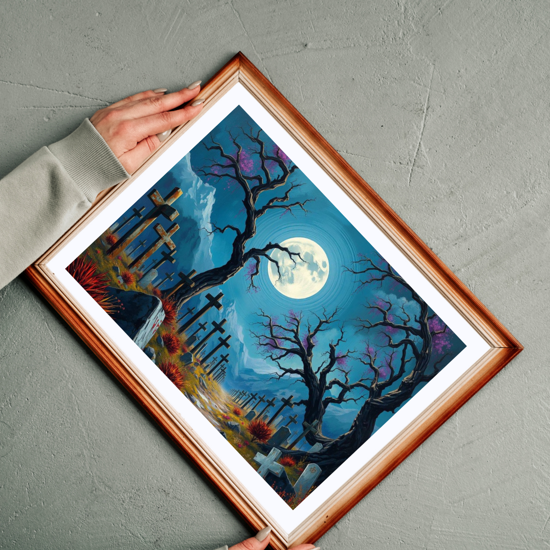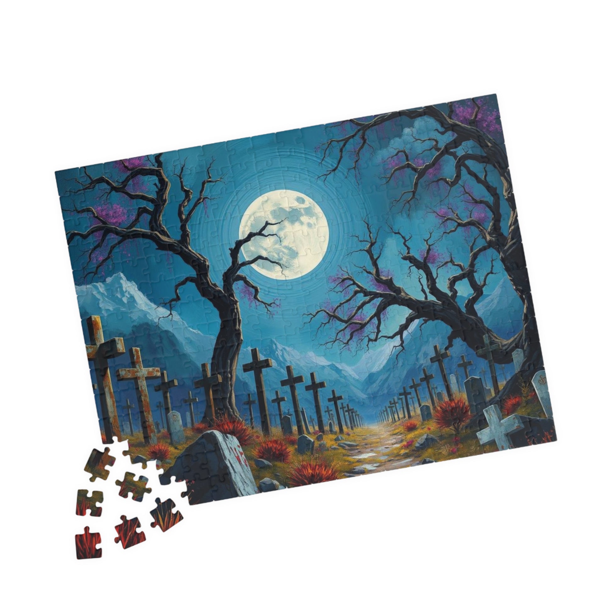 Moonlit Crosses Jigsaw Puzzle - Abandoned Cemetery, Gothic Art Print, Gothic Landscape, Spooky Graveyard Puzzle Lover Dark Fantasy Gift Idea