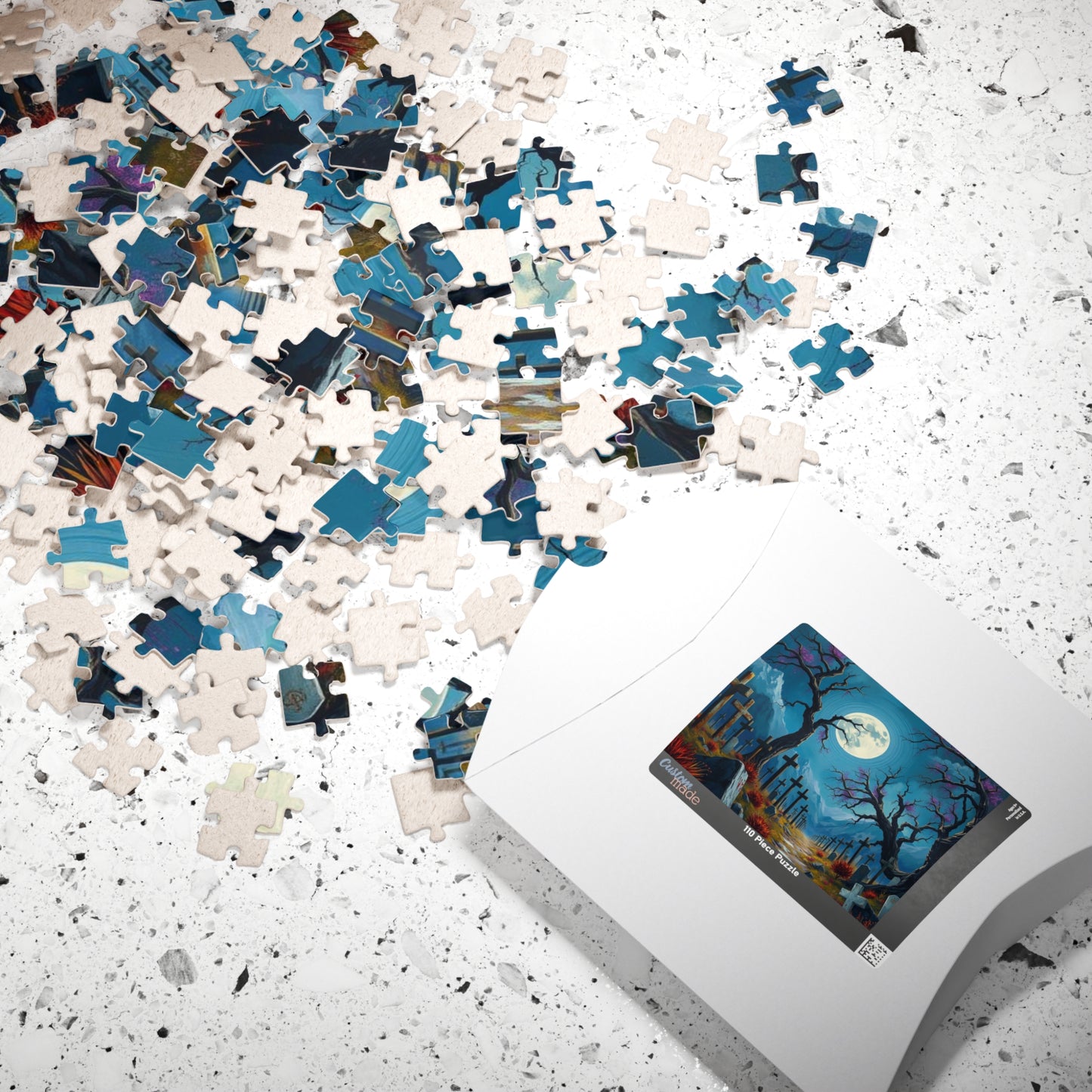 Immerse yourself in the eerie and mysterious atmosphere of an abandoned cemetery under a silver full moon with the Moonlit Crosses puzzle. Perfect for fans of Gothic aesthetics and dark themes, this puzzle is ideal for those who enjoy challenging themselves with intricate designs and vibrant colors. Great for Halloween, goth enthusiasts, and puzzle lovers.
