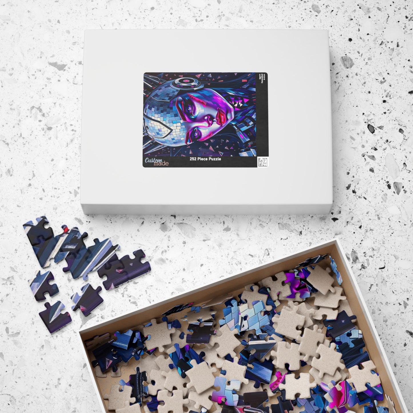 Mosaic Portrait Cybernetic Woman Puzzle, Cyberpunk Female Futuristic Art Jigsaw Game, Puzzle Lover Gift, Brain Teaser, Solo or Family Fun