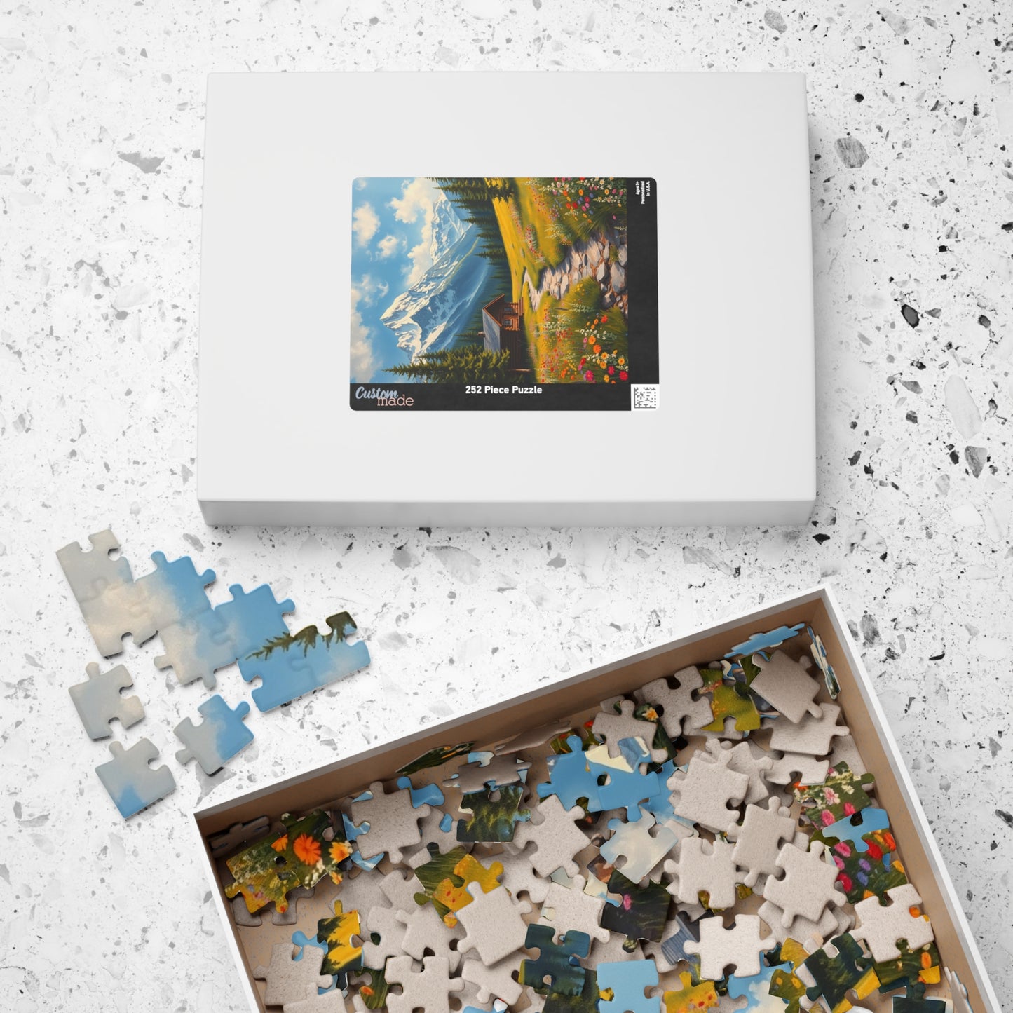 Mountain Cottage Illustration Puzzle, Nature Scene Jigsaw, 110-1014 Pieces, Gift for Nature Lovers, Family Fun, Relaxation Activity