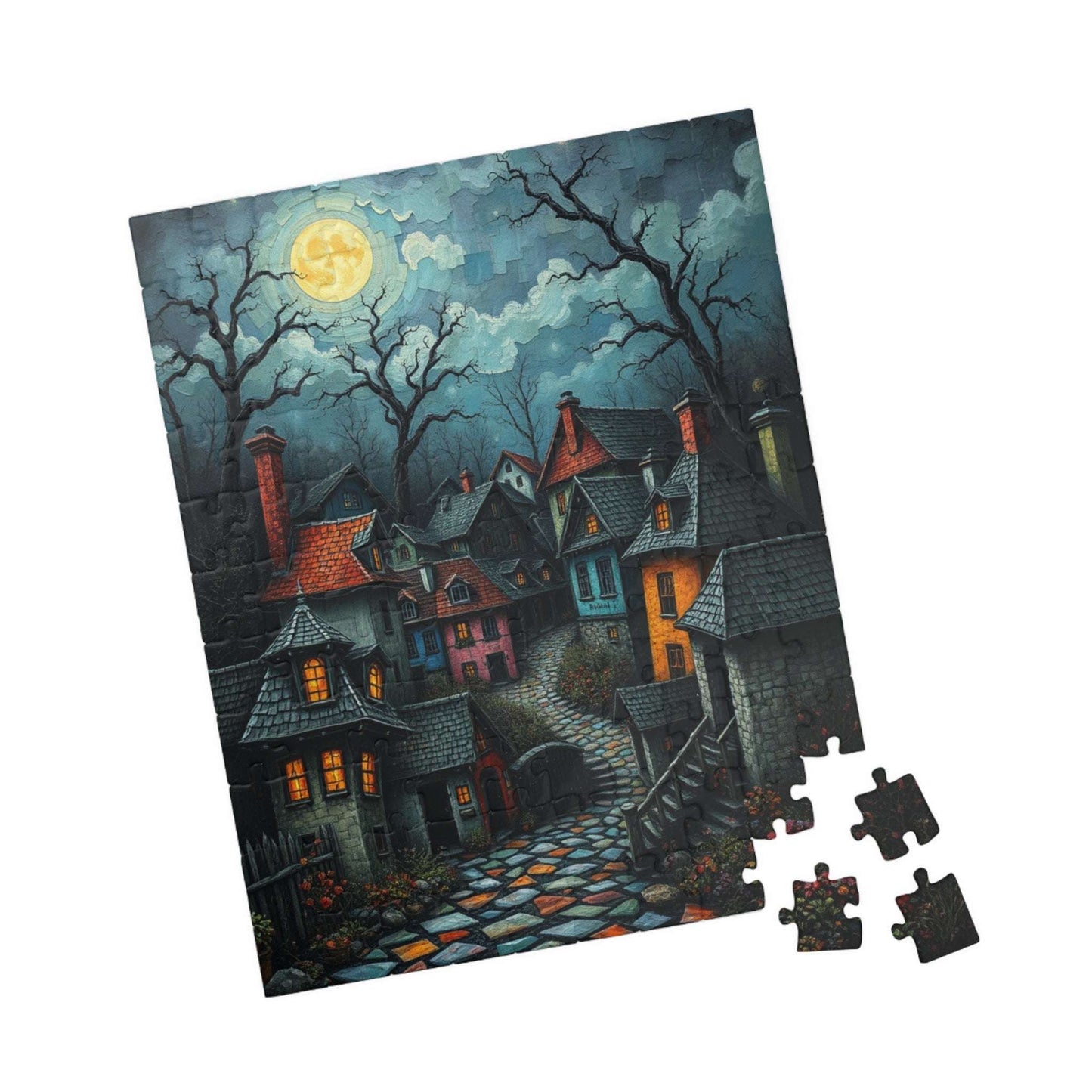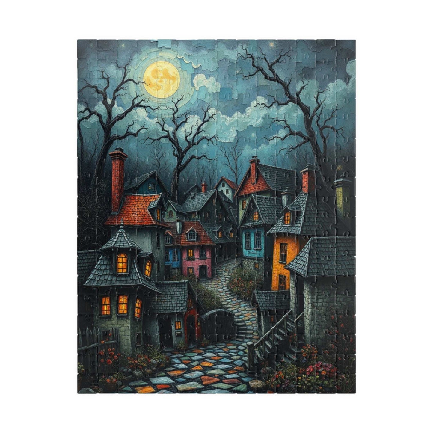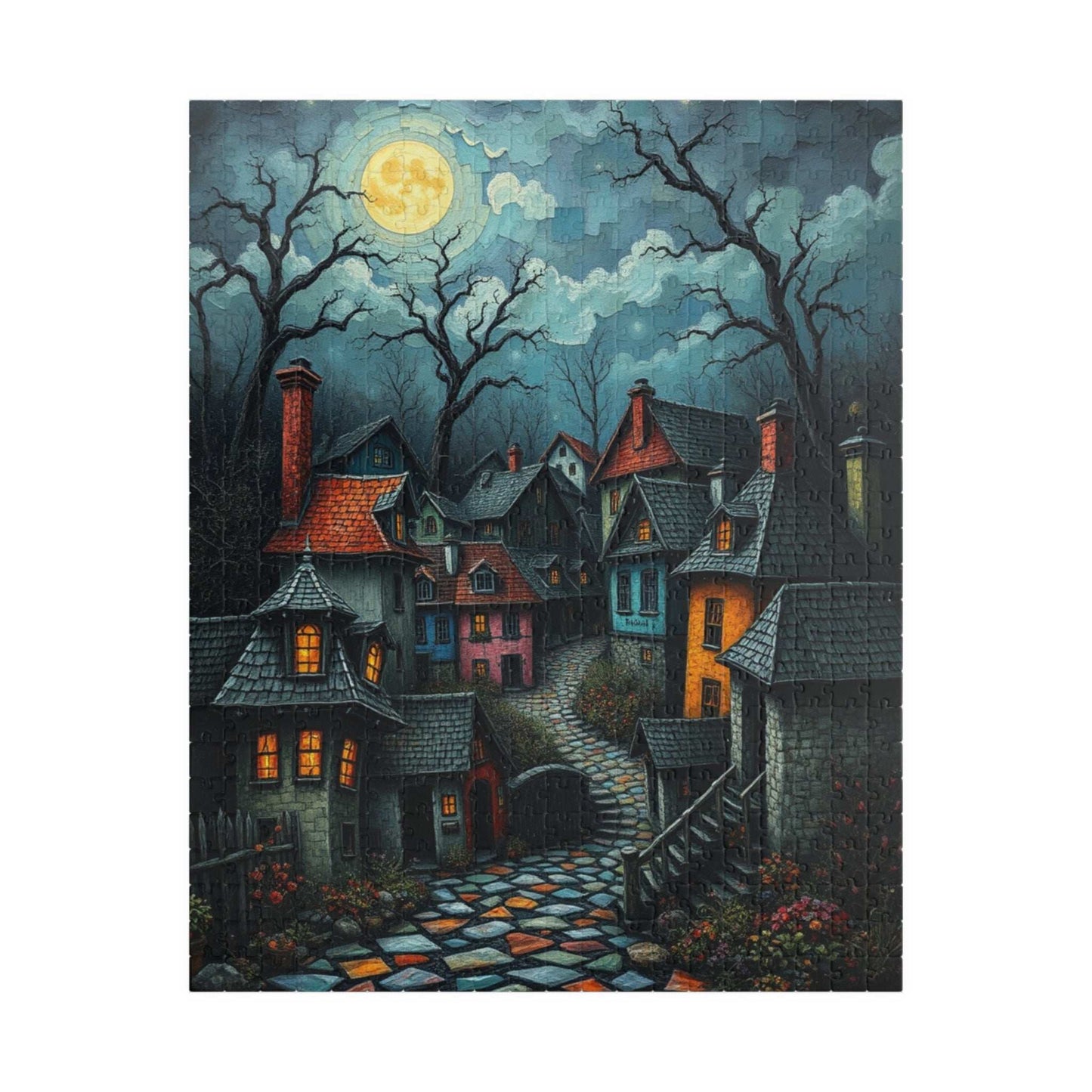Mystical Night Village Puzzle: Enchanting Town Jigsaw Game