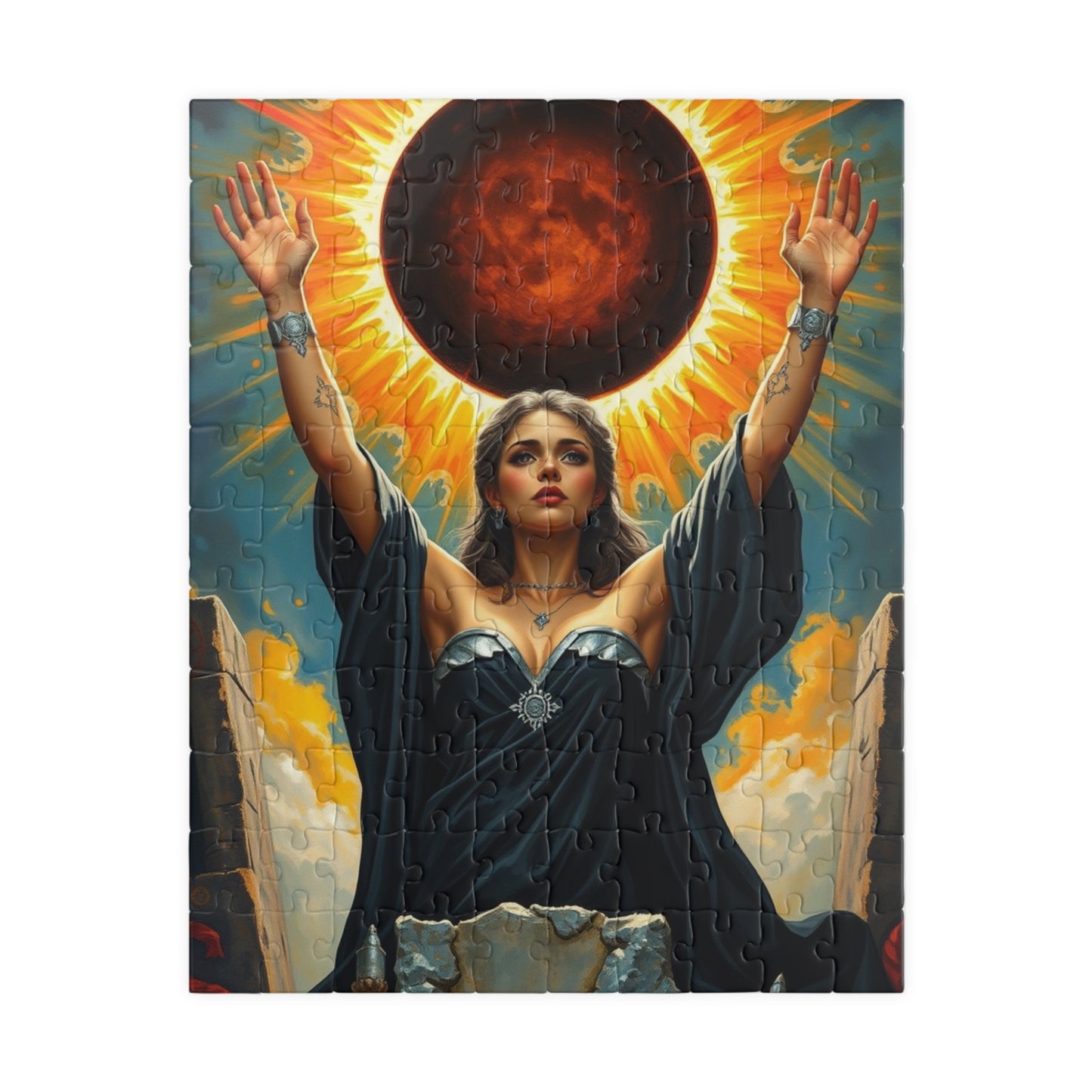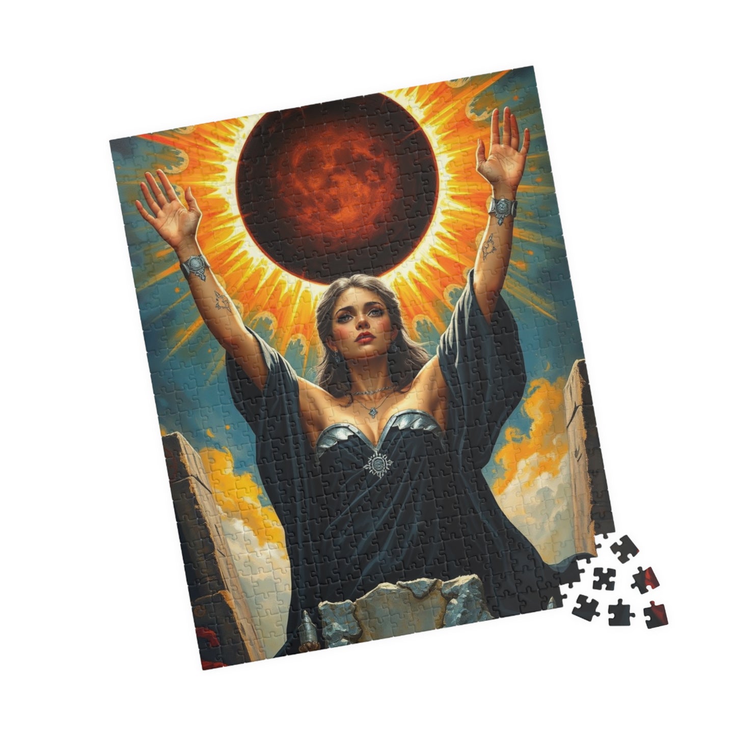 Mystical Solar Eclipse Puzzle | Powerful Sorceress Adult Jigsaw Game | Perfect for Gift, Family or Solo Fun, Nighttime Vibes, Introspection