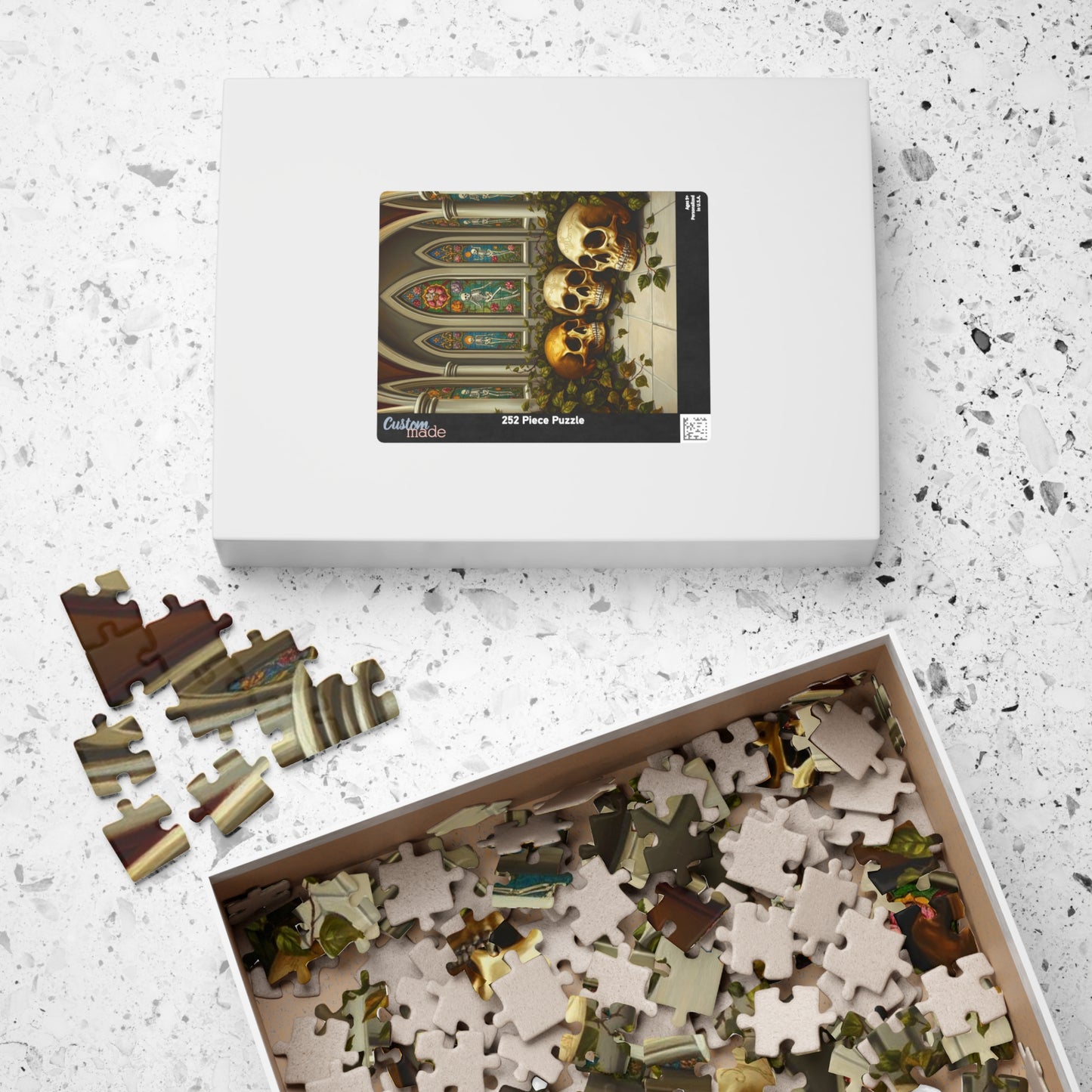 Ornate Ossuary Bloom - Skull Garden Puzzle, Gothic Artwork Jigsaw Game for Gift for Puzzle Lover, Halloween Decor, Stress Relief Activity