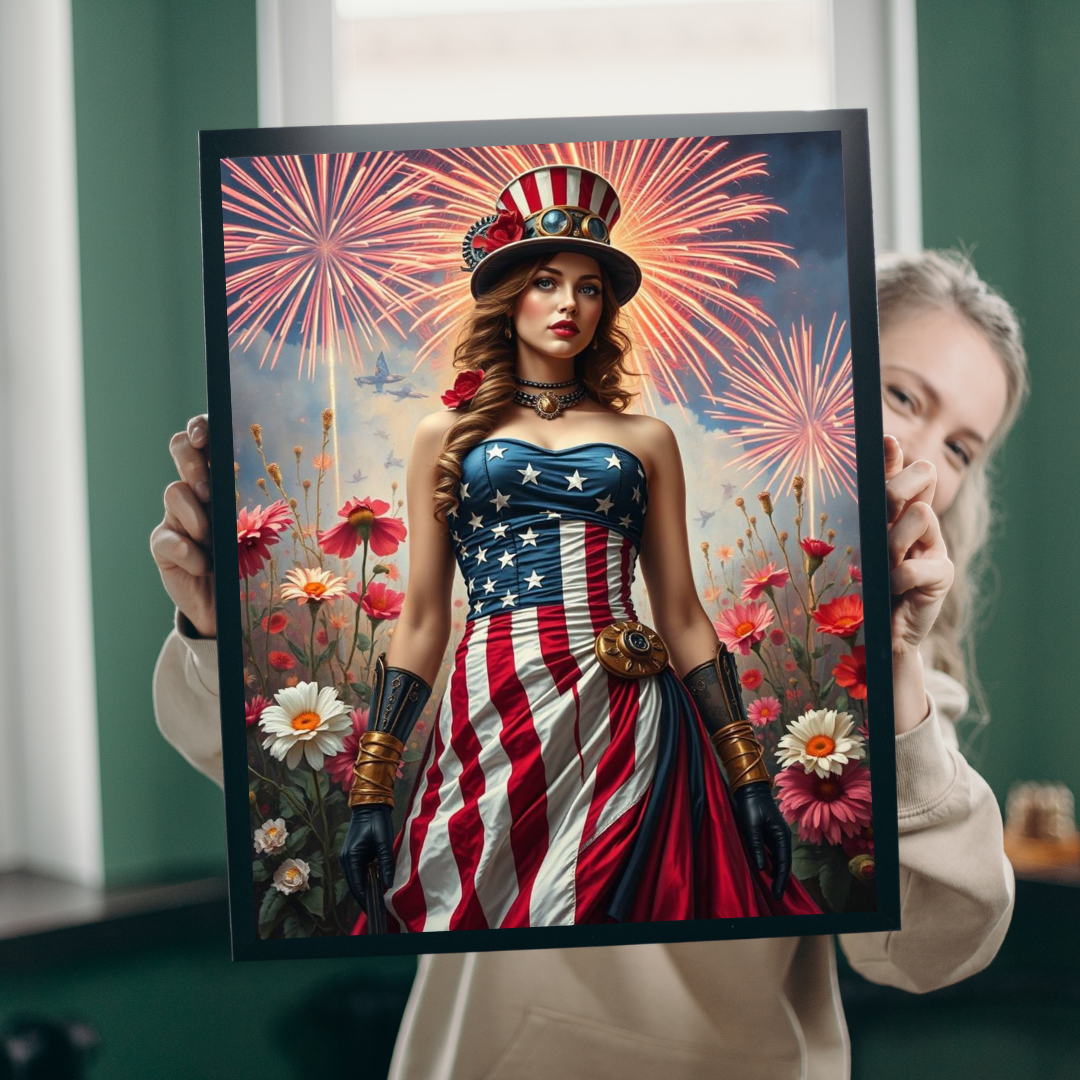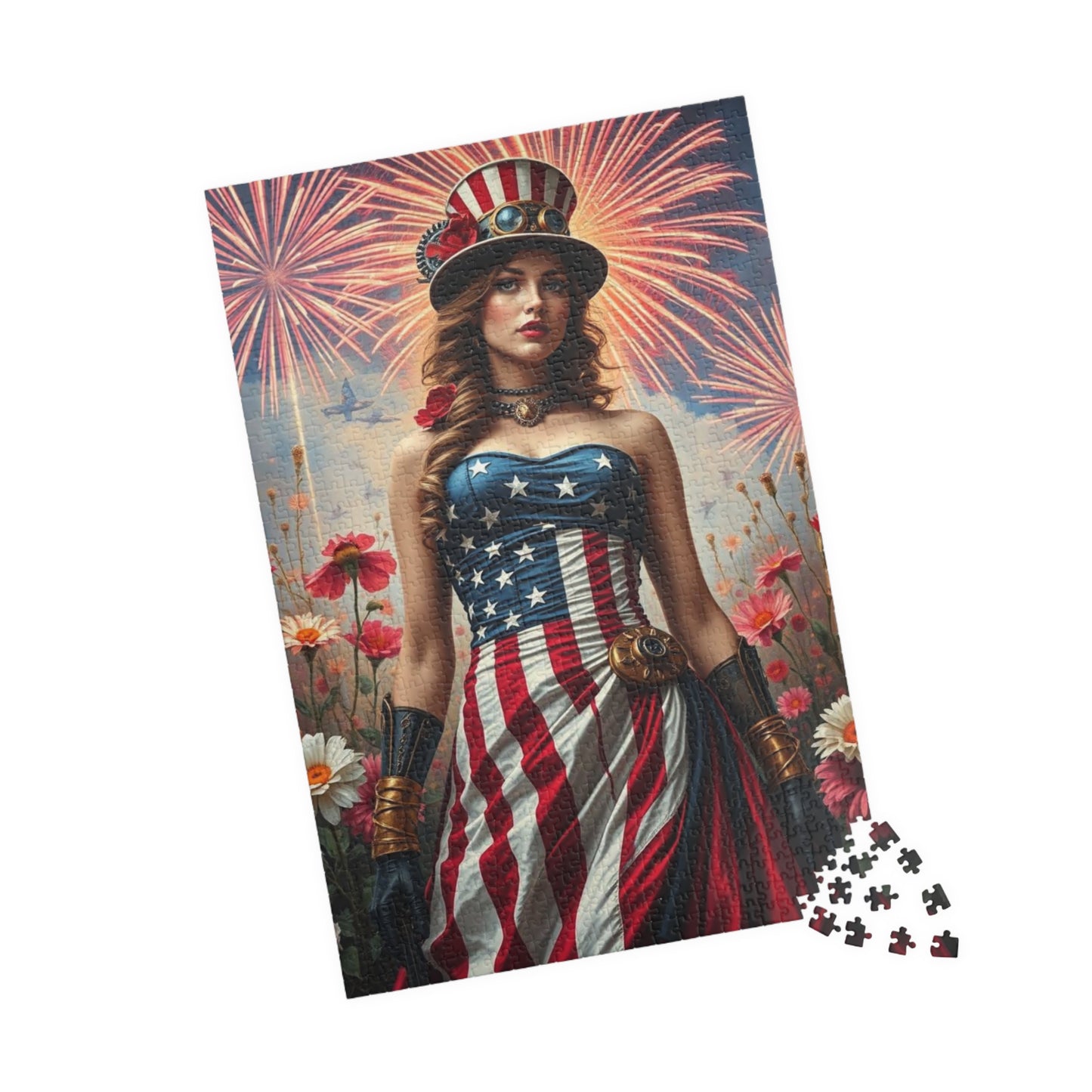 Patriotic Puzzle Art for Independence Day - Woman Portrait, American Theme Jigsaw Game, 110 252 520 1014-piece Puzzles, Family Fun Activity