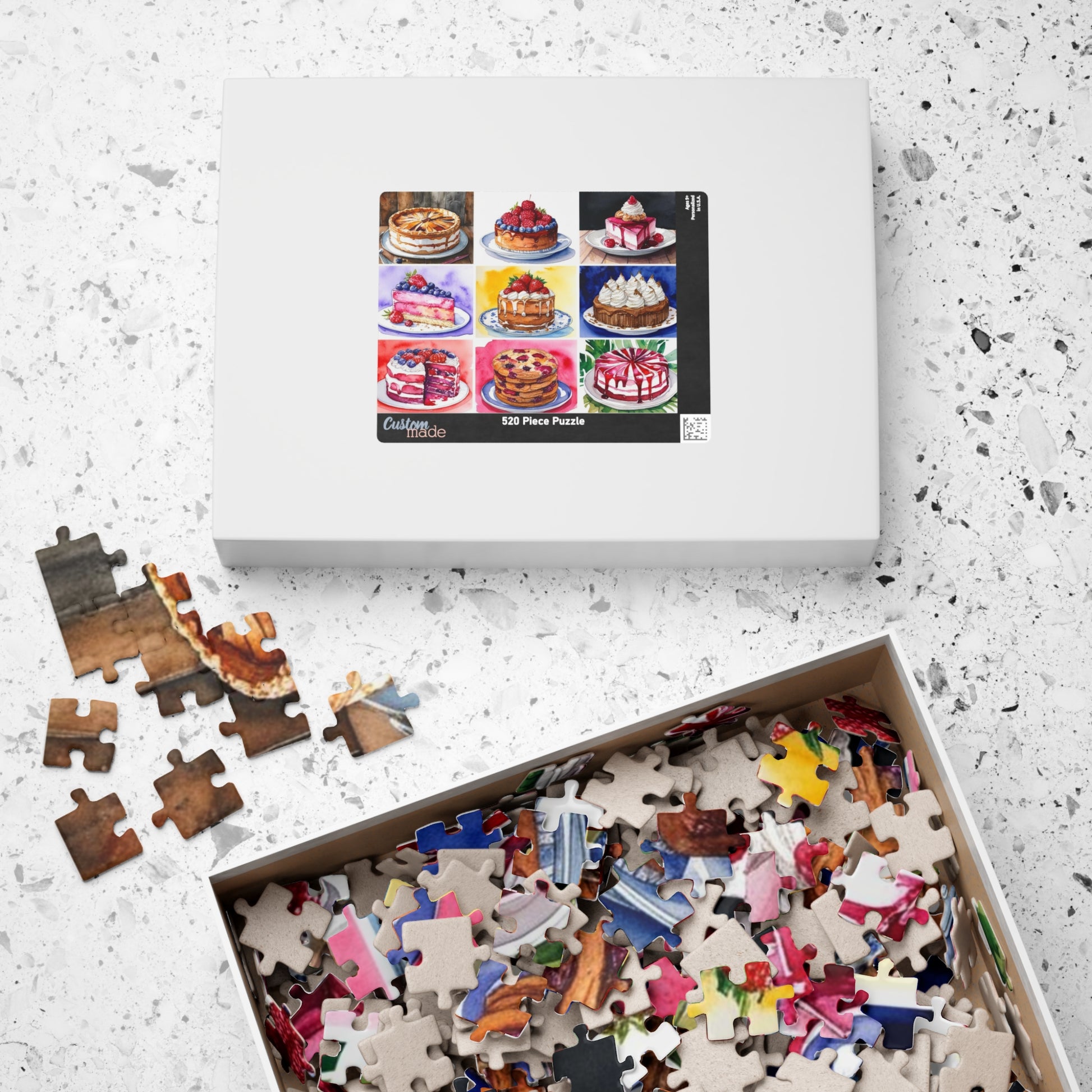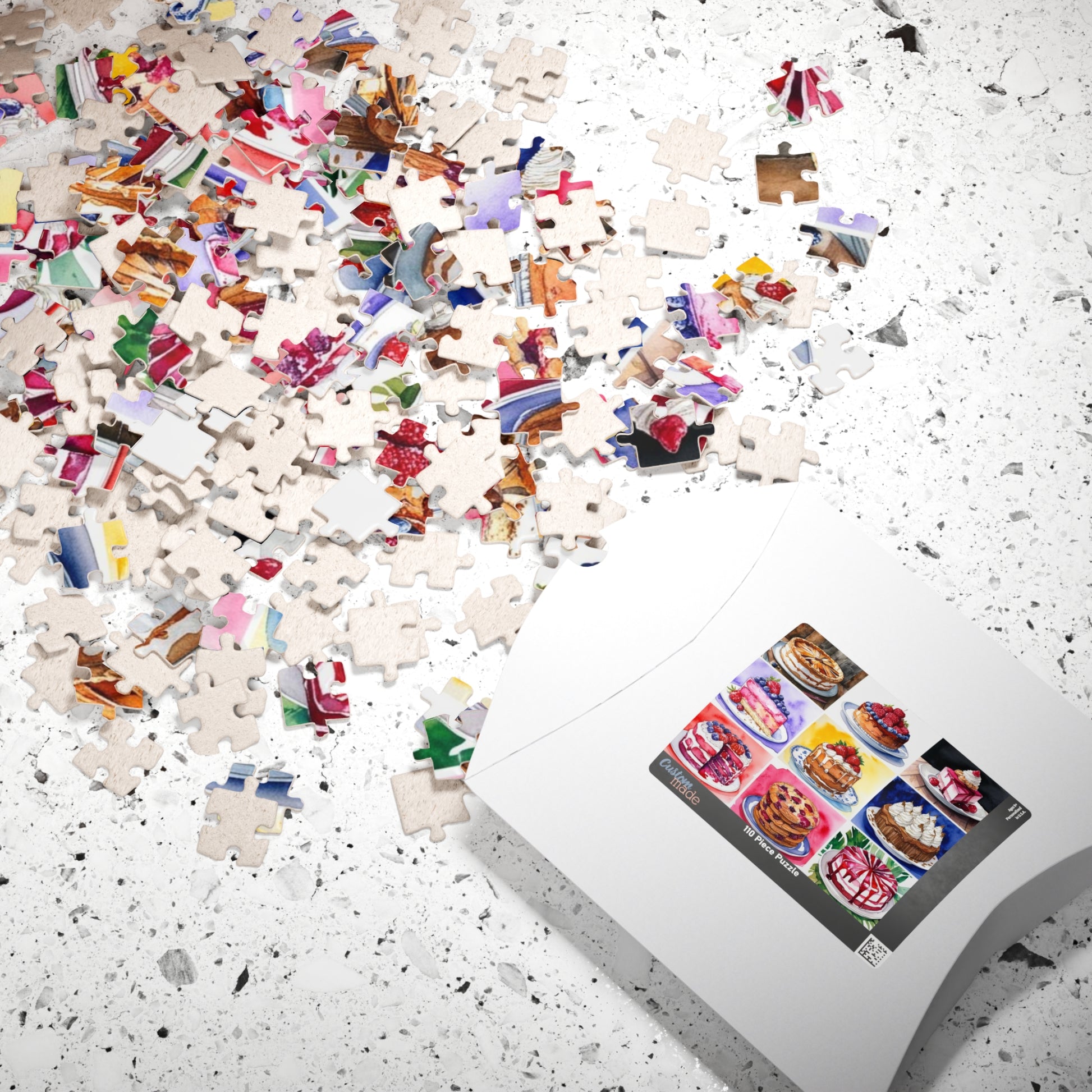 Enjoy hours of fun with this Dessert Collage Jigsaw Puzzle, perfect for foodies. The vibrant colors and glossy finish make the artwork pop, and the choice of 110, 252 or 520 pieces caters to all skill levels. This puzzle is a great way to relax and unwind, suitable for both adults and kids alike. Perfect for gifting on birthdays, holidays, or simply for a cozy family night in.