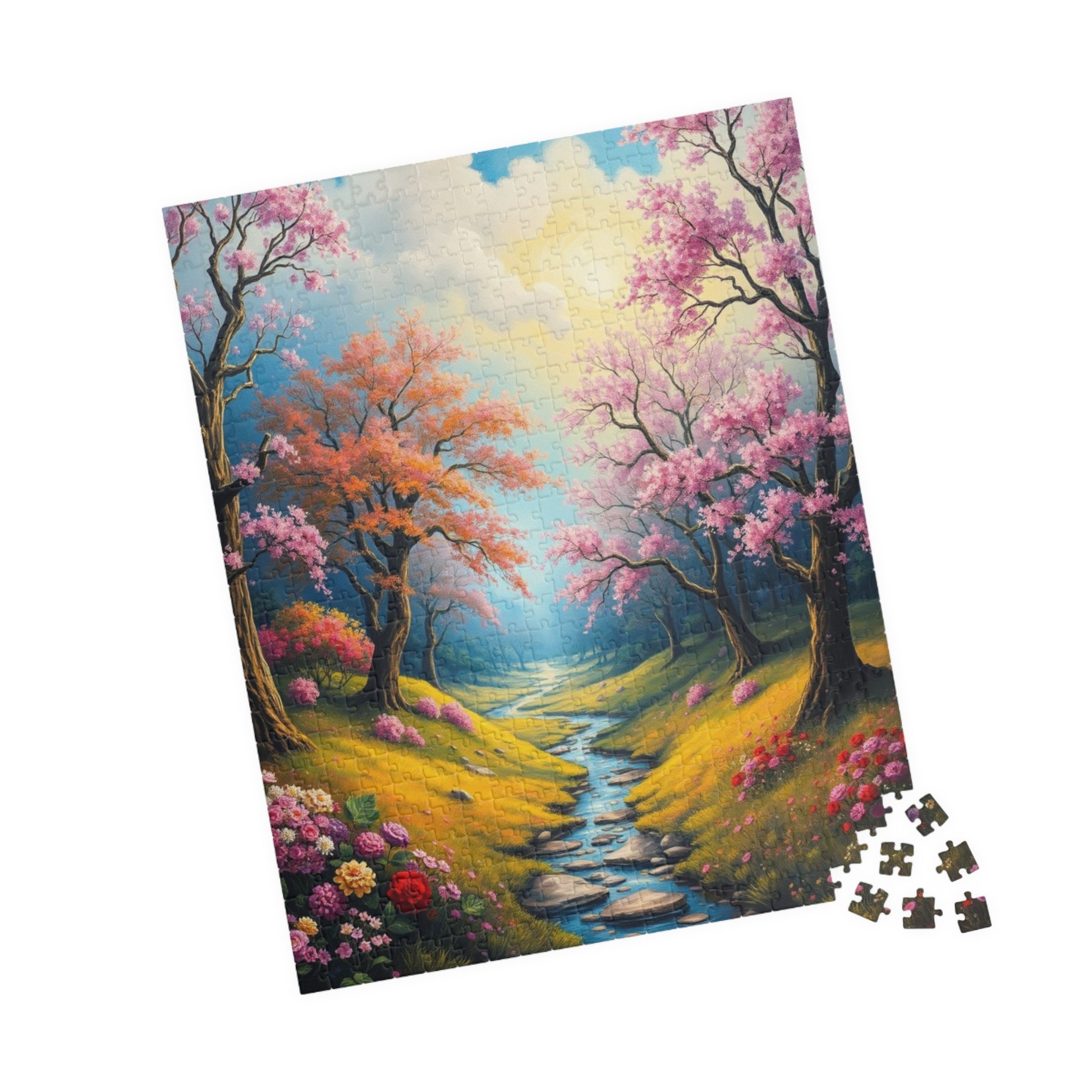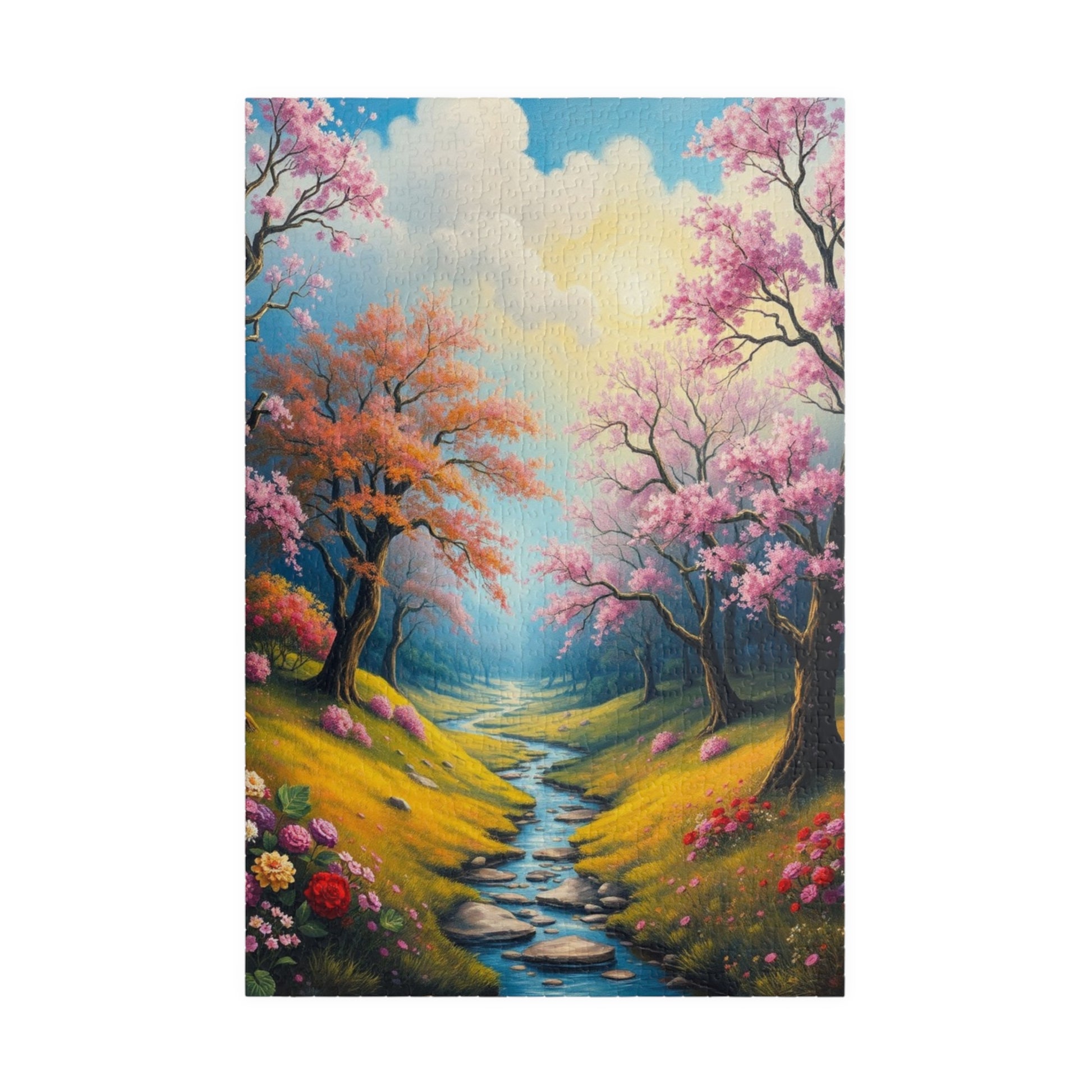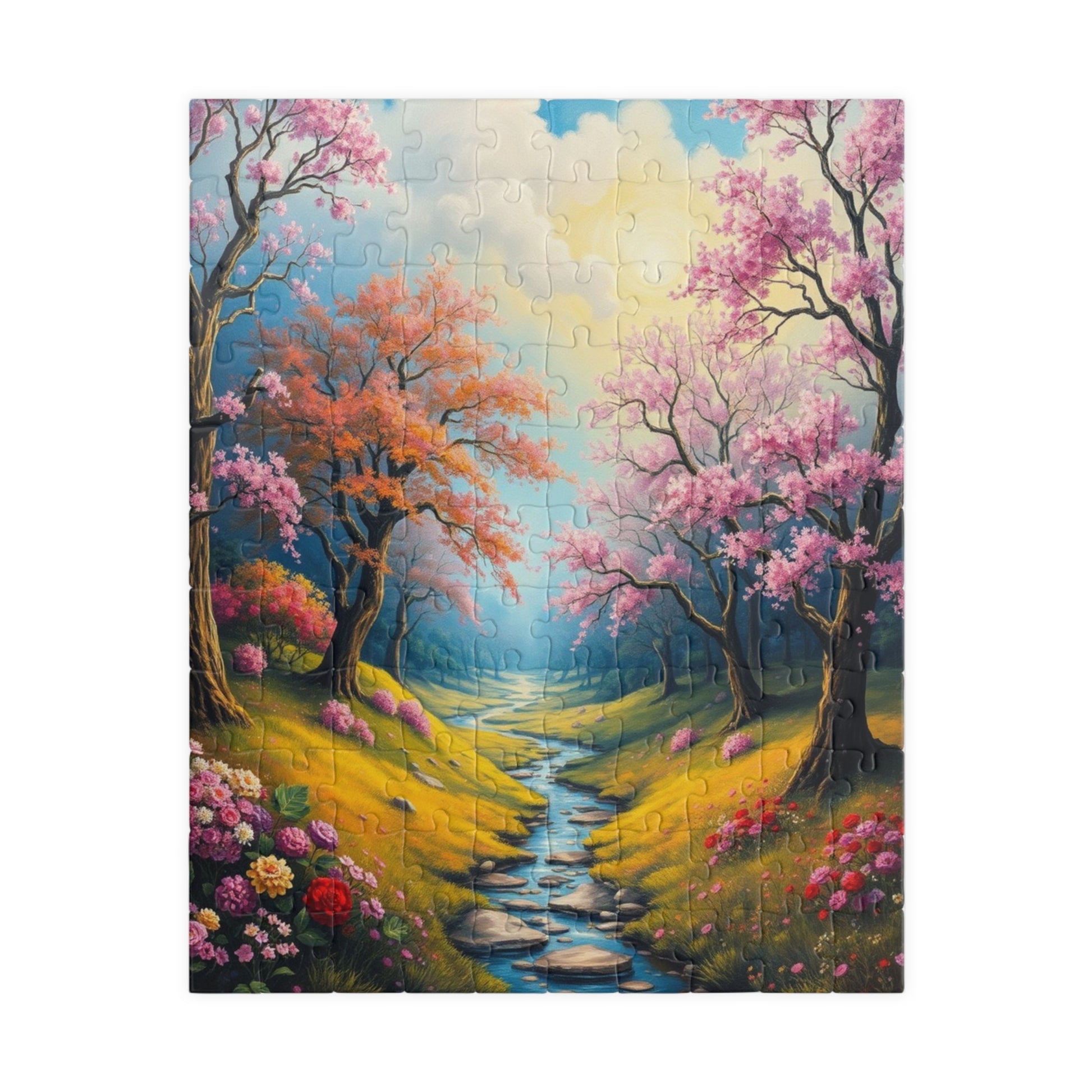 A stunning puzzle featuring a spring landscape with colorful trees, flowers, and greenery. Perfect for those who enjoy relaxing and unwinding with a challenging yet beautiful activity. Ideal for nature lovers and puzzle enthusiasts. Great for gifting during birthdays, Mother's Day, or any special occasion.