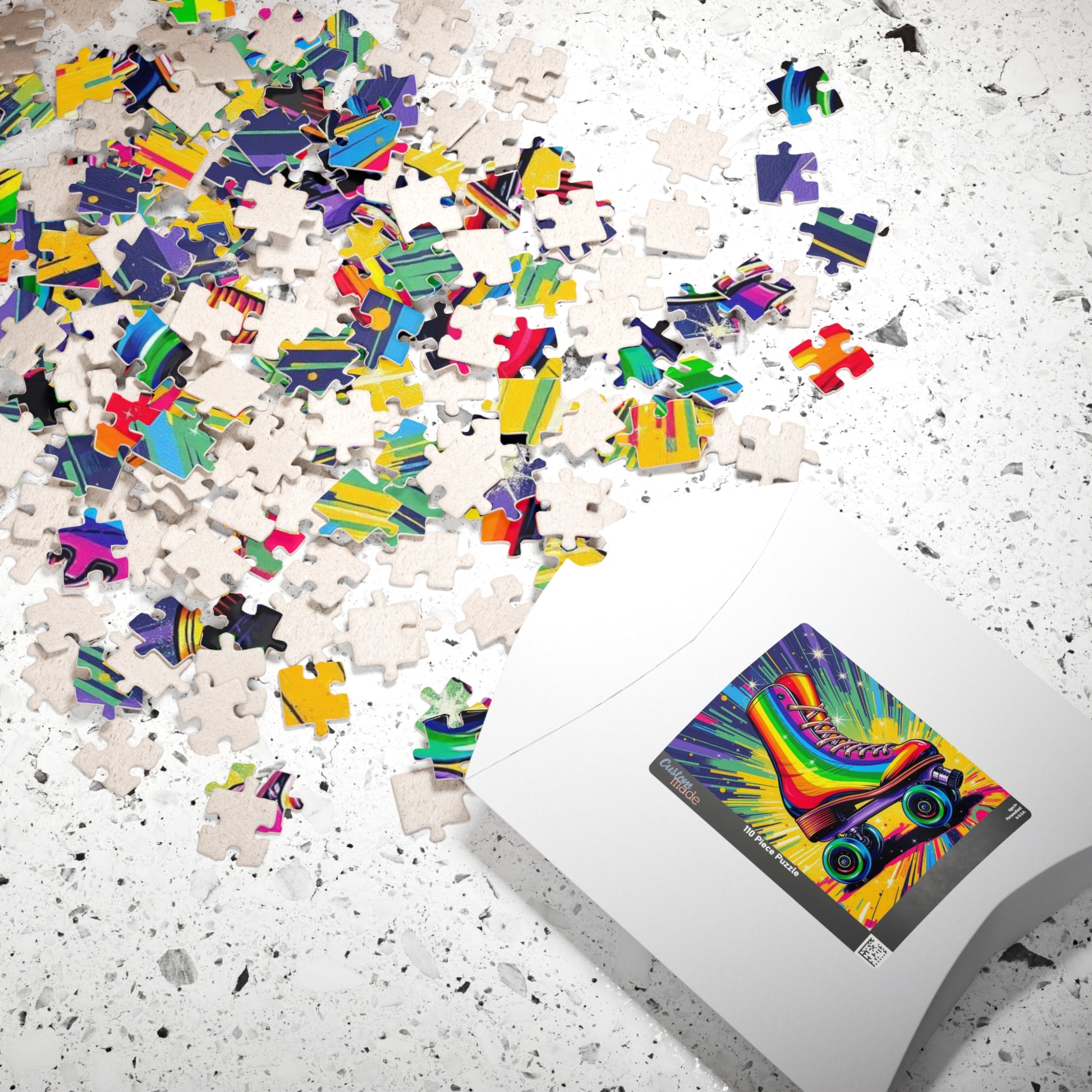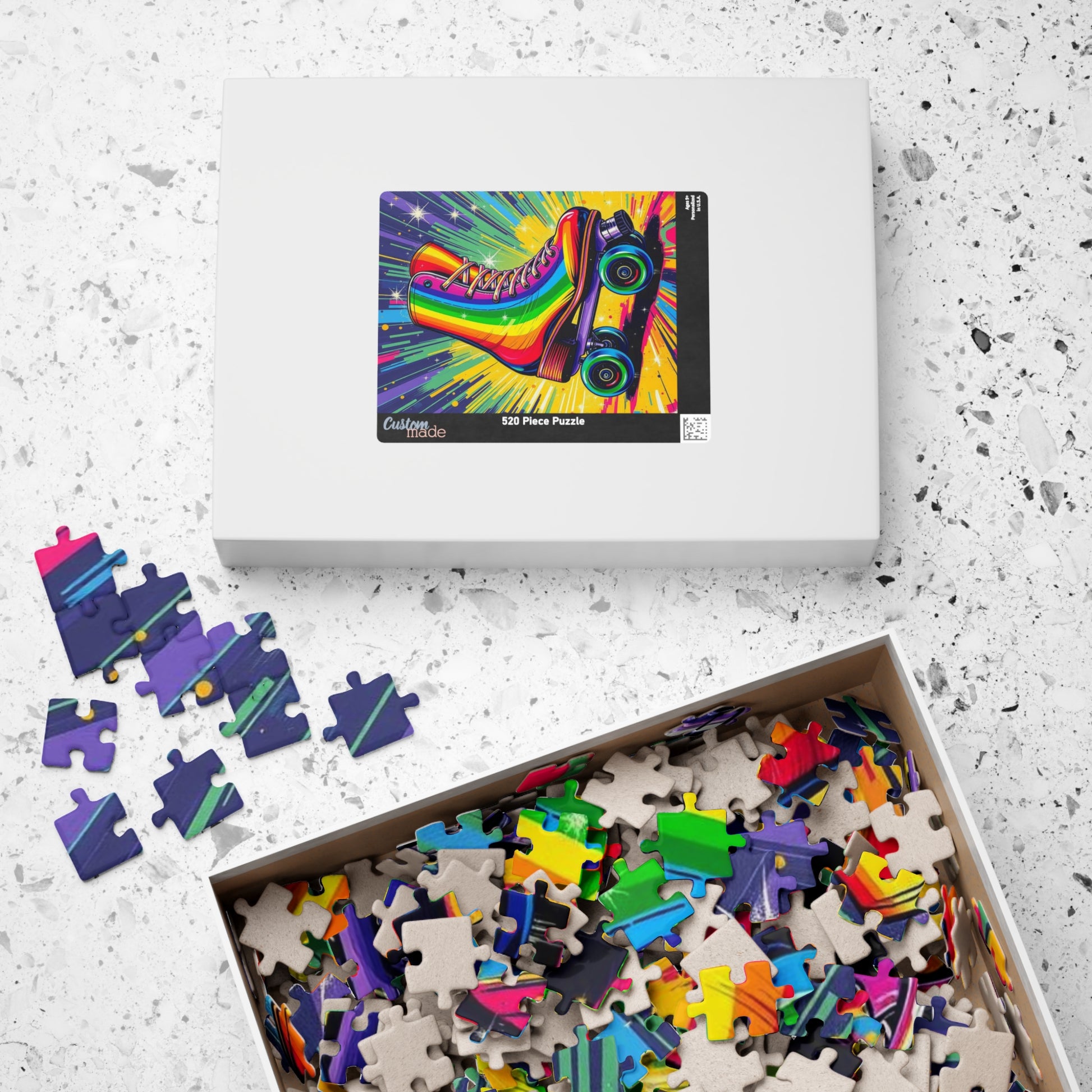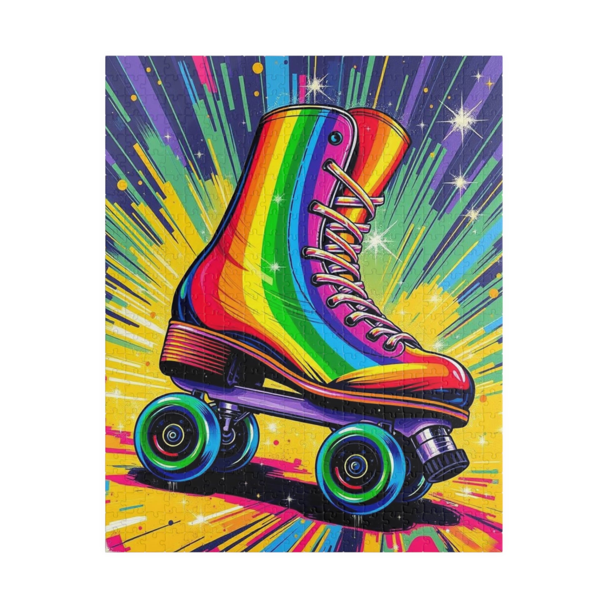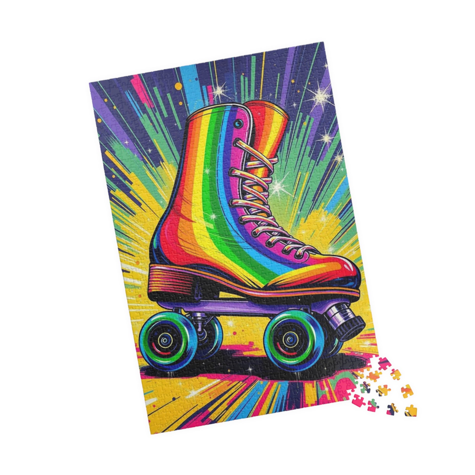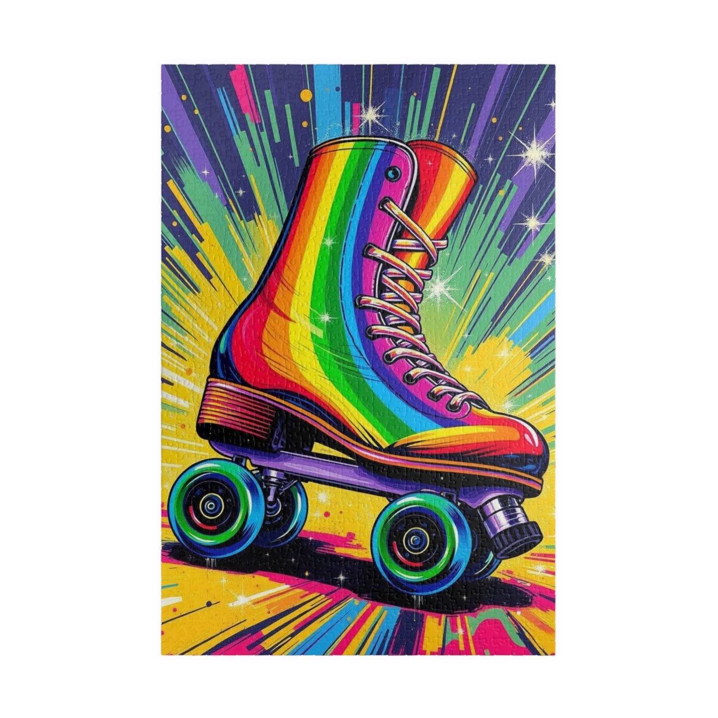 Rainbow Roller Skate Puzzle, Pop Art Jigsaw Fun Family Game, Colorful Home Entertainment, Gift for Hobbyist Puzzle Enthusiast