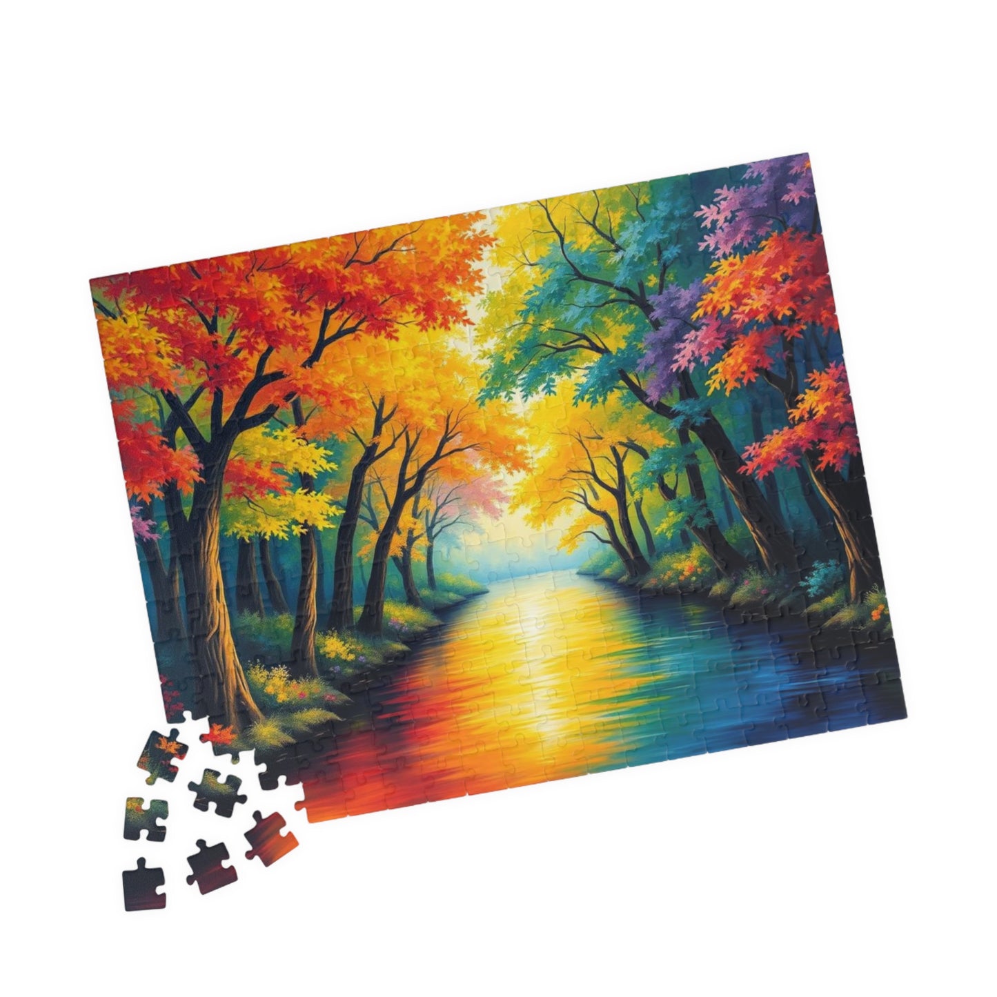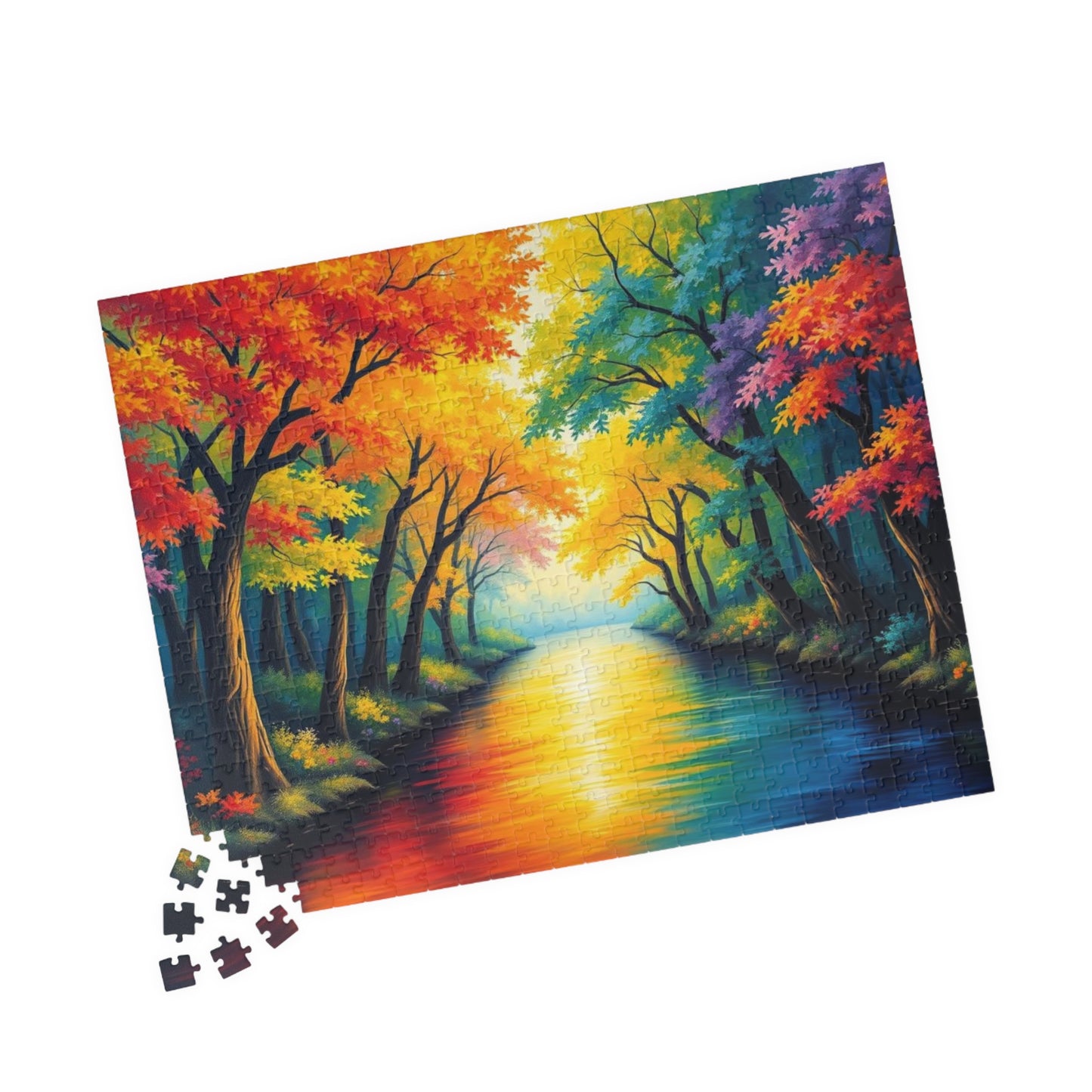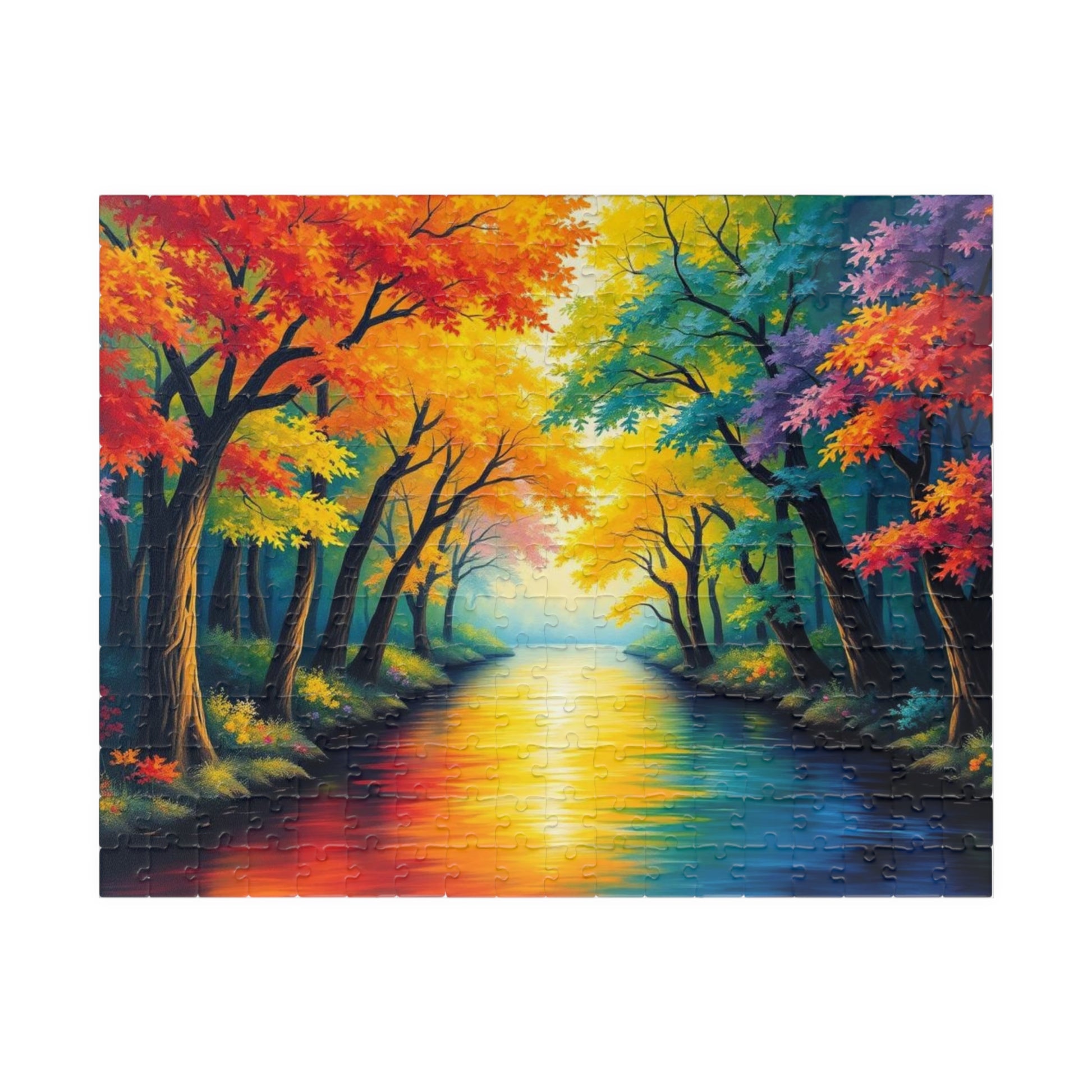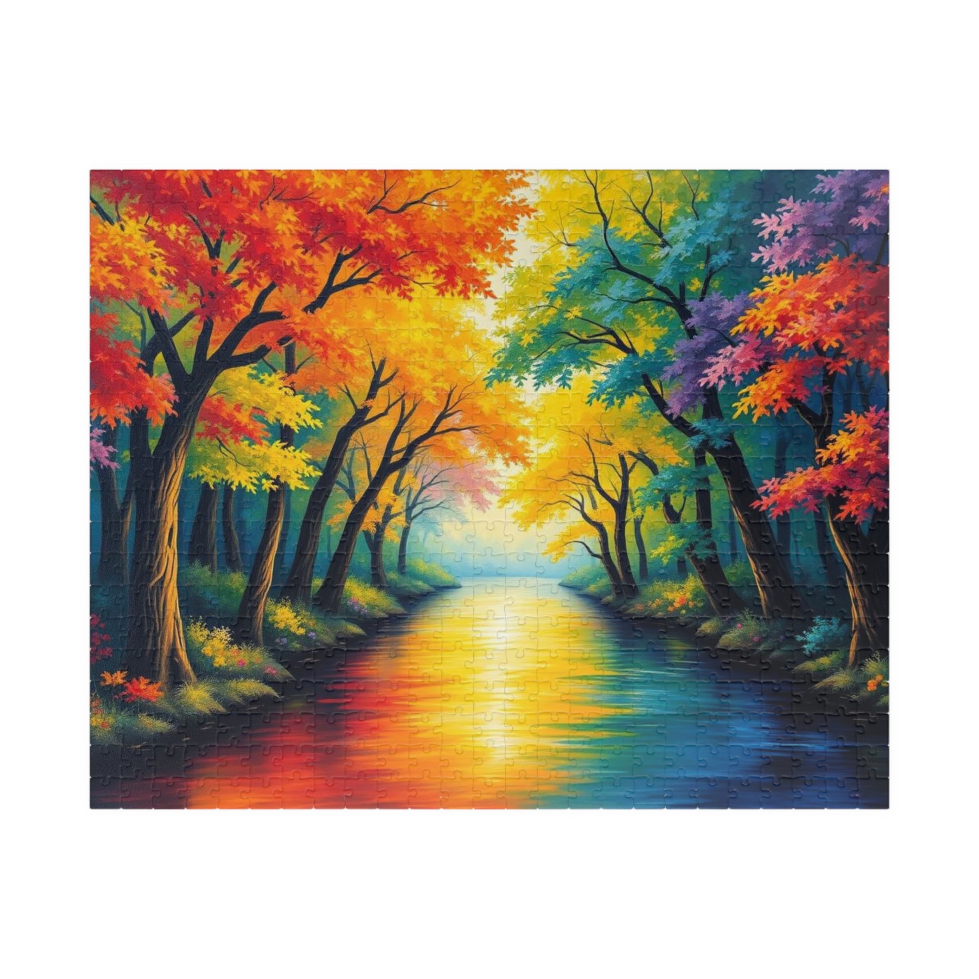Reflections of Pride Jigsaw Puzzle, Vibrant Autumn Trees Rainbow Forest Puzzle, LGBTQ+ Nature Puzzle for Solo or Family Activity, Pride Gift