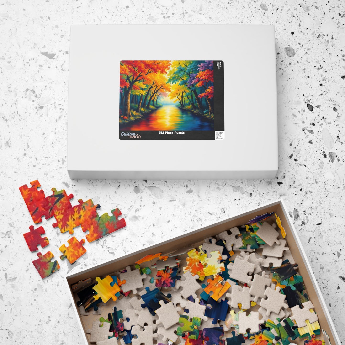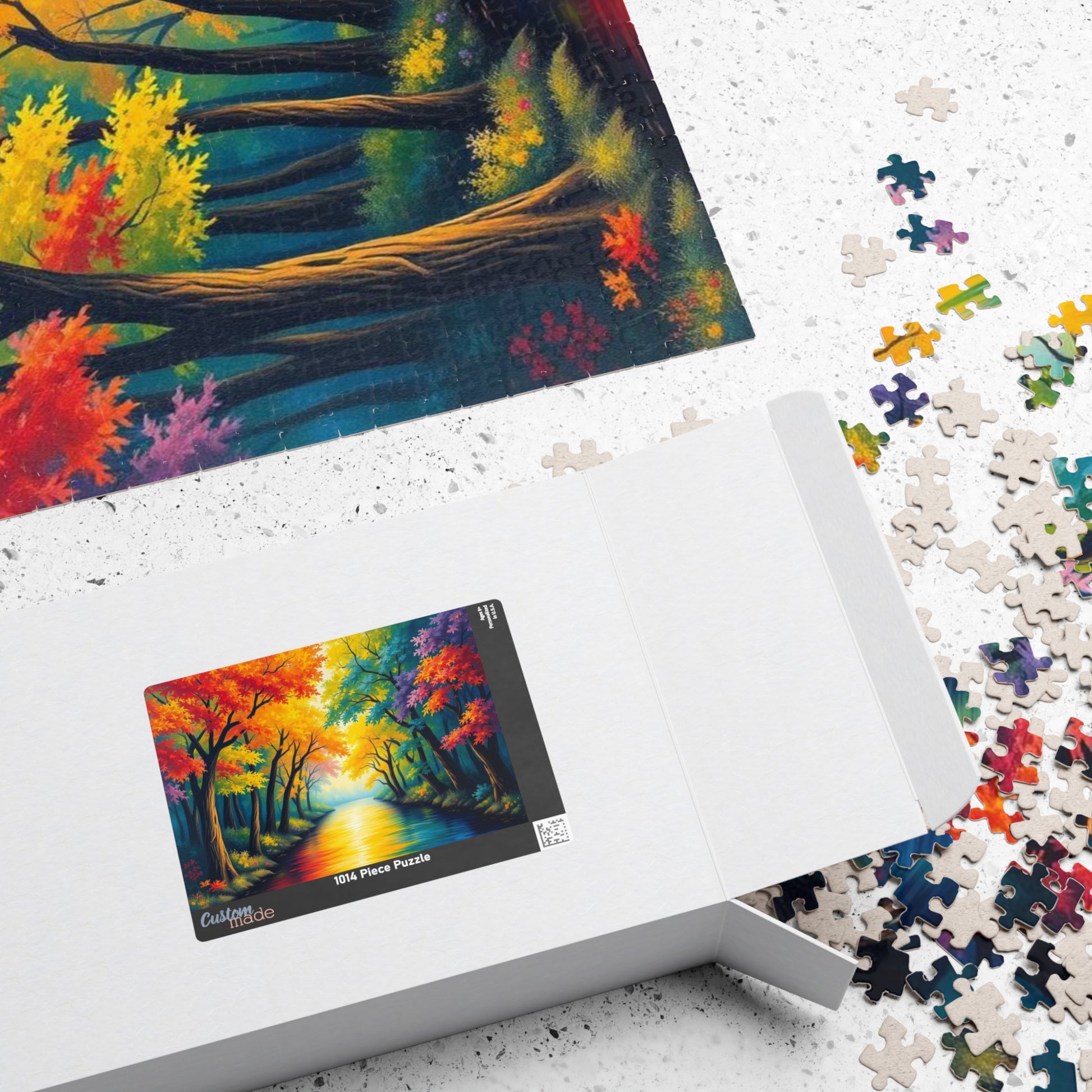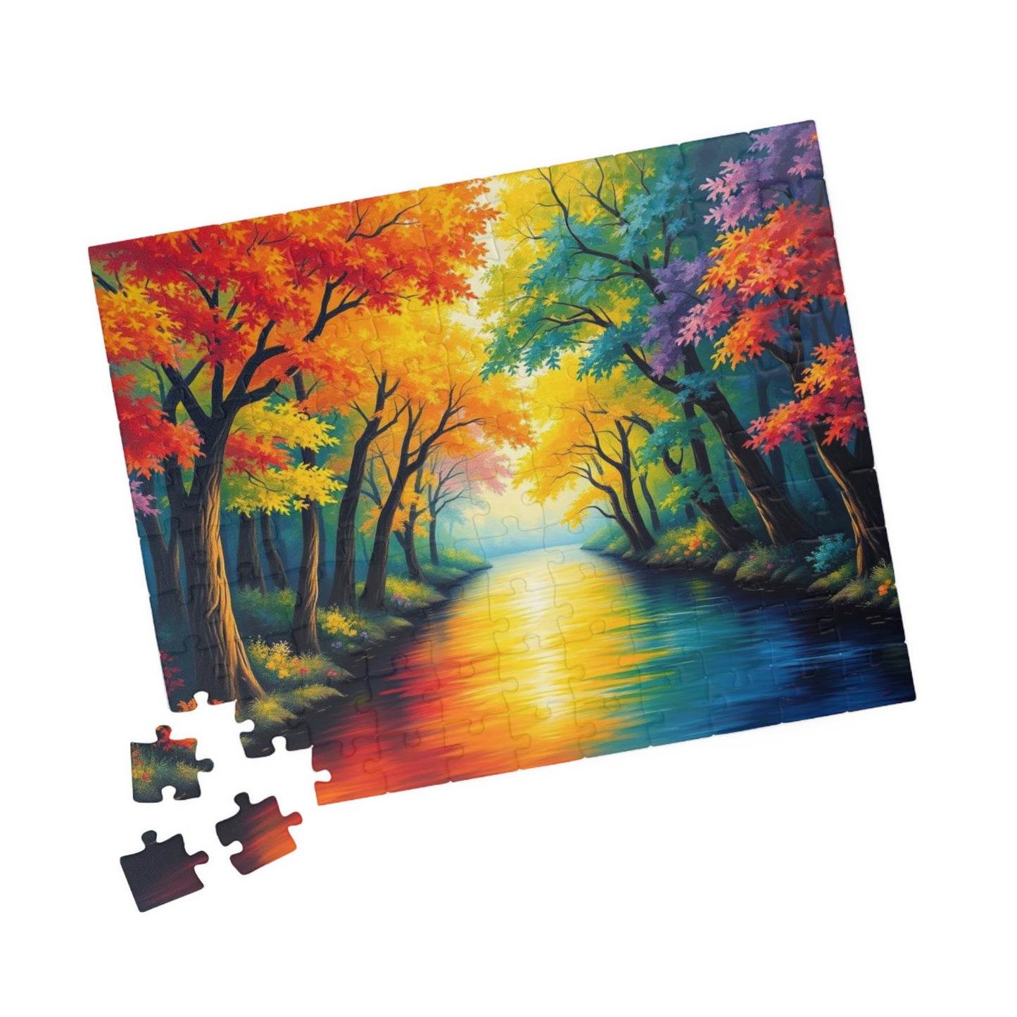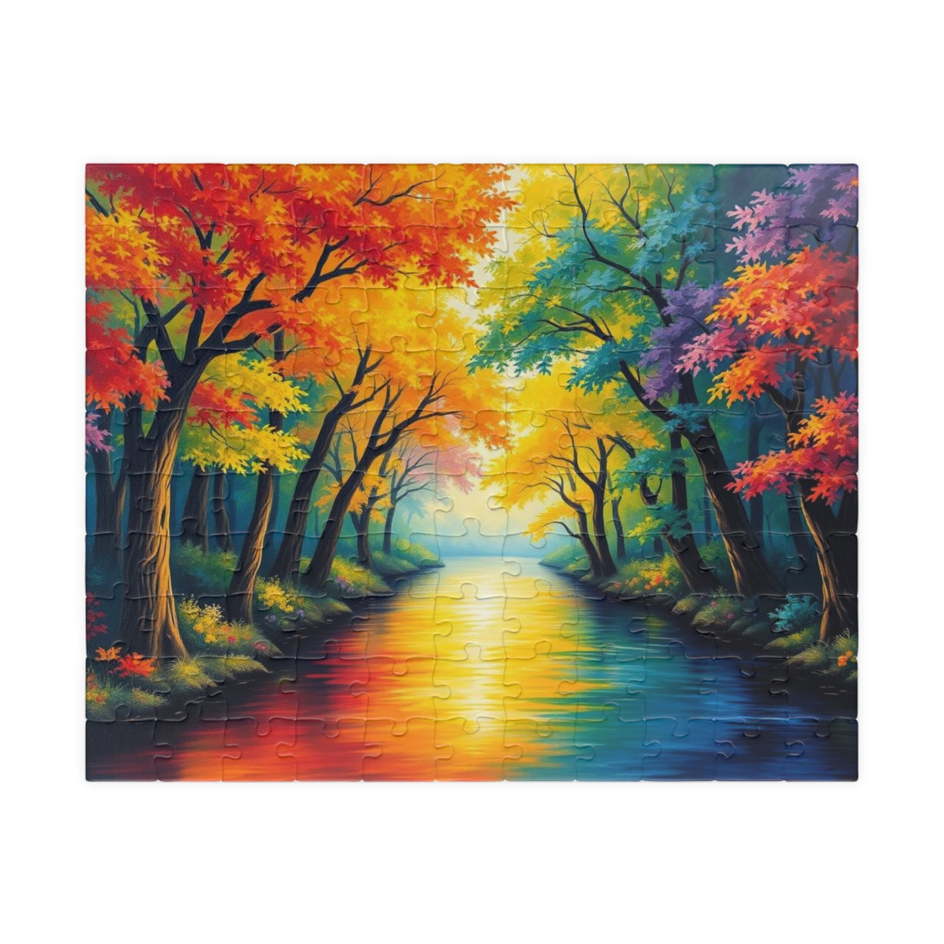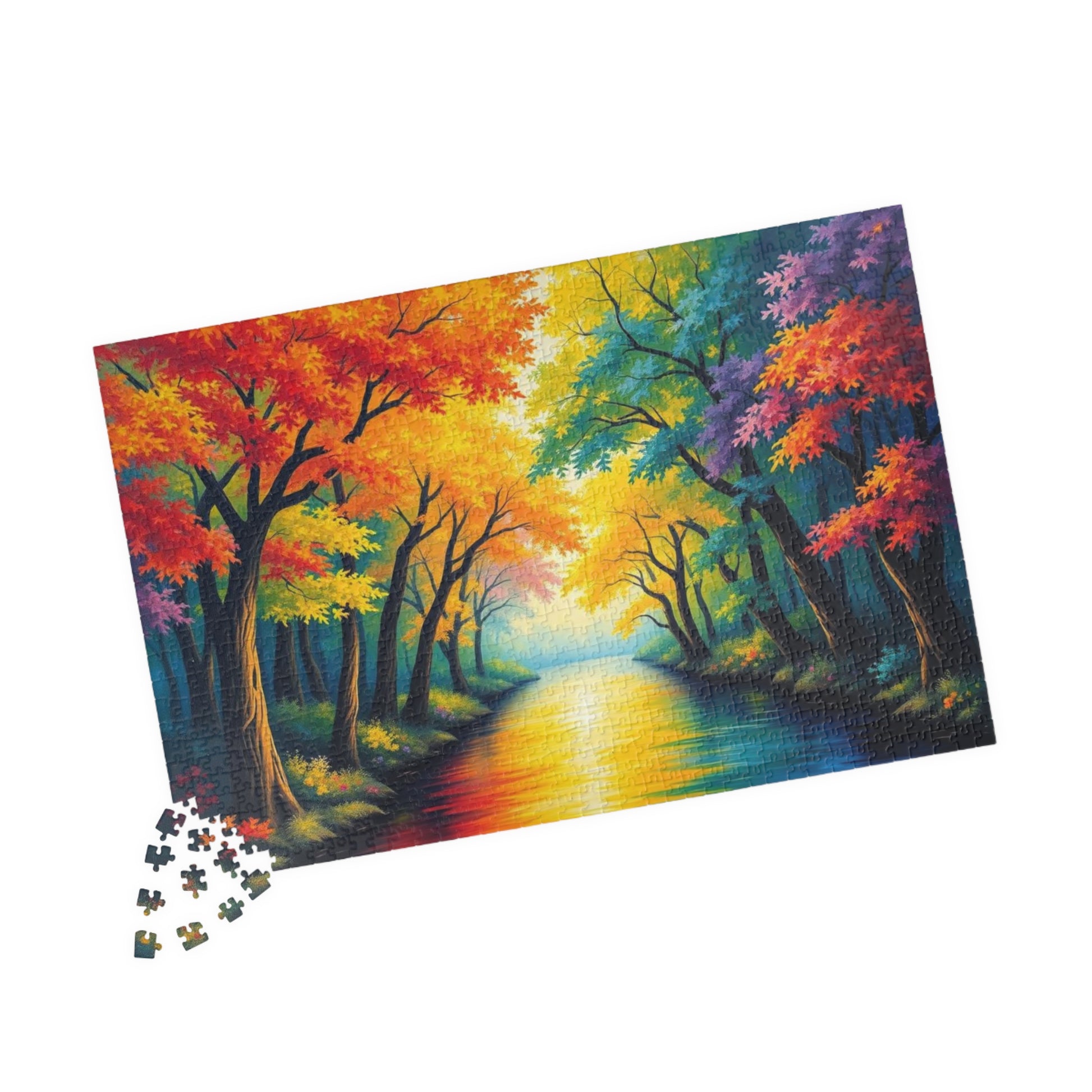 Reflections of Pride Jigsaw Puzzle, Vibrant Autumn Trees Rainbow Forest Puzzle, LGBTQ+ Nature Puzzle for Solo or Family Activity, Pride Gift