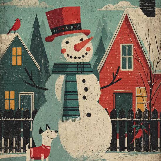 Retro Holiday Cheer Puzzle - Snowman and Dog, Winter Vintage Style Illustration, Ideal for Holiday Activity, Family Game, Festive Gifts
