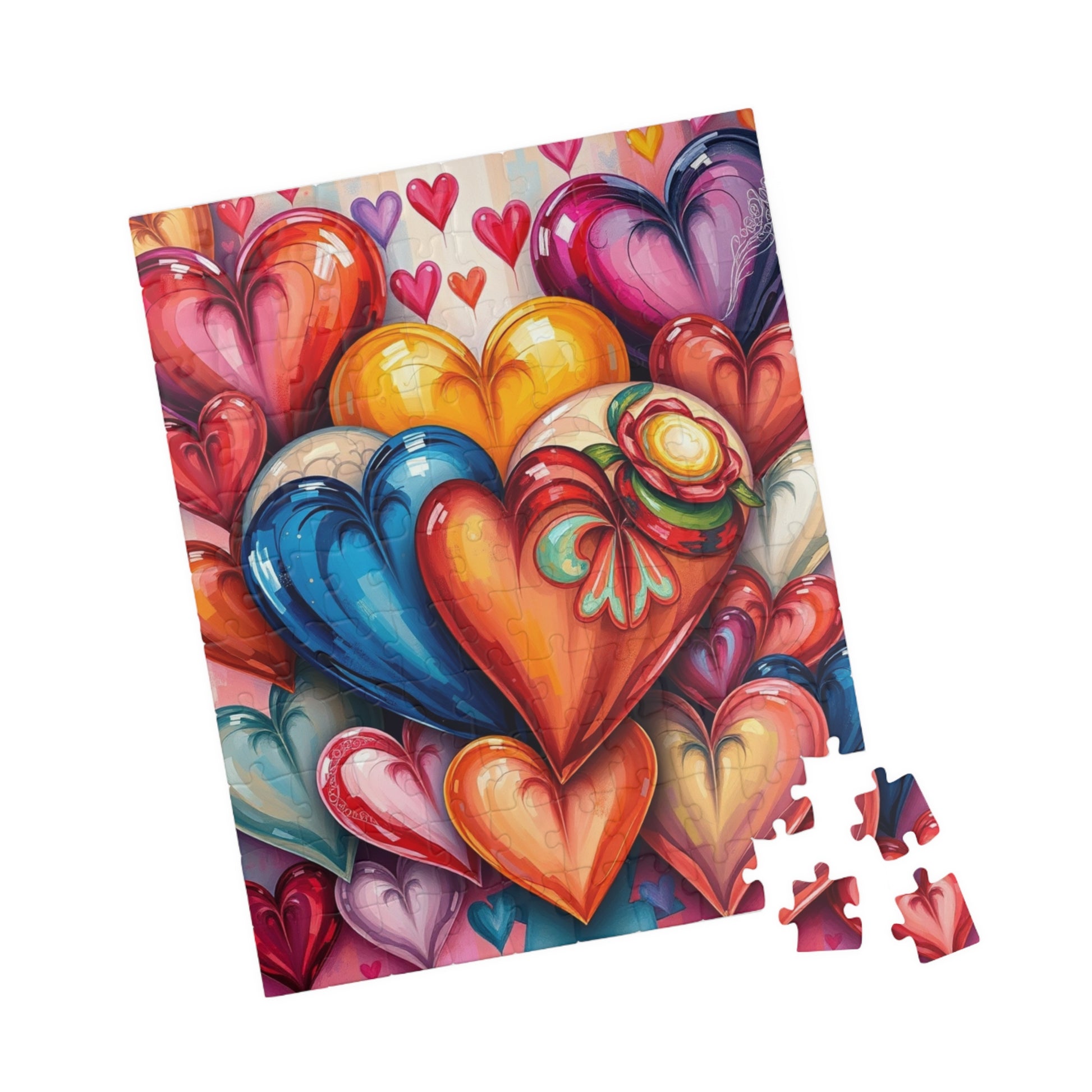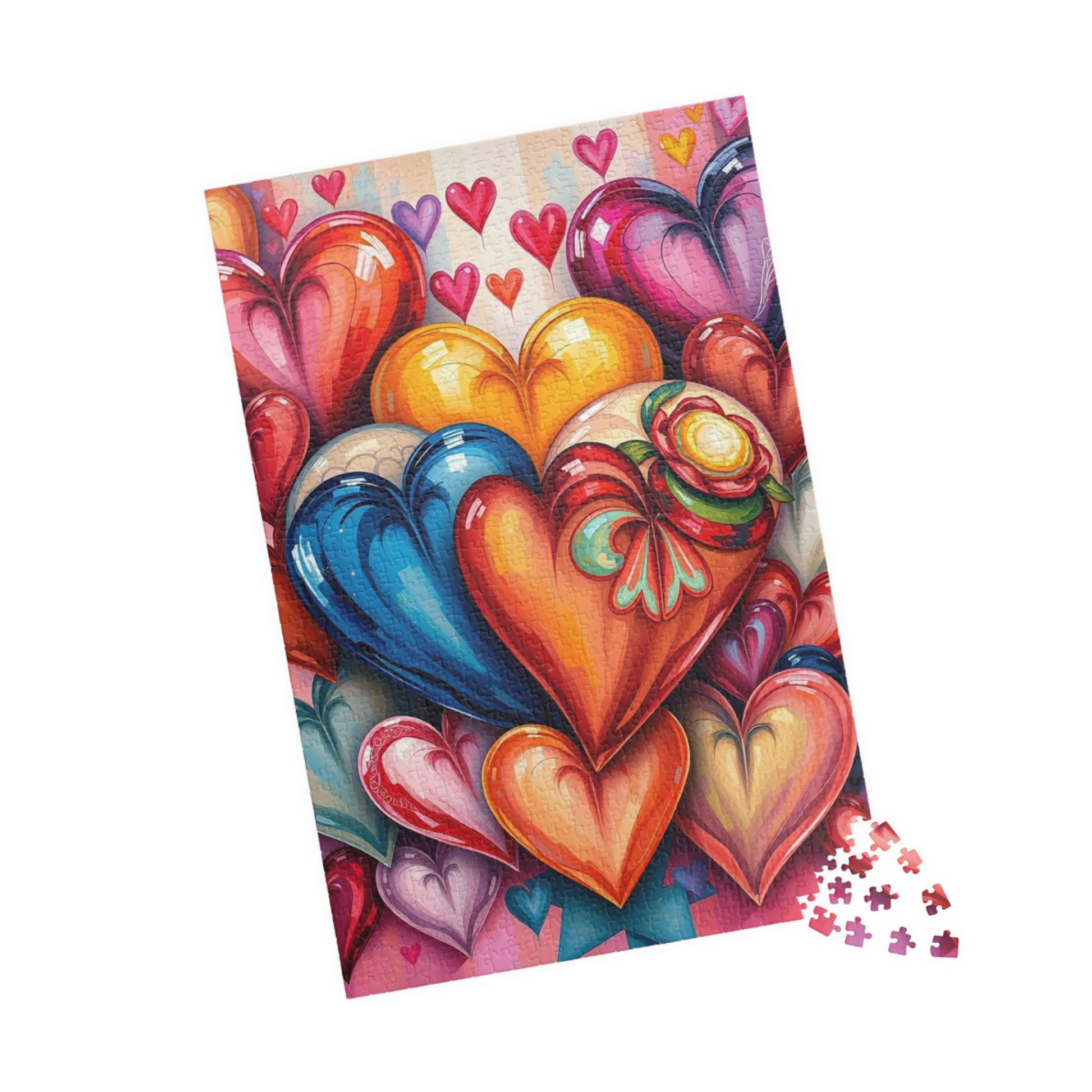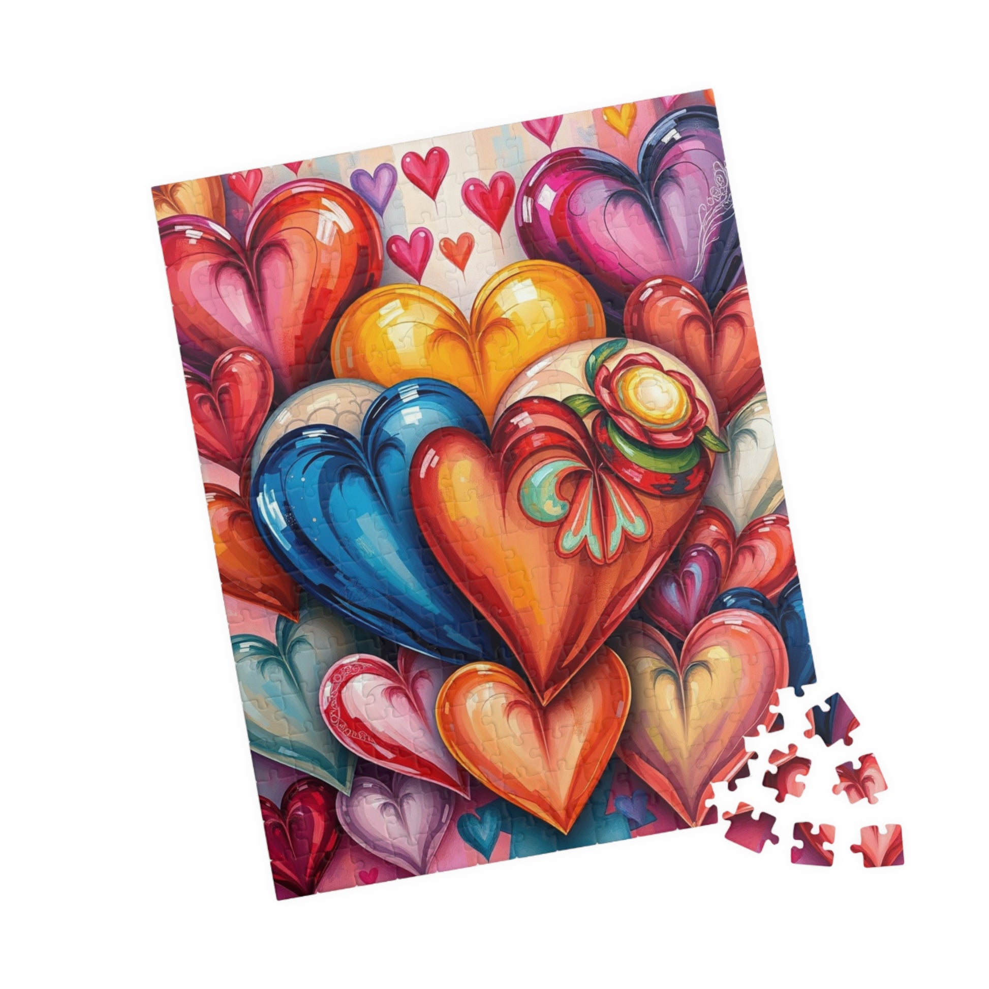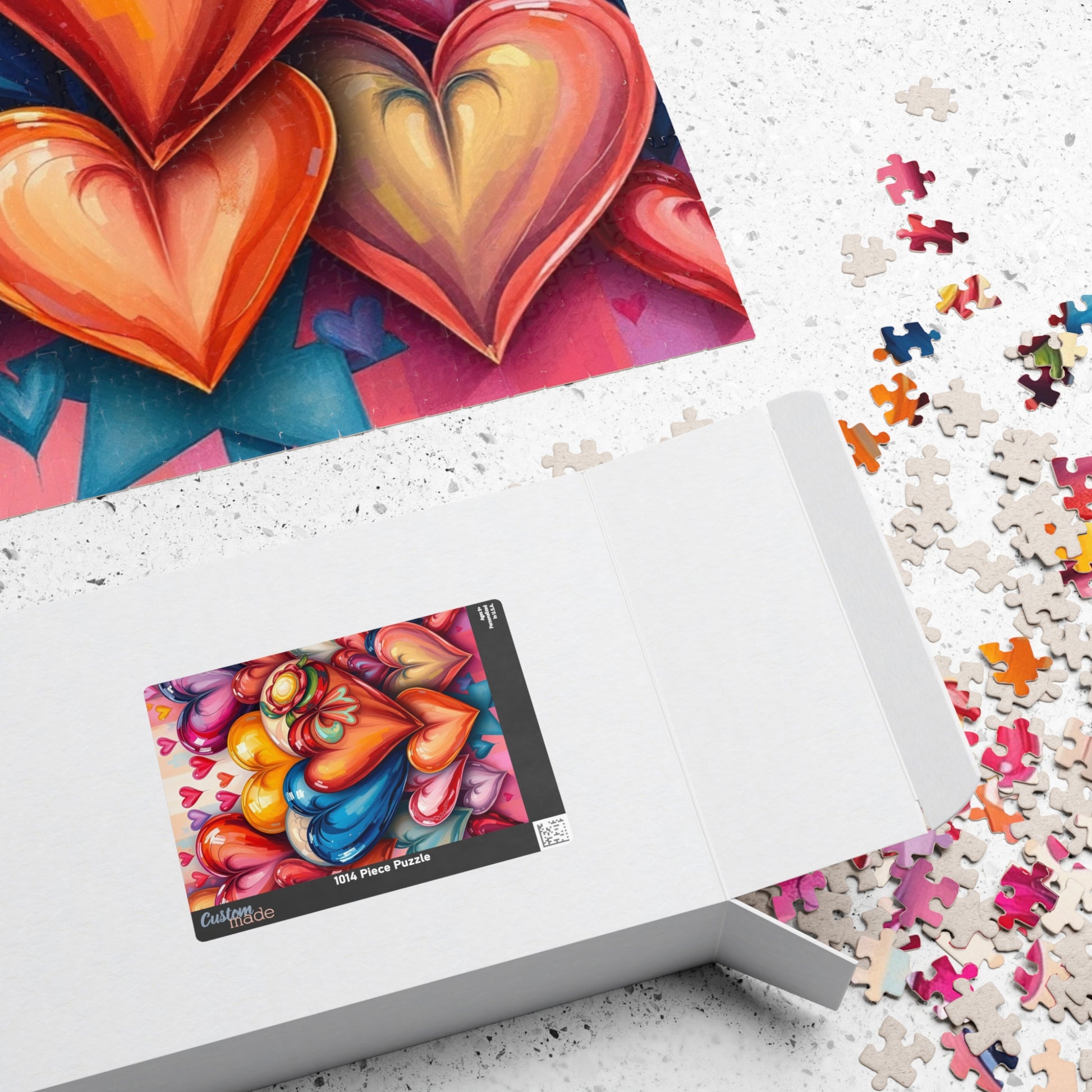 A romantic and vibrant puzzle featuring brightly colored, overlapping hearts. Perfect for those who enjoy challenging themselves with puzzles or for couples to enjoy together. Ideal for Valentine's Day, anniversaries, or to add a touch of romance to any occasion.