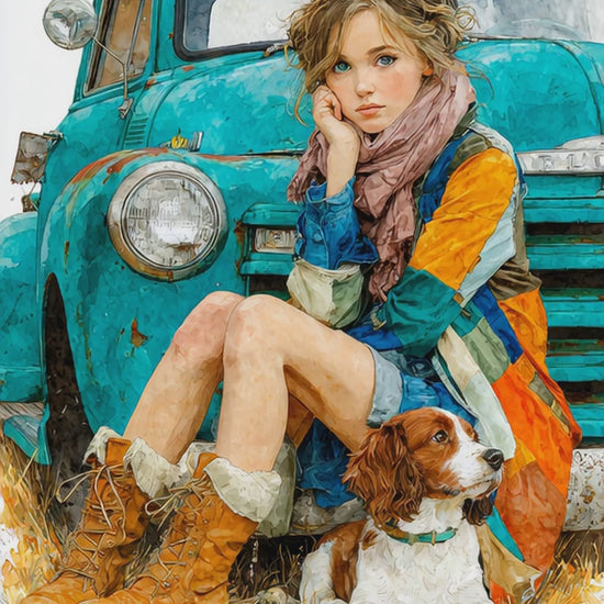 Rustic Country Girl and Dog Jigsaw Puzzle - Vintage Truck and Spaniel Companion