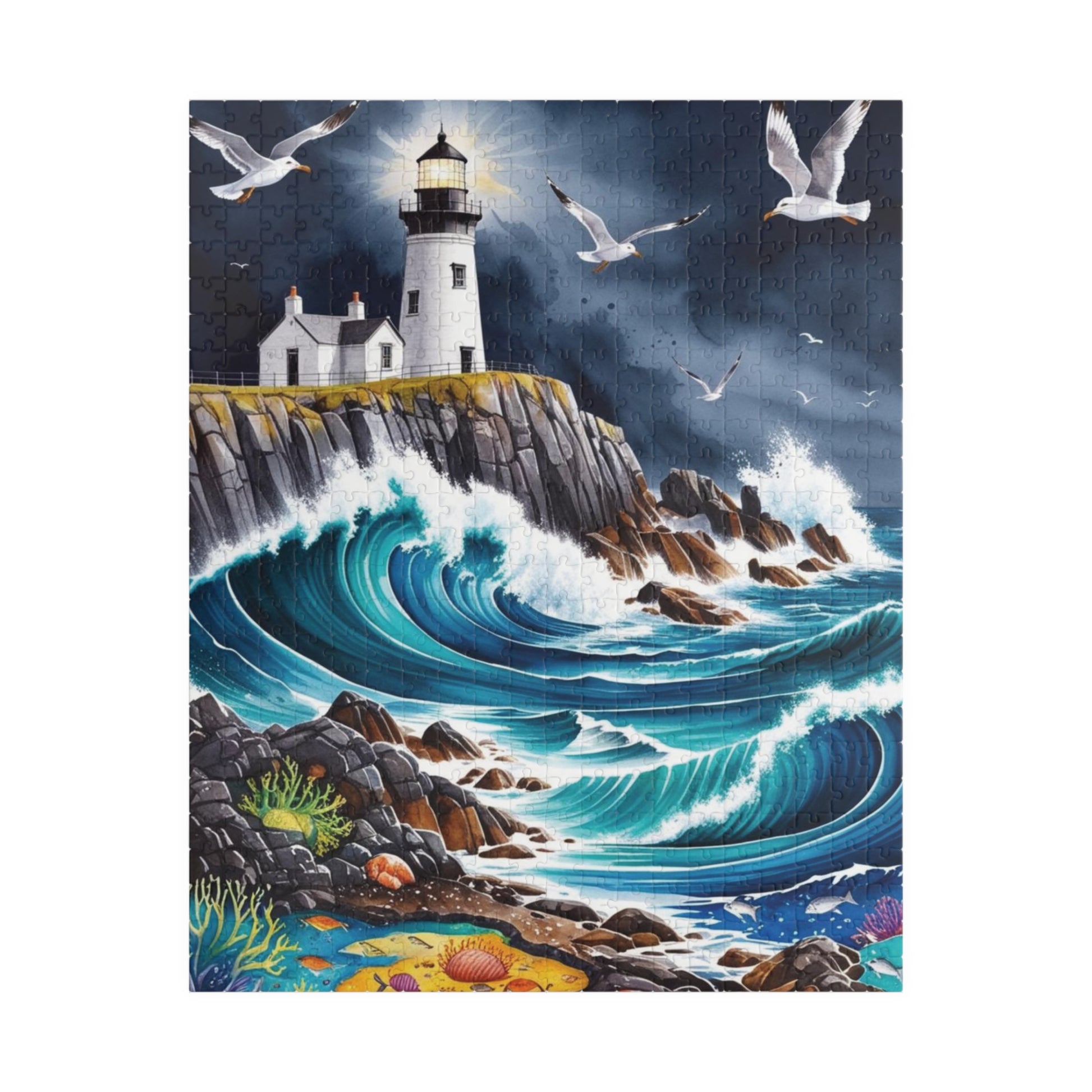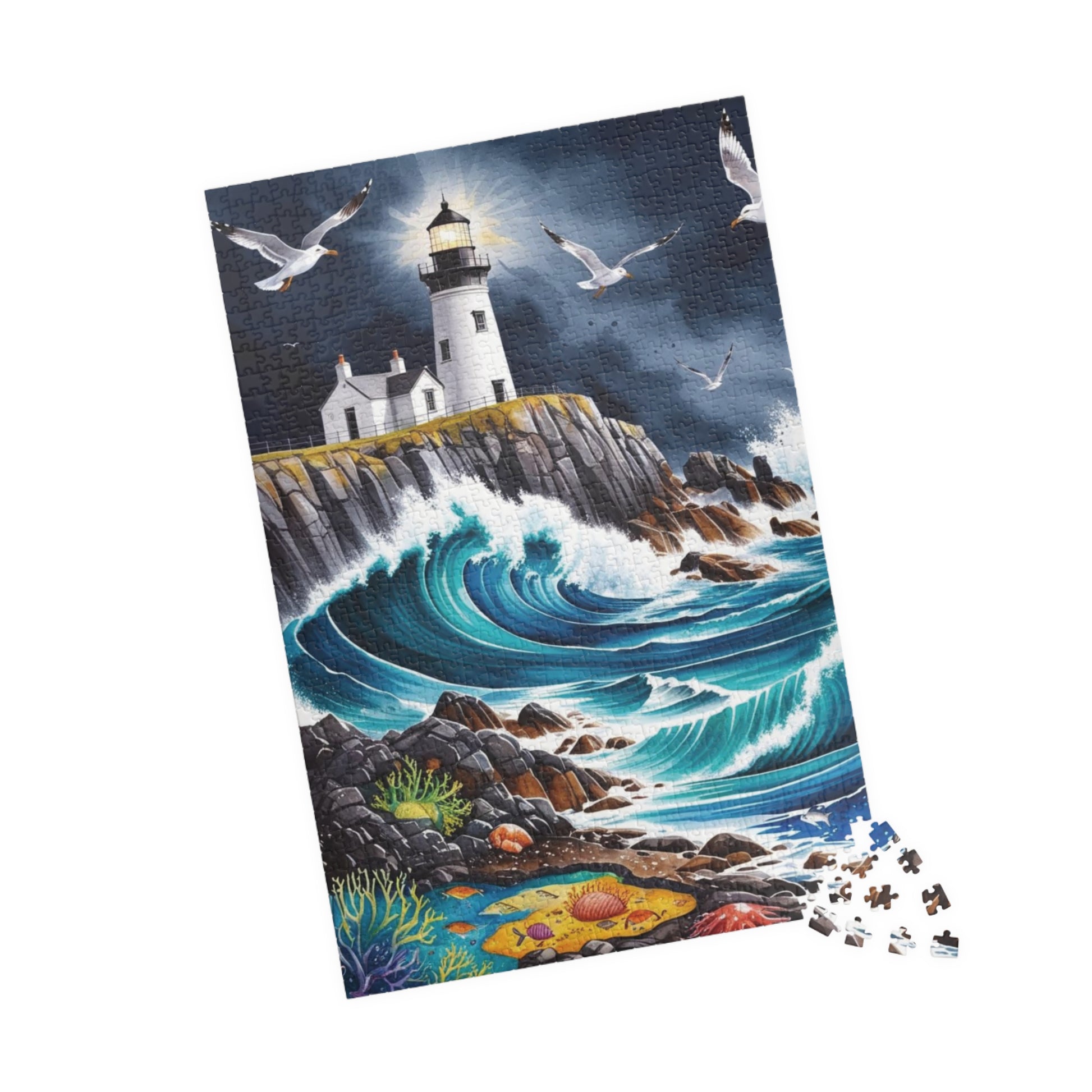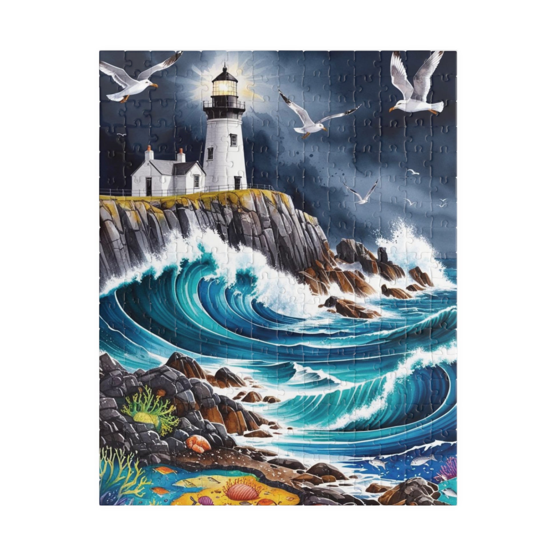 Immerse yourself in the beauty of a dramatic rocky coastline with crashing waves and a lighthouse perched on a cliff with this landscape sea puzzle. Perfect for puzzle enthusiasts and nature lovers, this puzzle evokes a sense of serenity and adventure. Ideal for leisurely weekends or a relaxing evening at home, this puzzle is a great way to unwind and destress. Makes a wonderful gift for puzzle lovers and those who appreciate scenic landscapes. Great for birthdays, holidays, and special occasions.