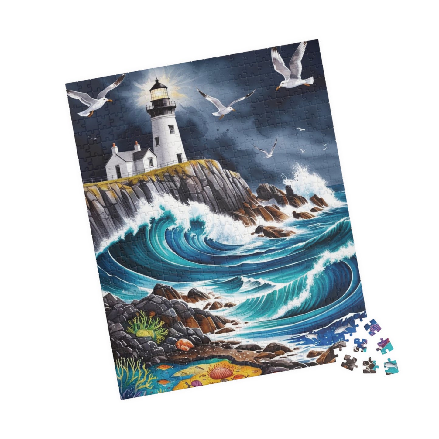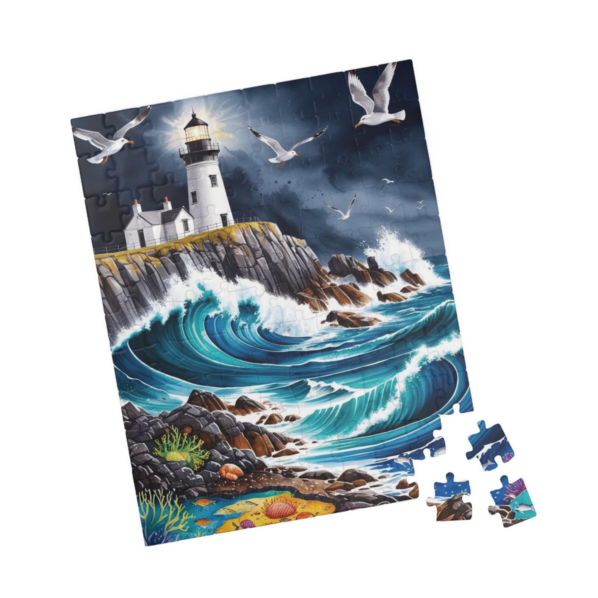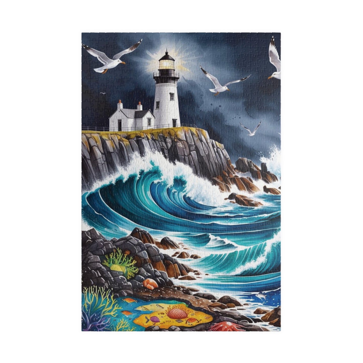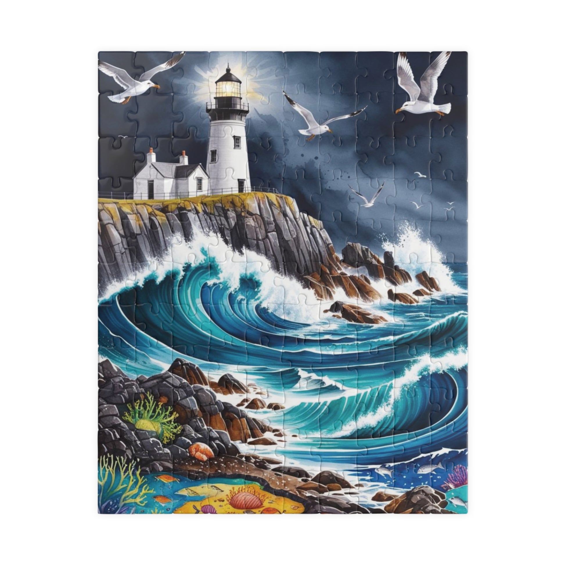 Immerse yourself in the beauty of a dramatic rocky coastline with crashing waves and a lighthouse perched on a cliff with this landscape sea puzzle. Perfect for puzzle enthusiasts and nature lovers, this puzzle evokes a sense of serenity and adventure. Ideal for leisurely weekends or a relaxing evening at home, this puzzle is a great way to unwind and destress. Makes a wonderful gift for puzzle lovers and those who appreciate scenic landscapes. Great for birthdays, holidays, and special occasions.