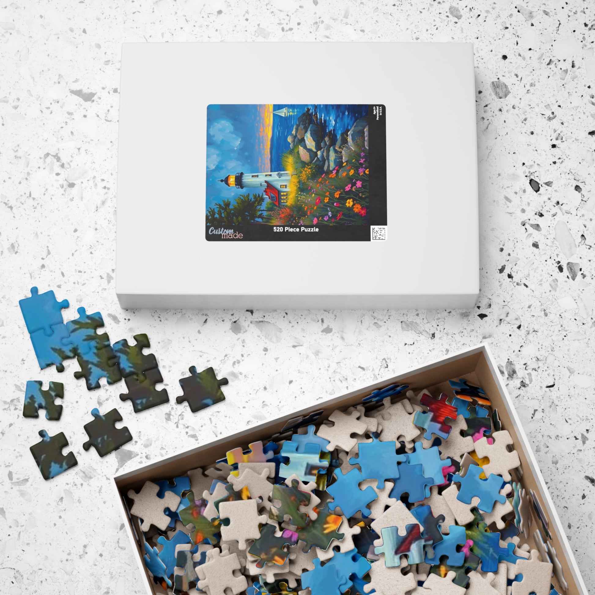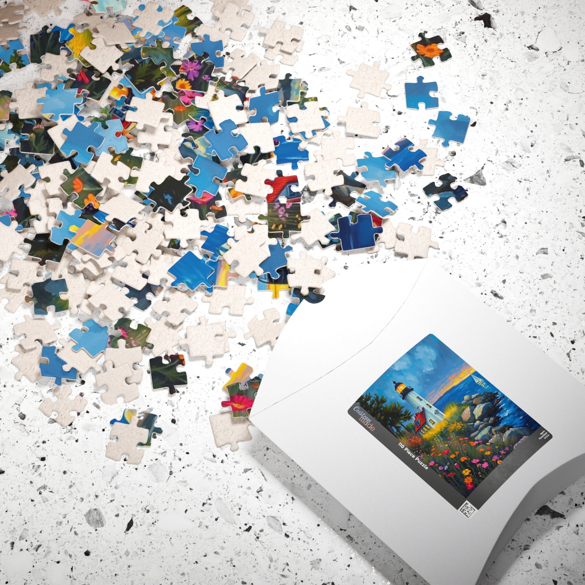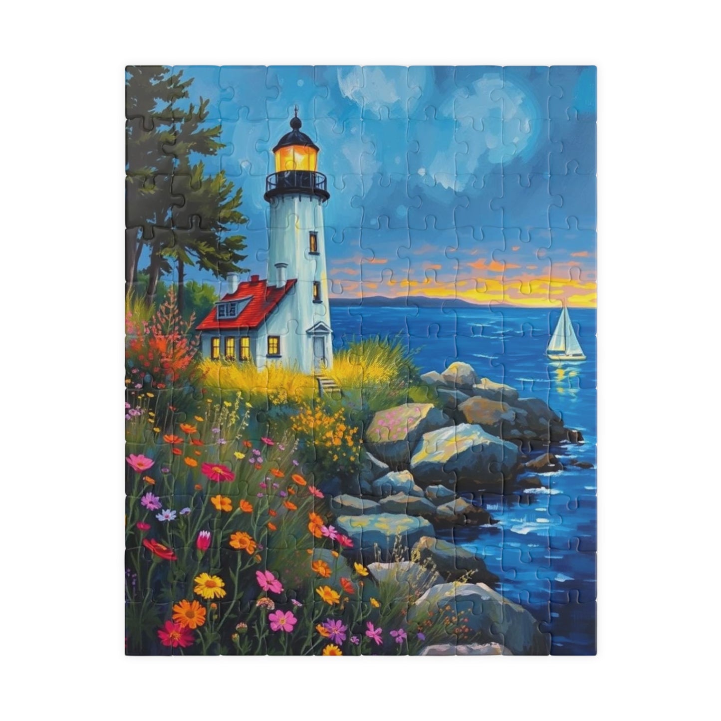 Discover the charm of the coast with Seabreeze Beacon, a beautifully detailed 110-to-1014-piece jigsaw puzzle featuring a classic lighthouse nestled among blooming wildflowers. In the distance, sailboats glide across calm blue waters under a soft, cloud-speckled sky. This puzzle captures the peaceful beauty of coastal life with vibrant colors and intricate scenery. Whether you're a fan of nautical puzzles, love lighthouses, or enjoy scenic landscapes, this puzzle offers a satisfying challenge and a frame-worthy finish. Ideal for solo puzzling or a weekend project with friends or family.