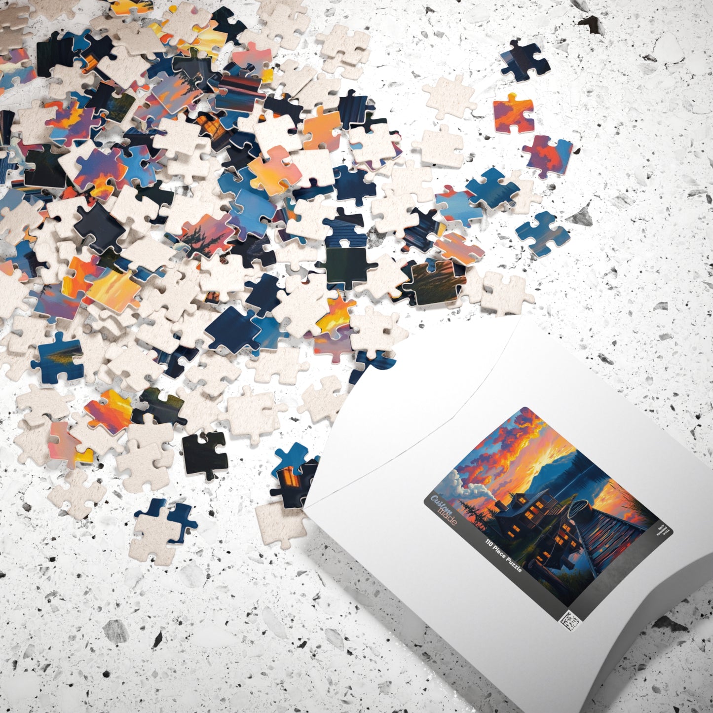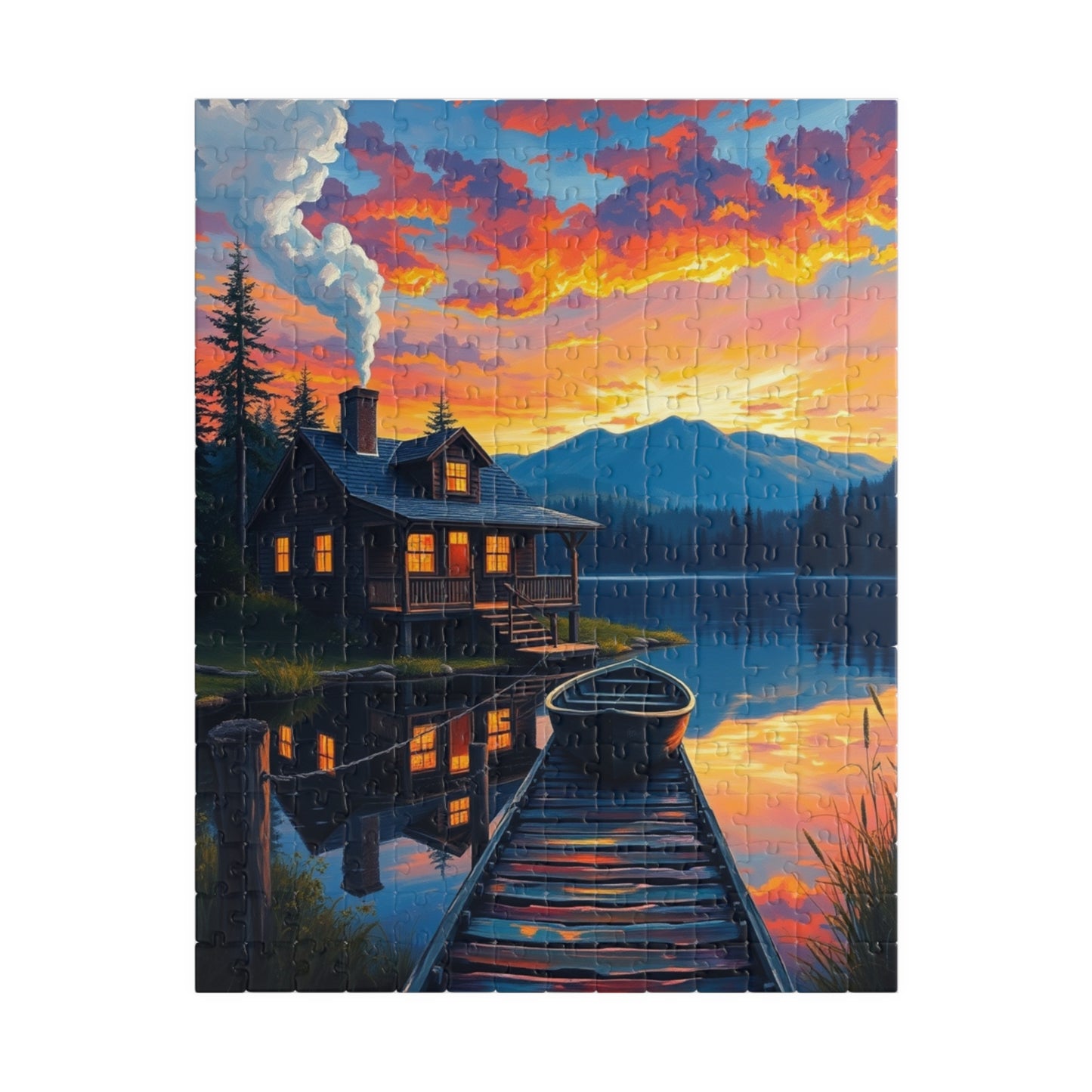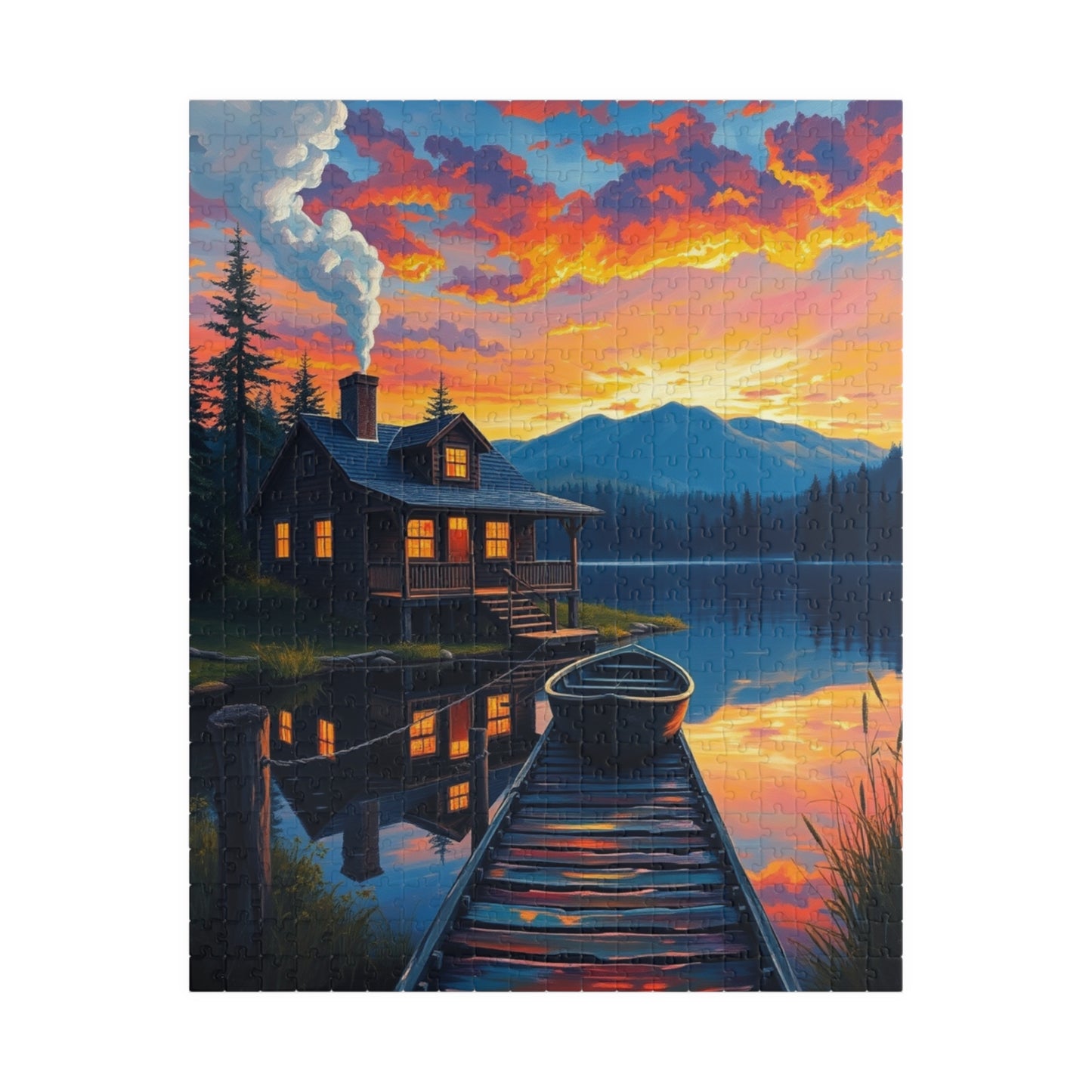 Serene Cabin Sunset Puzzle, Nature Jigsaw for Family Game Night, Gift for Nature Lovers, Cozy Decor Activity, Mindfulness