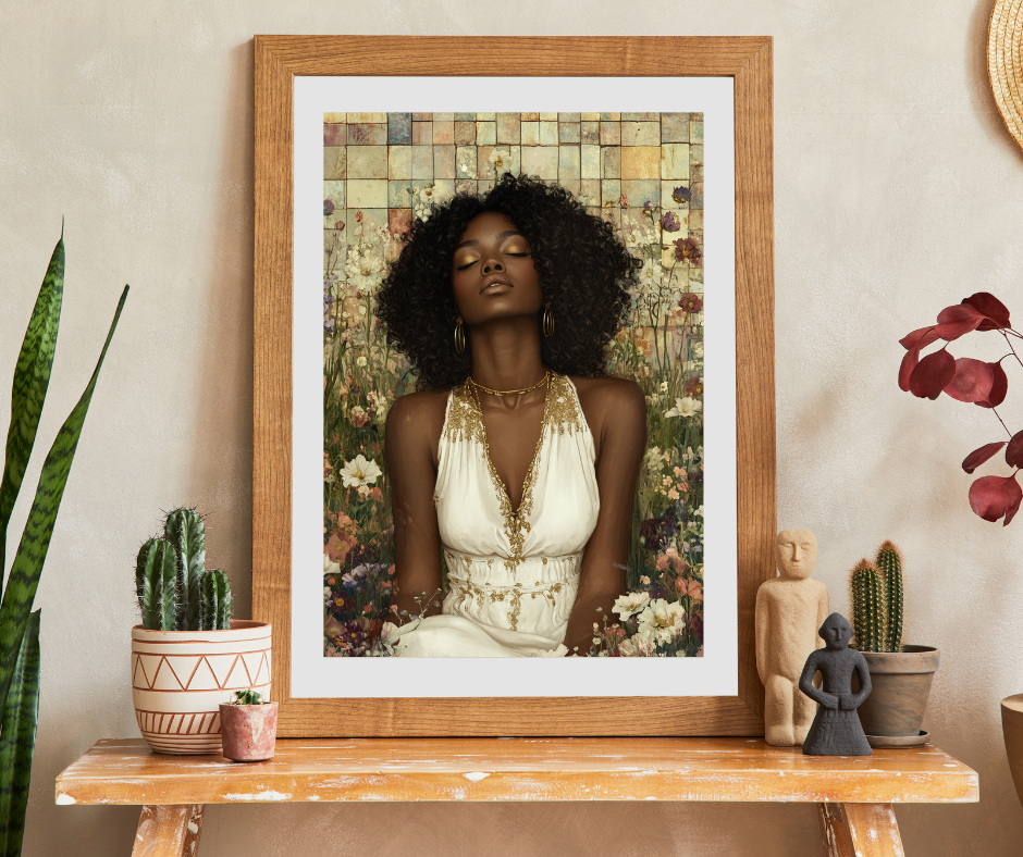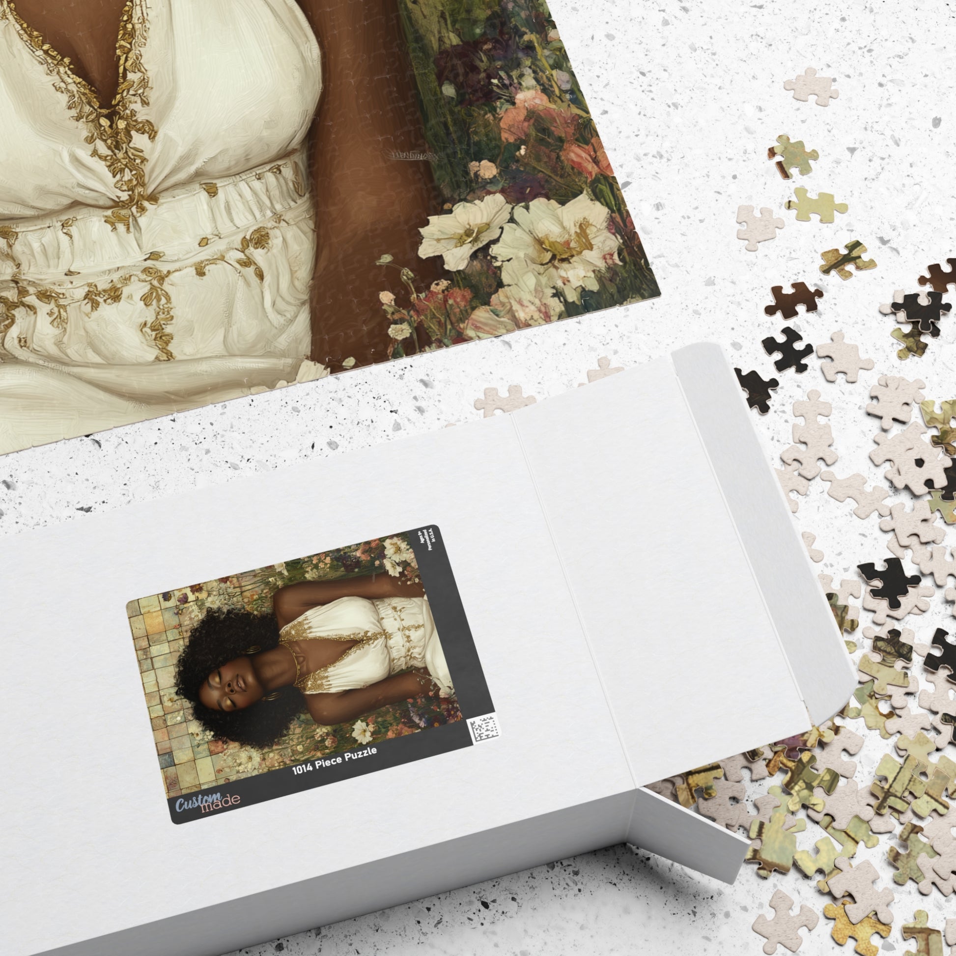 Serene Floral Black Woman Portrait Puzzle | Afrocentric Jigsaw Game