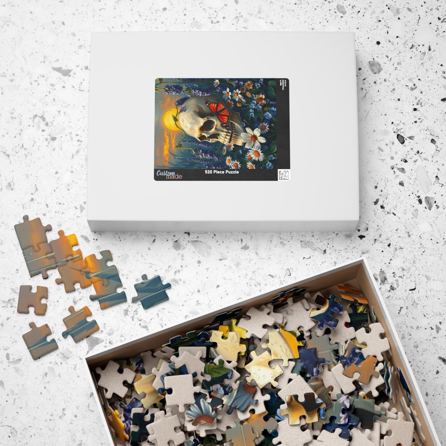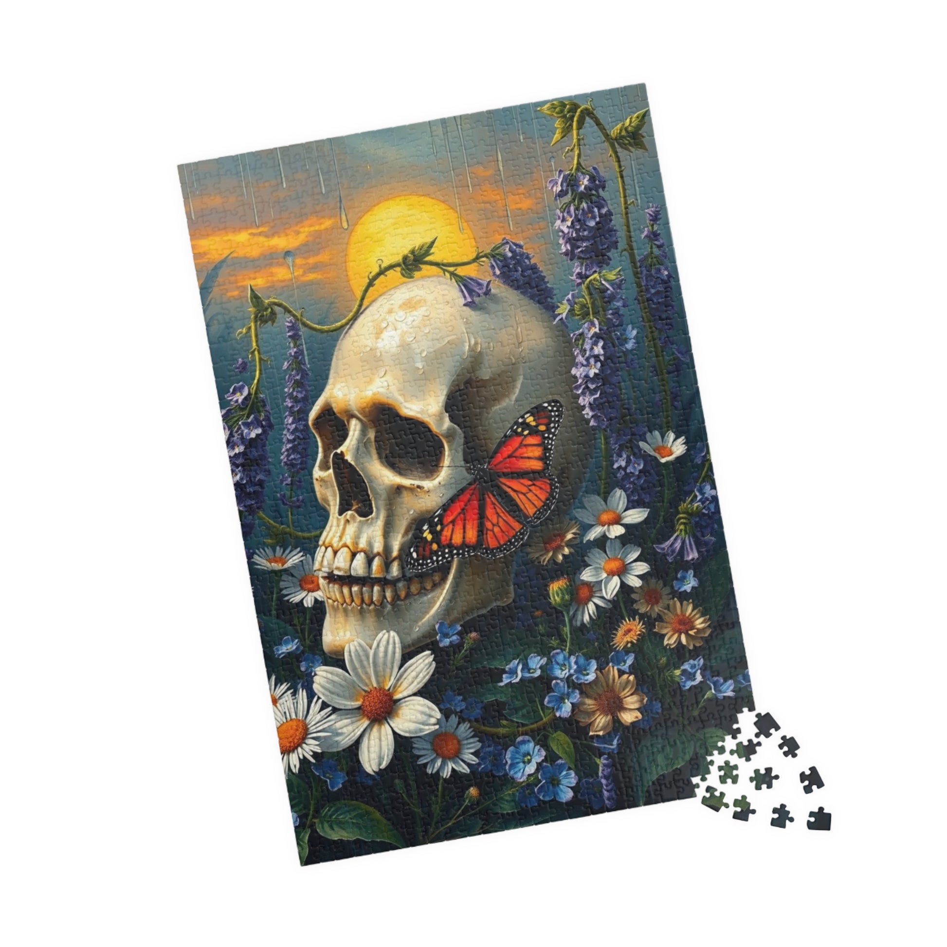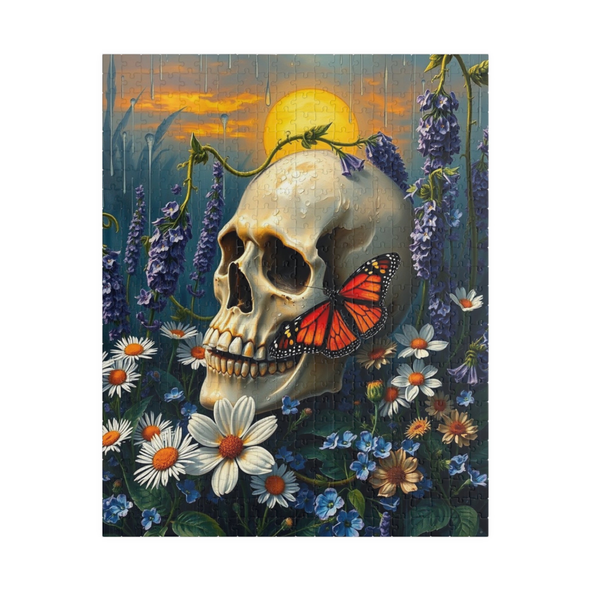 Skull and Butterfly Puzzle, Artistic Dark Art Jigsaw Puzzle for Adults, Unique Gothic Artwork Puzzle Lover Gift, Relaxing Fun Solo Activity