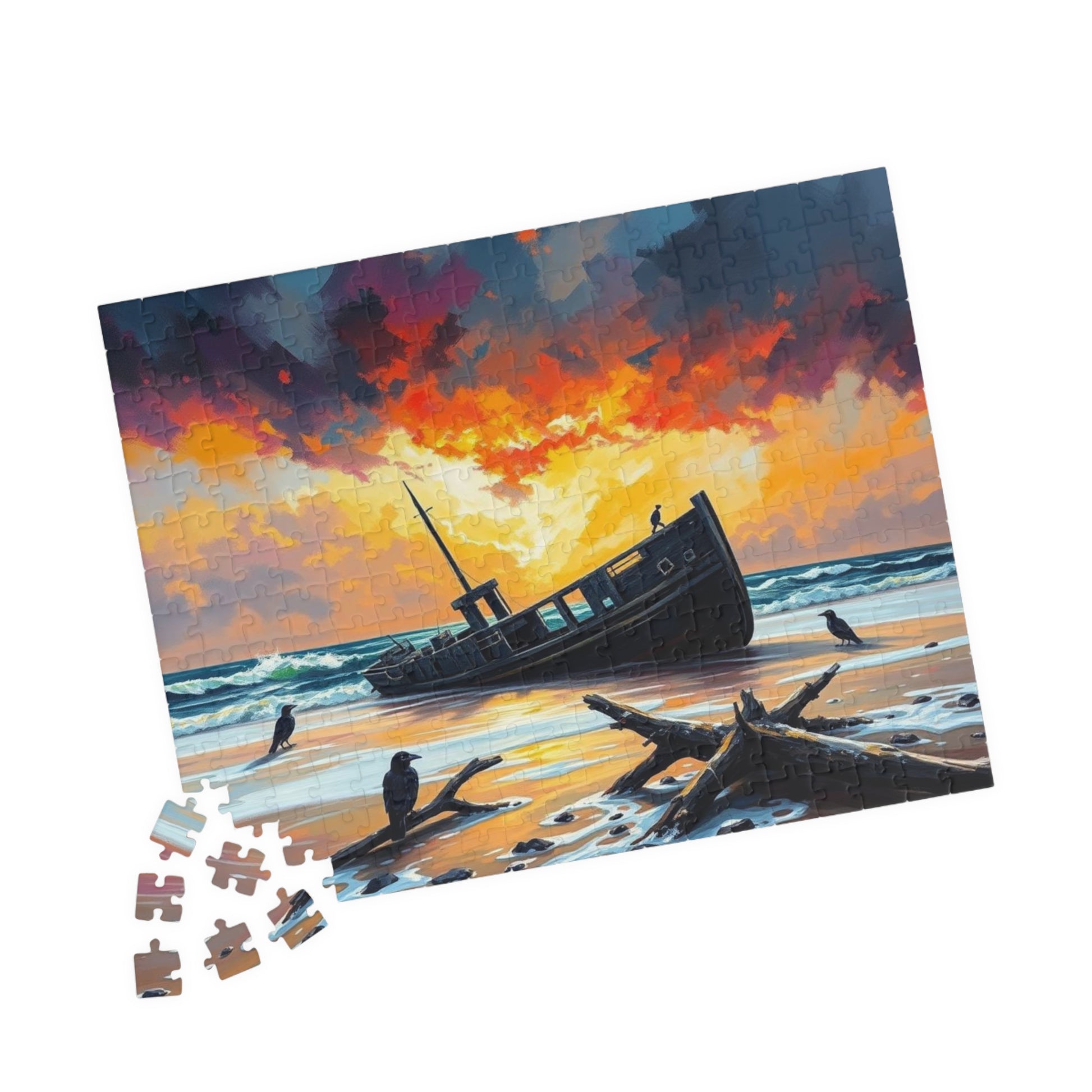 Solitude at the Shore Jigsaw Puzzle, Sunset Landscape Shipwreck, Gothic Puzzle, Dark Art Puzzle, Solo Fun, Game Night, Gift for Puzzle Lover