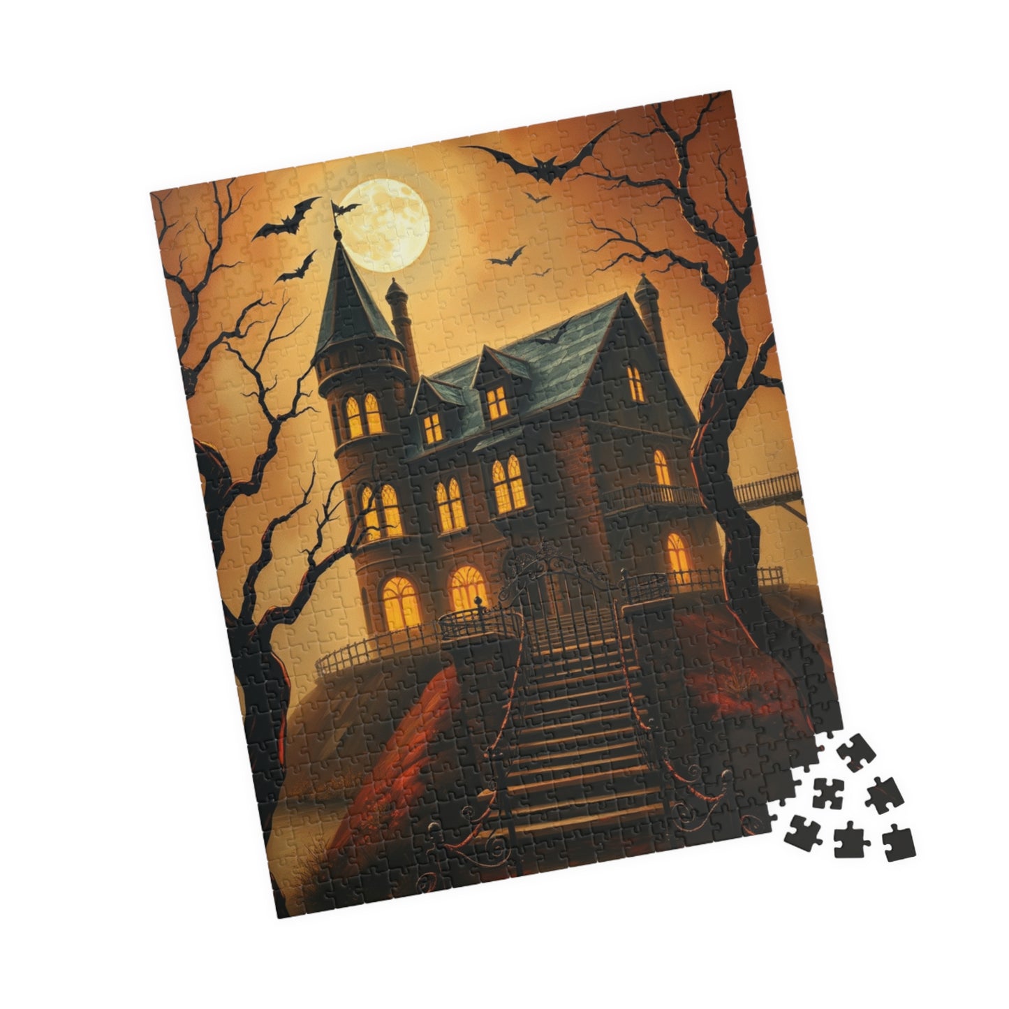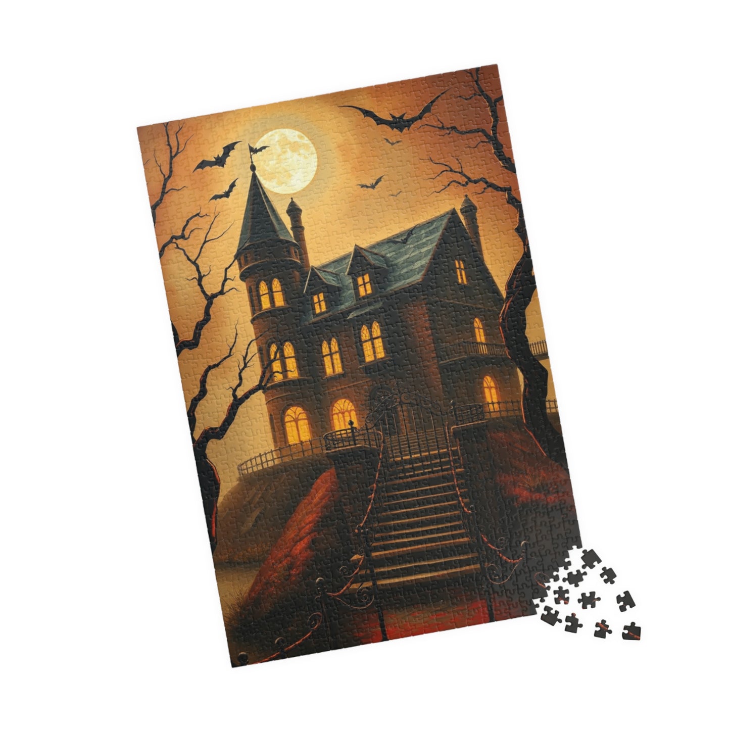 Spooky Haunted House Puzzle, Halloween Design, Family Game Night or Solo Fun, Perfect Gift for Puzzle Lover, 110 252 520 1014-piece, Mindful