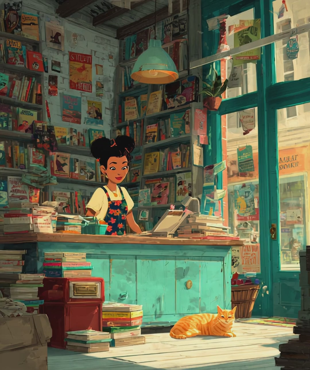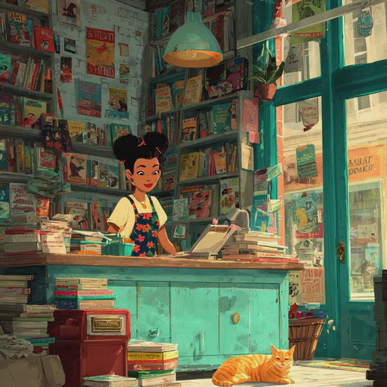 The Bookstore Cat - Whimsical Cartoon Cozy Bookshop Jigsaw Puzzle, Family Activity, Cat Lovers Gift, Perfect for Game Night