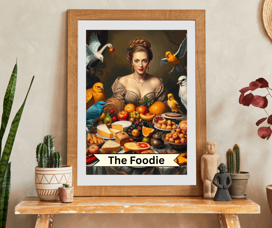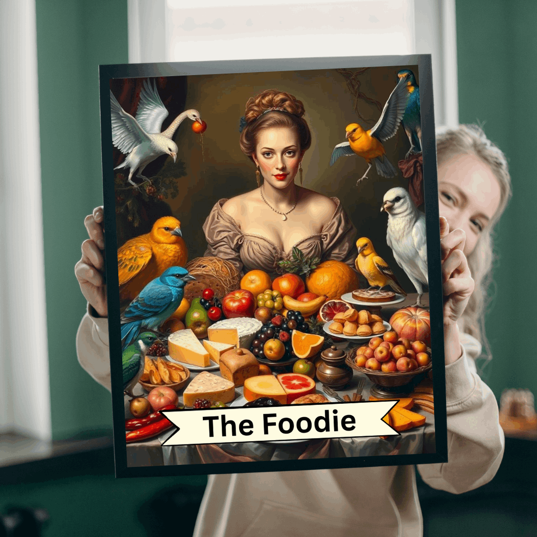 Indulge your senses and imagination with The Foodie, a tarot-inspired jigsaw puzzle that brings a sumptuous scene to life. A refined Victorian woman sits at a table overflowing with exotic delights — vibrant fruits, rich cheeses, golden breads, and decadent desserts — each item glowing with a soft, magical light. Curious animals and playful birds reach toward the offerings, adding whimsy and charm to this enchanted tableau. Every piece invites you to explore layers of detail and color, turning puzzling into a journey of discovery. Perfect for lovers of mystical art, tarot aesthetics, and intricate jigsaw challenges, The Foodie is a feast for the imagination as well as the mind.