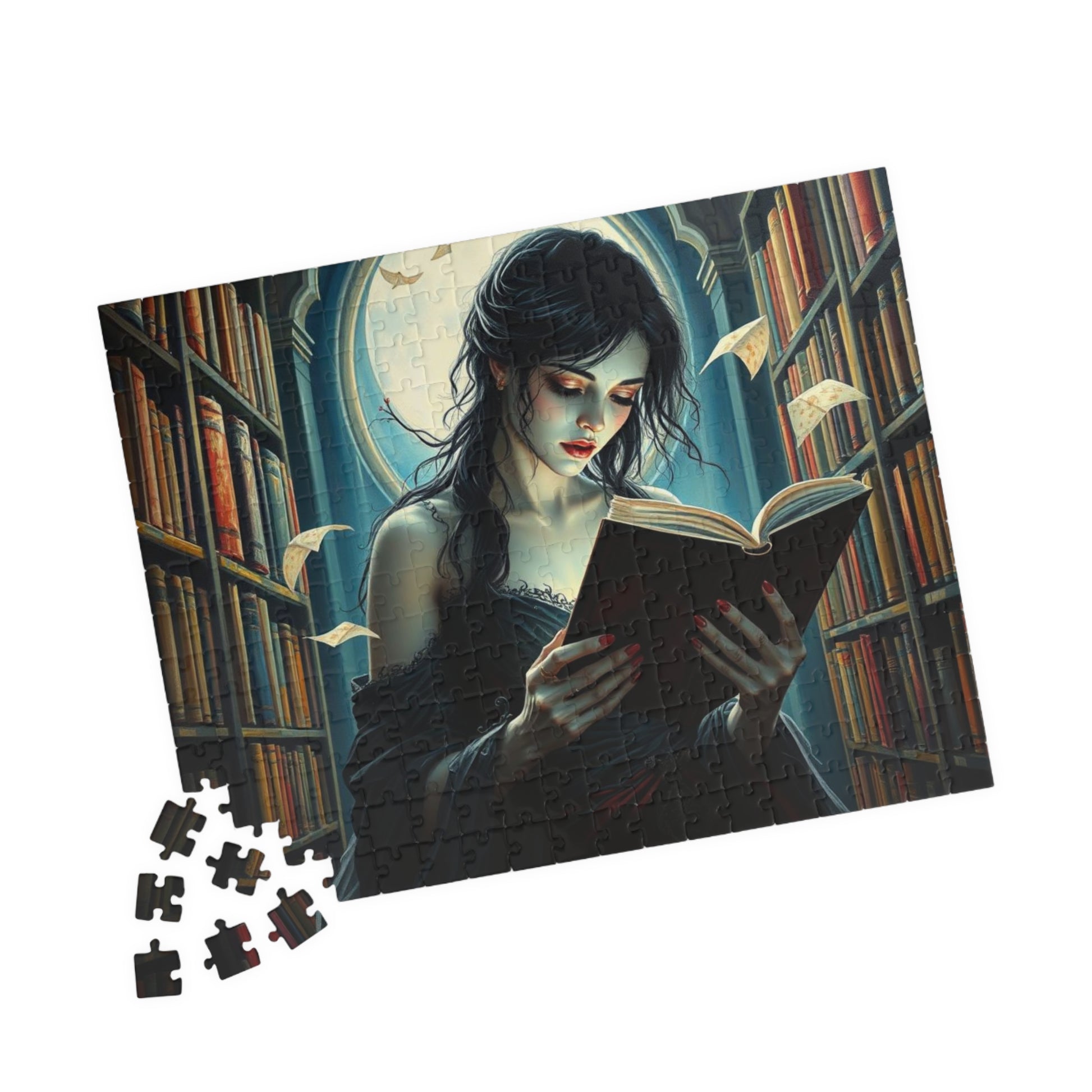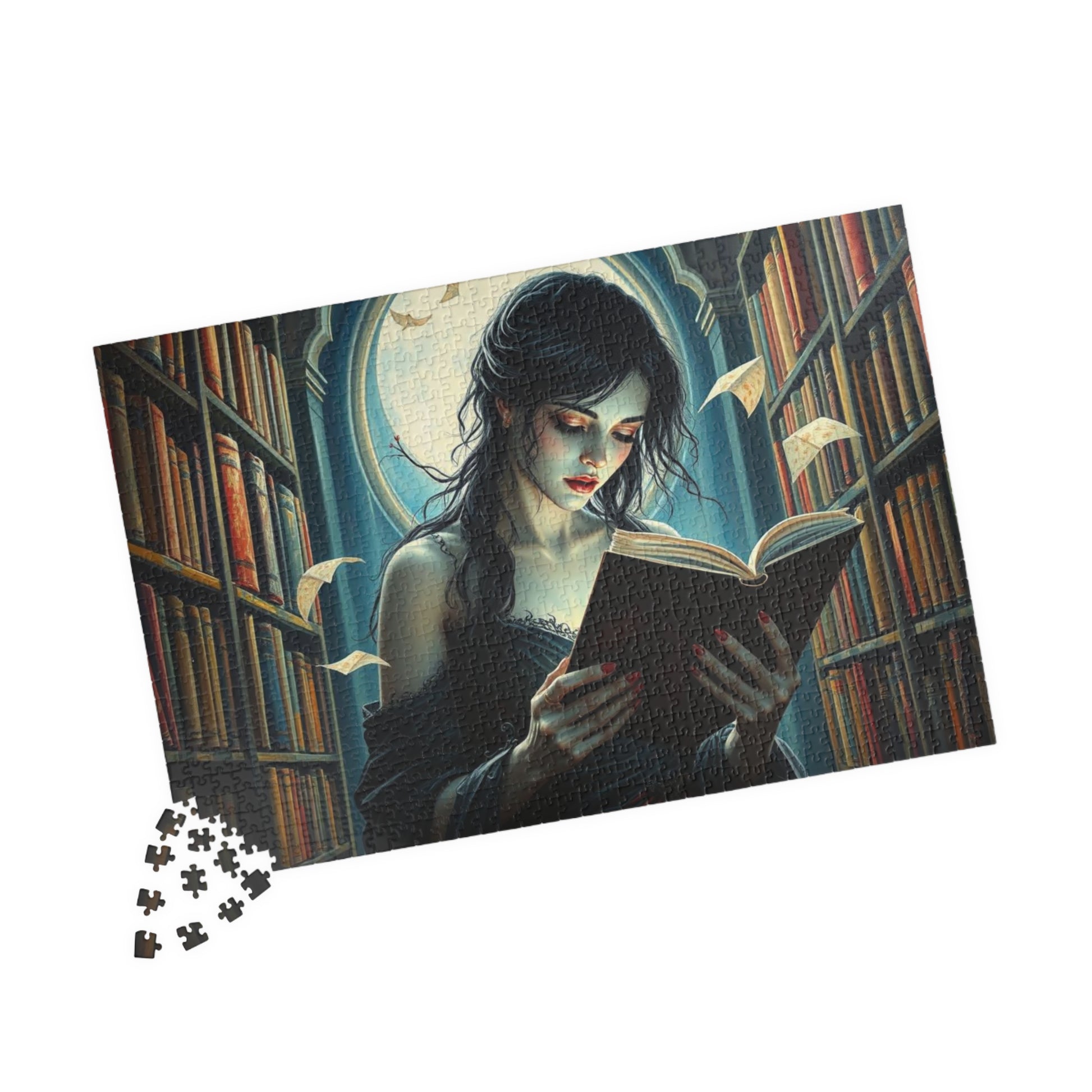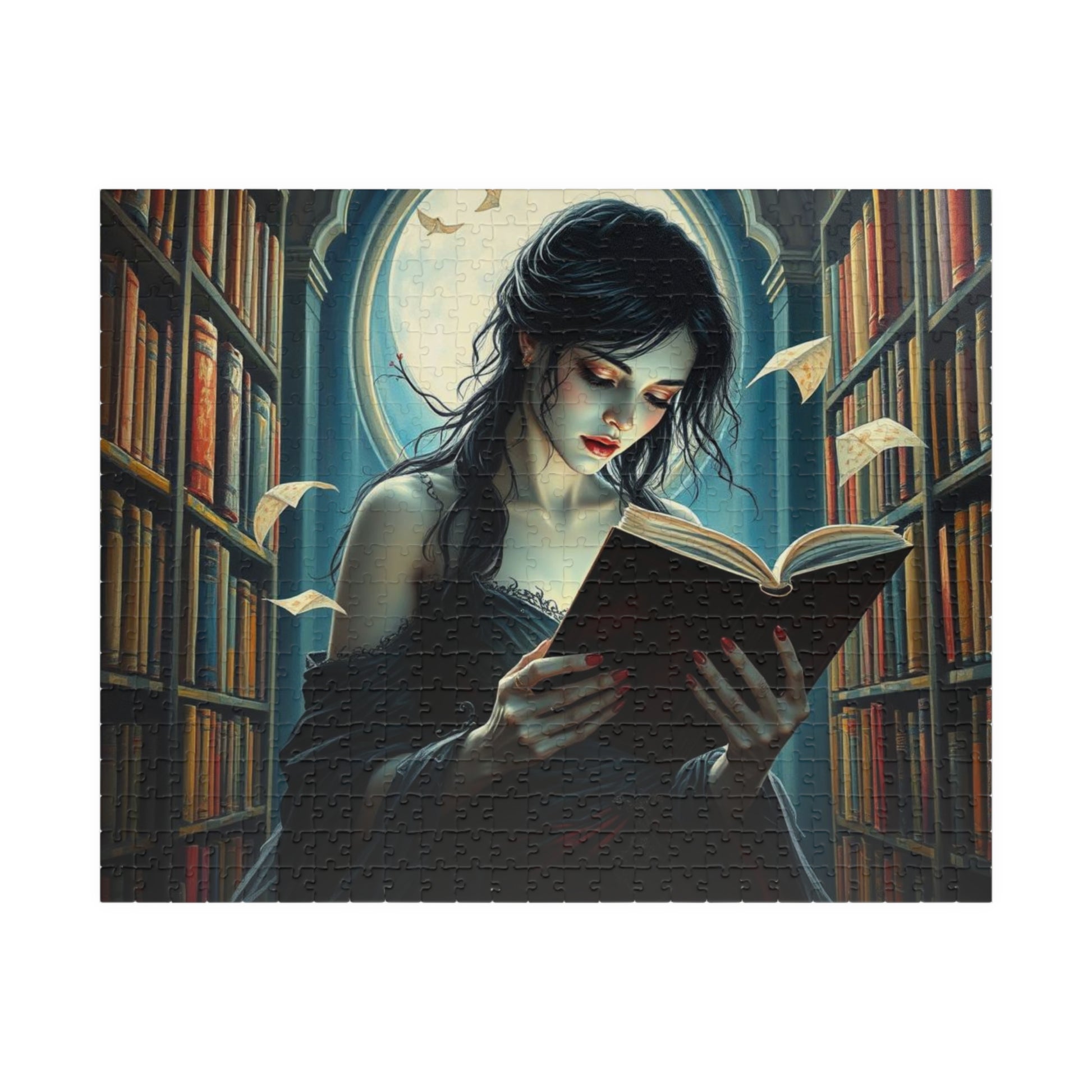 The Poet's Muse Jigsaw Puzzle, Spectral Woman Reading in Library, Gothic Puzzle, Dark Fantasy Puzzle, Mystical Book Lover Gift for Friend