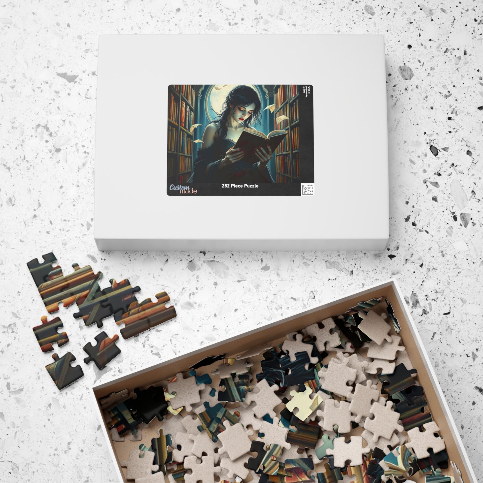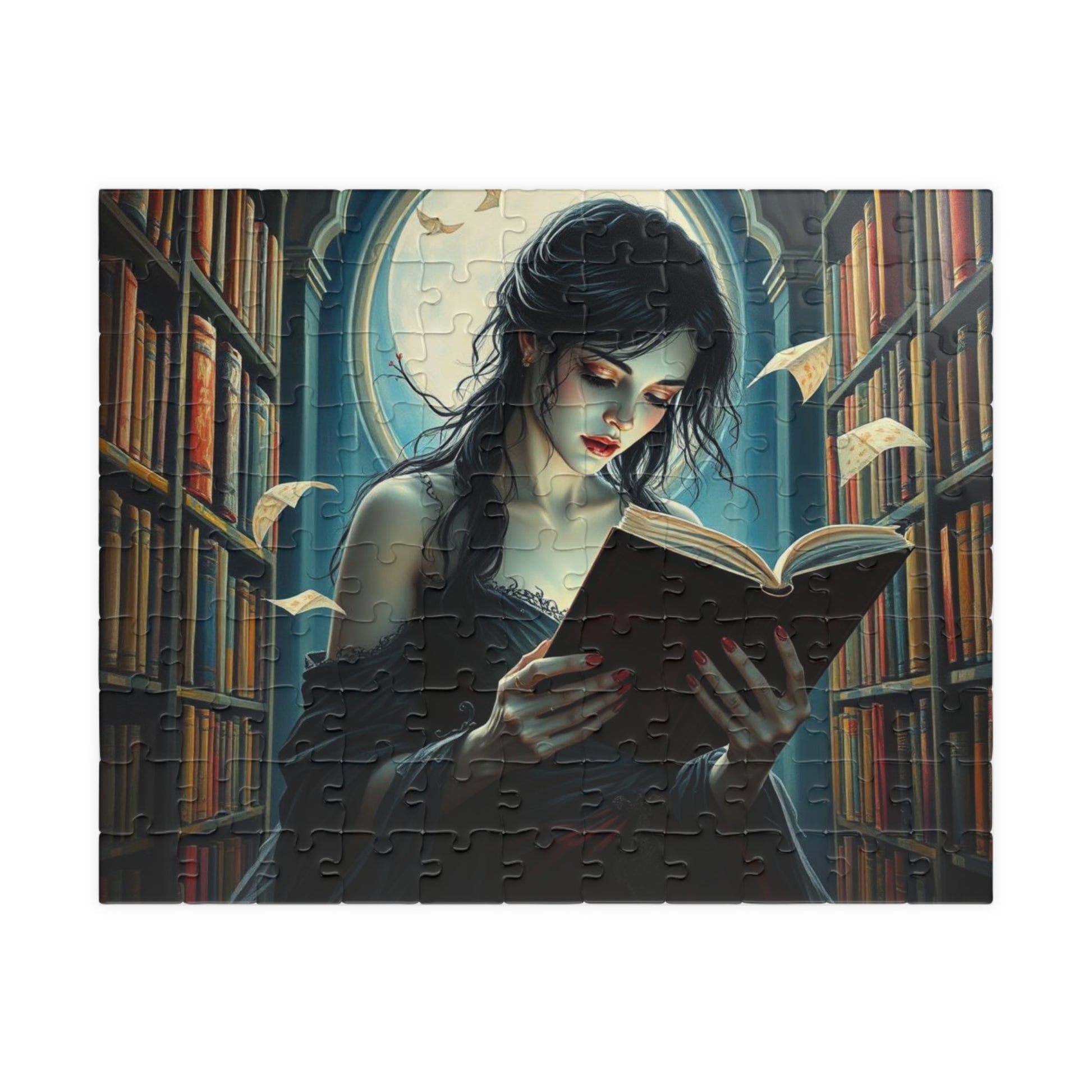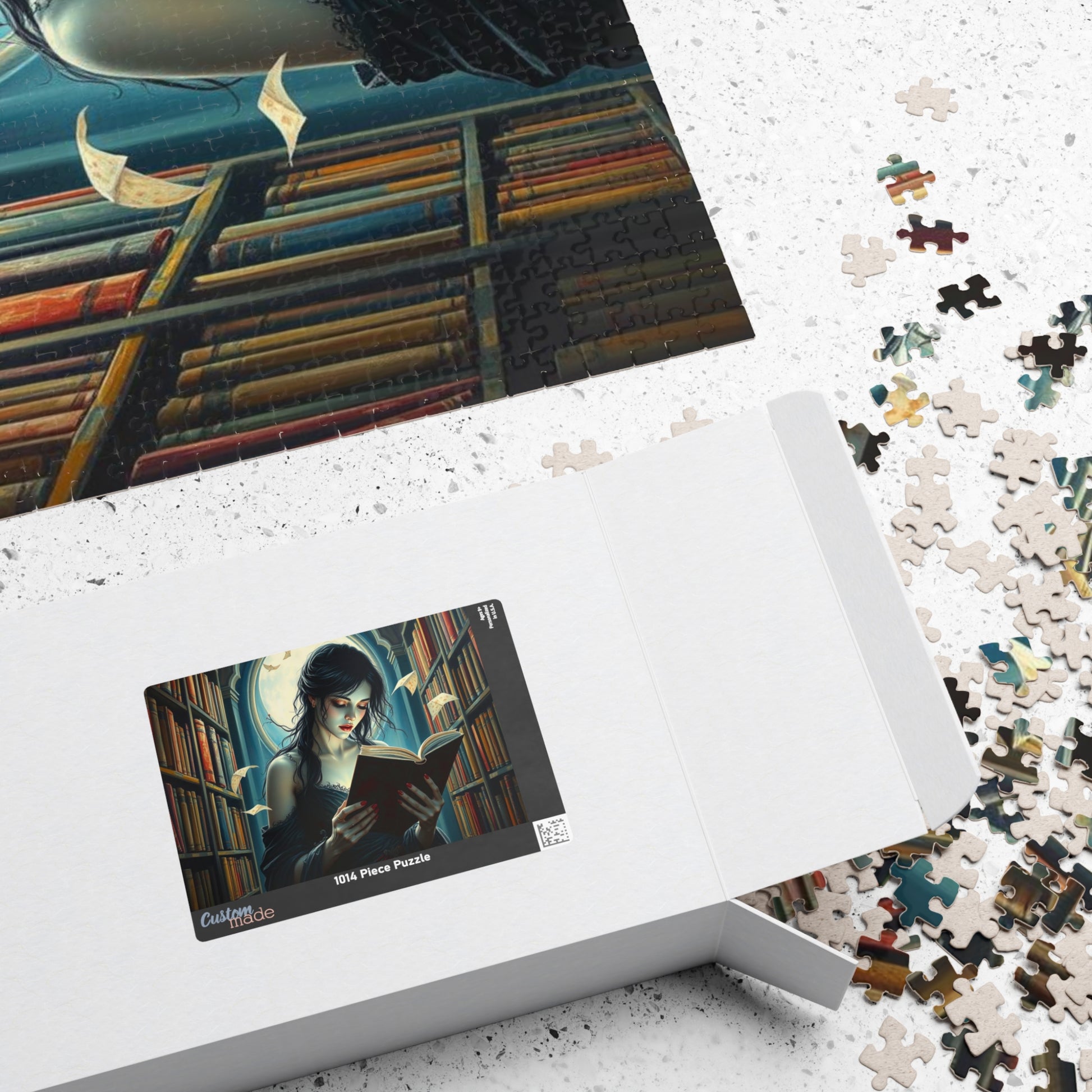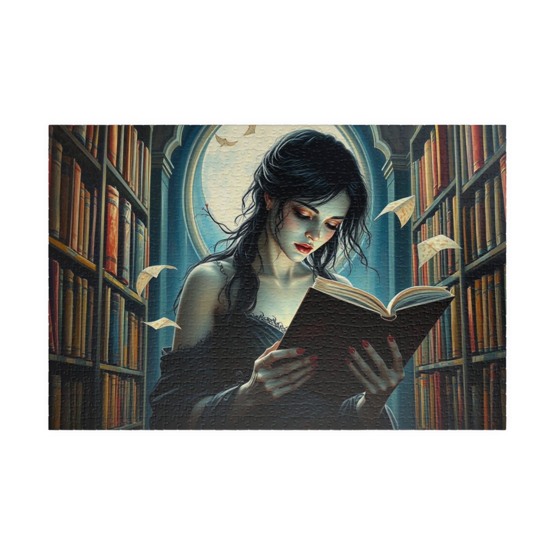 The Poet's Muse Jigsaw Puzzle, Spectral Woman Reading in Library, Gothic Puzzle, Dark Fantasy Puzzle, Mystical Book Lover Gift for Friend