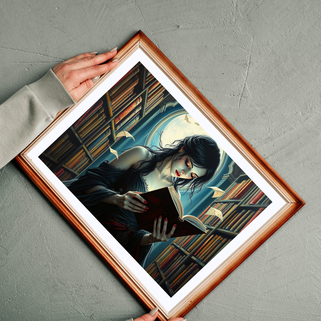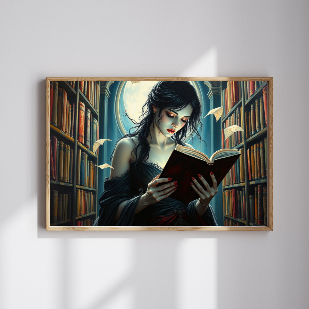 Immerse yourself in the gothic beauty and melancholy of 'The Poet’s Muse' puzzle, featuring a spectral woman reading in a moonlit library. This vibrant puzzle is perfect for those who enjoy a touch of darkness and whimsy in their decor. Ideal for fans of gothic art and literature, this puzzle is a unique gift for birthdays, Halloween, or any occasion.