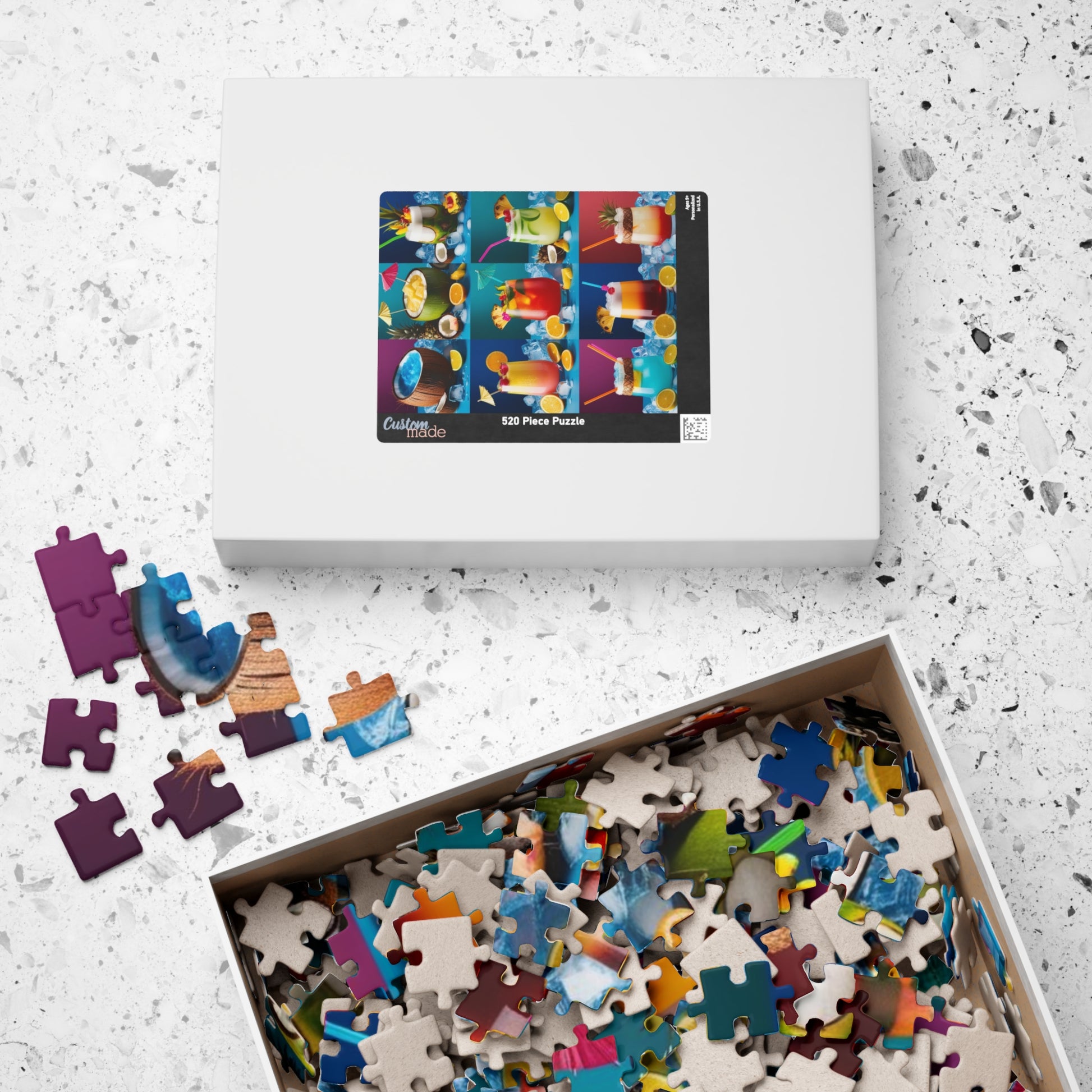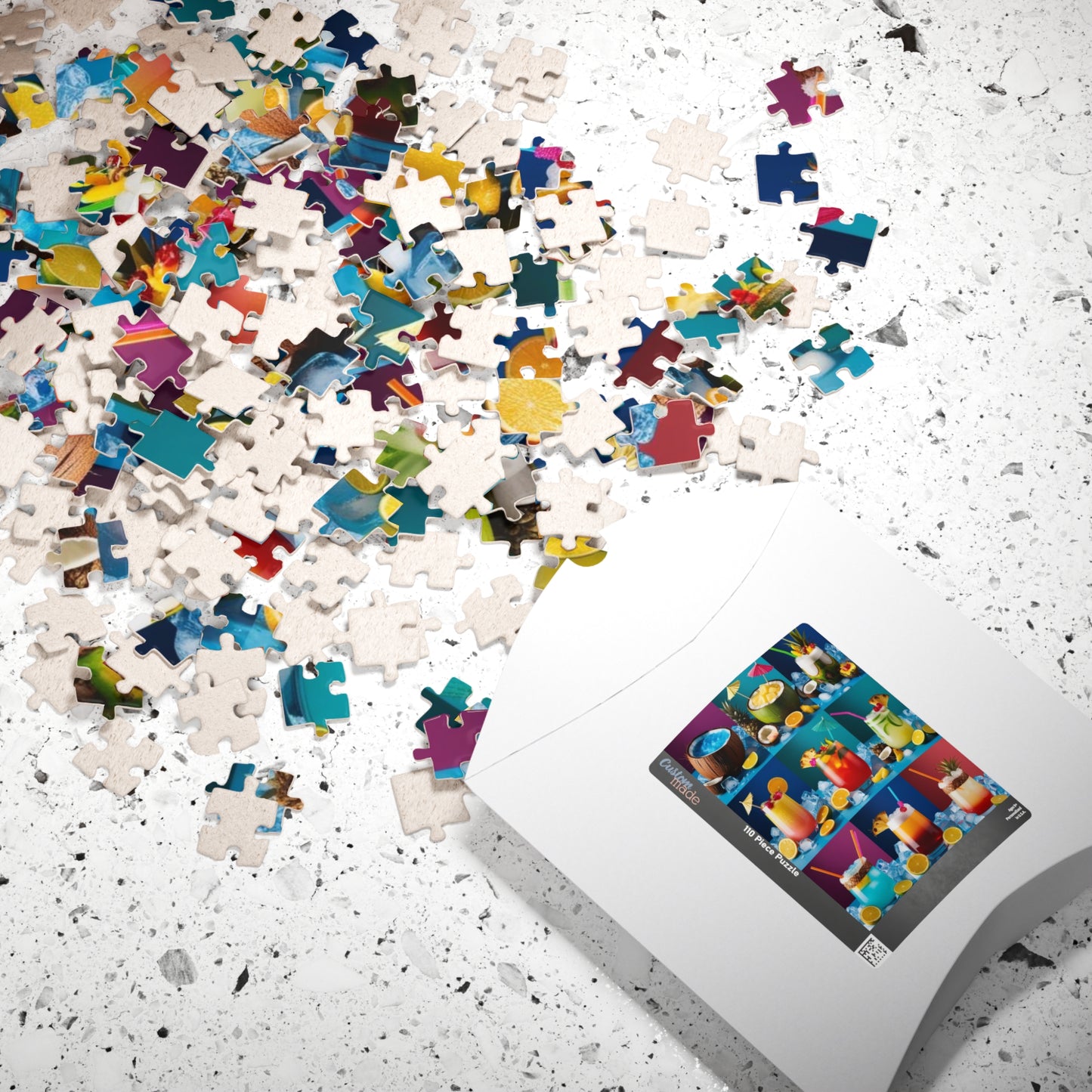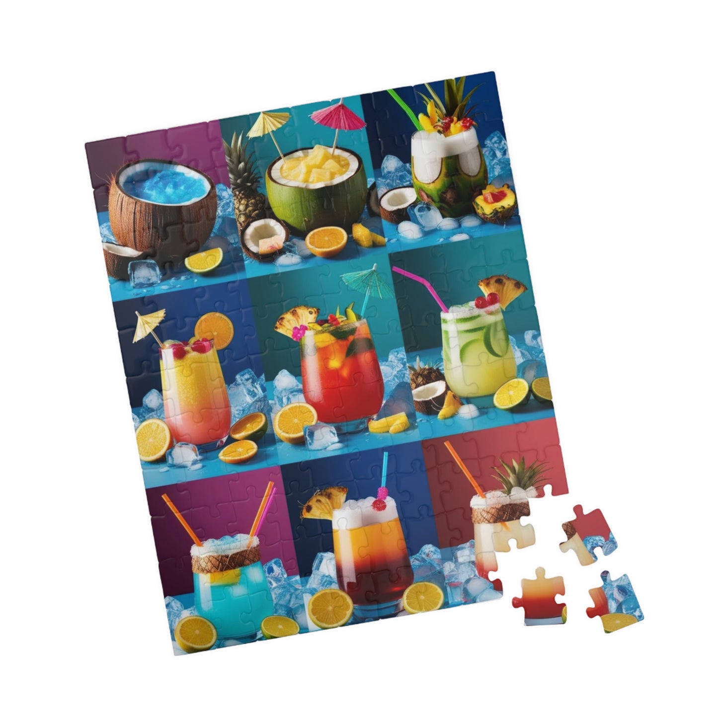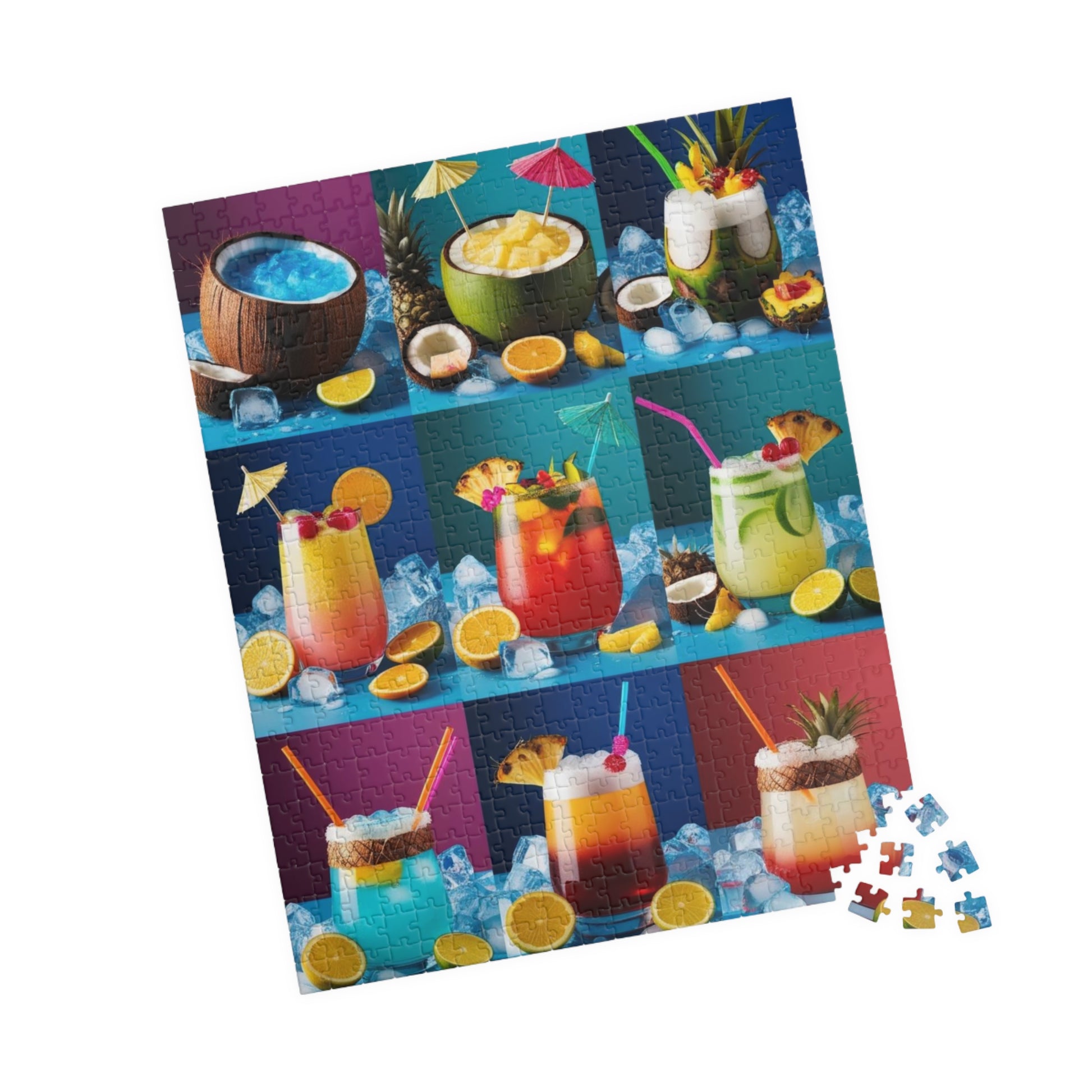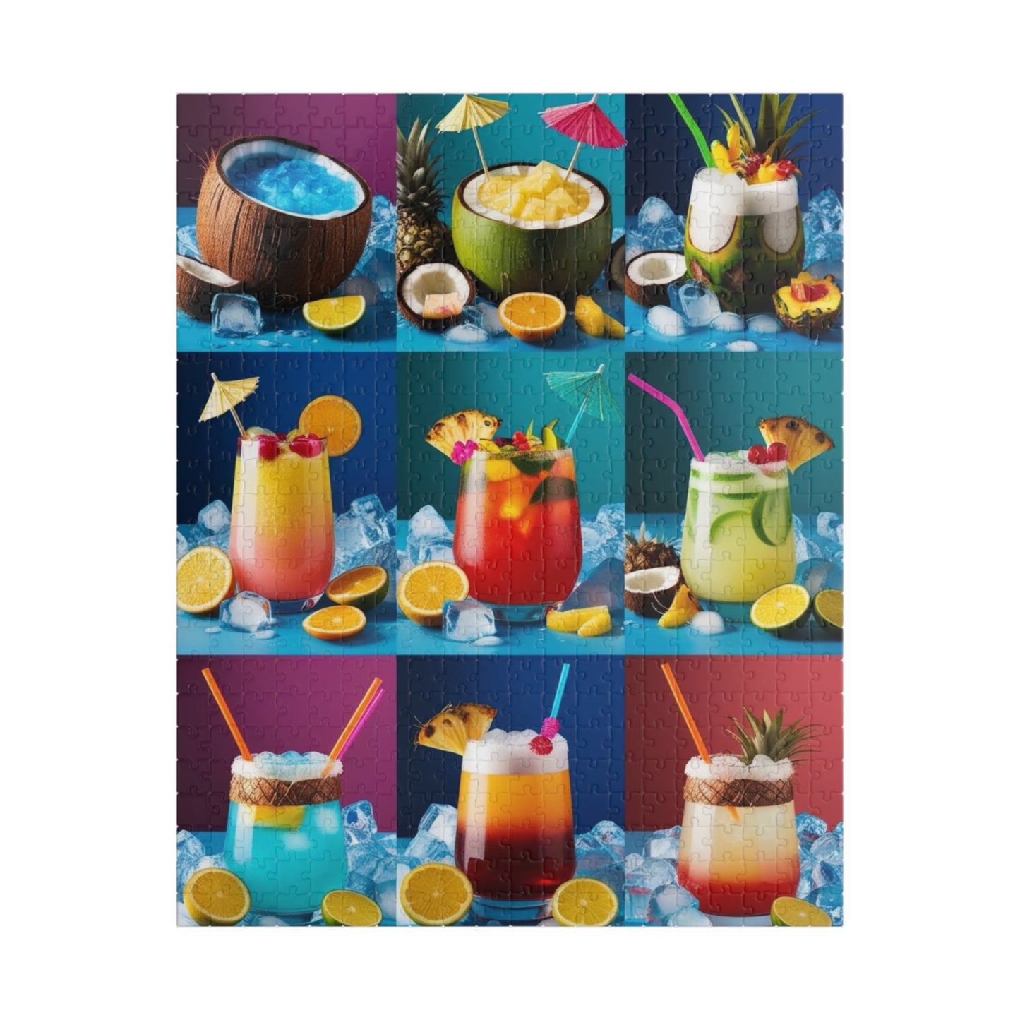 Tropical Drink Collage Puzzle, Relaxing Jigsaw Game for Adults, Solo Fun Quiet Leisure Activity, Colorful Cocktails Gift for Puzzle Lovers