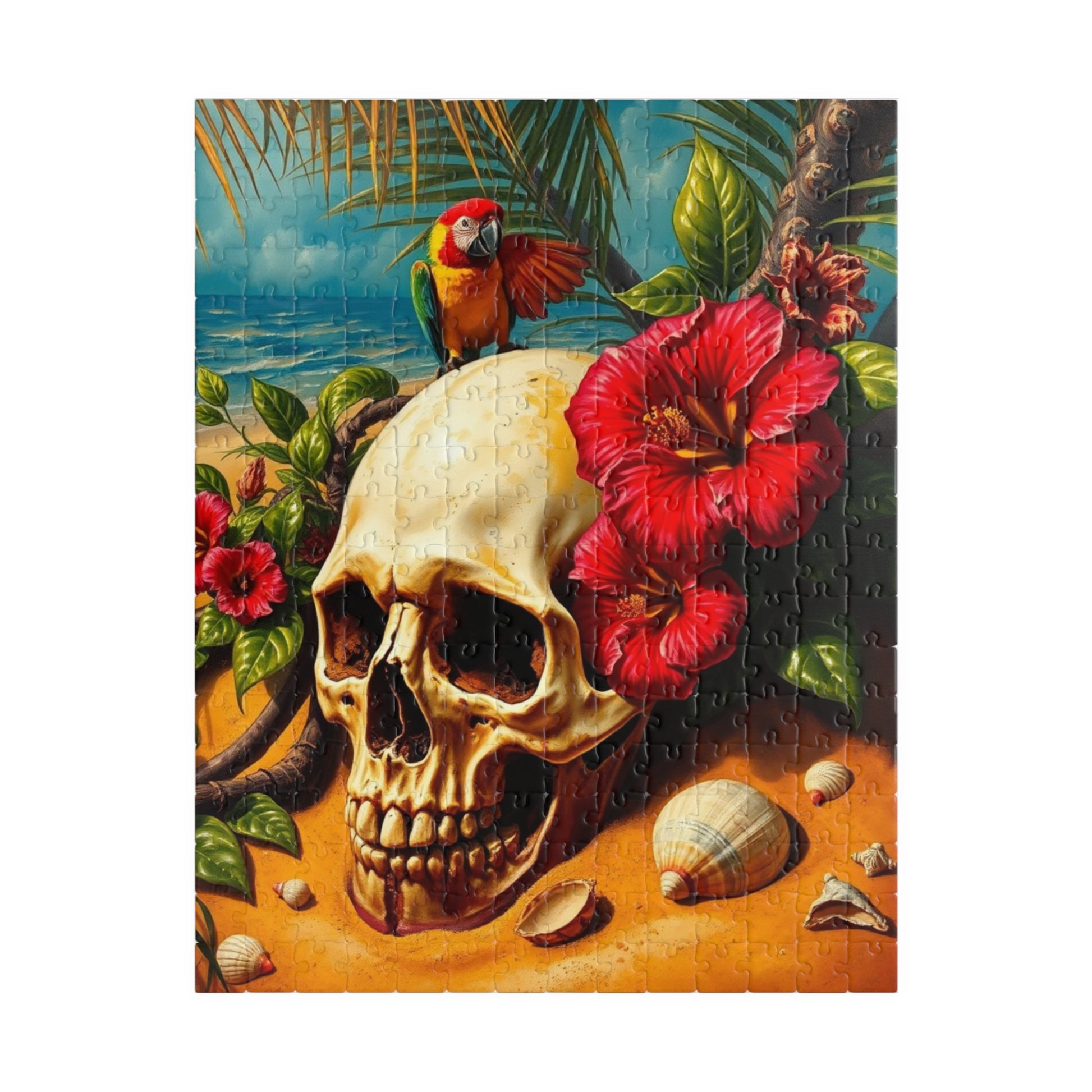 Tropical Skull Artwork Puzzle, 110-1014 Pieces, Beach Scene, Unique Gift for Puzzle Lover, Fun Family Activity, Summer Vibe, Brain Teaser