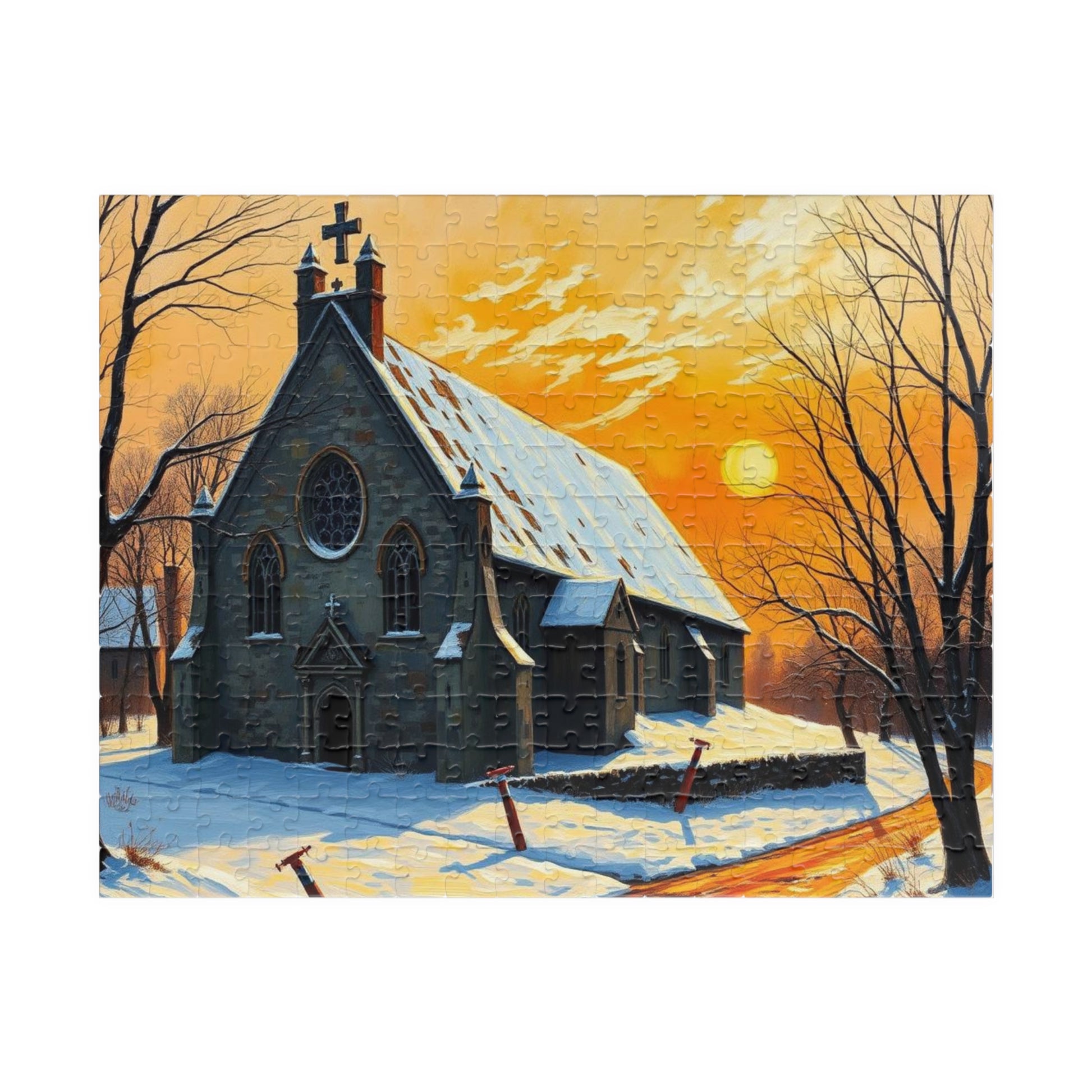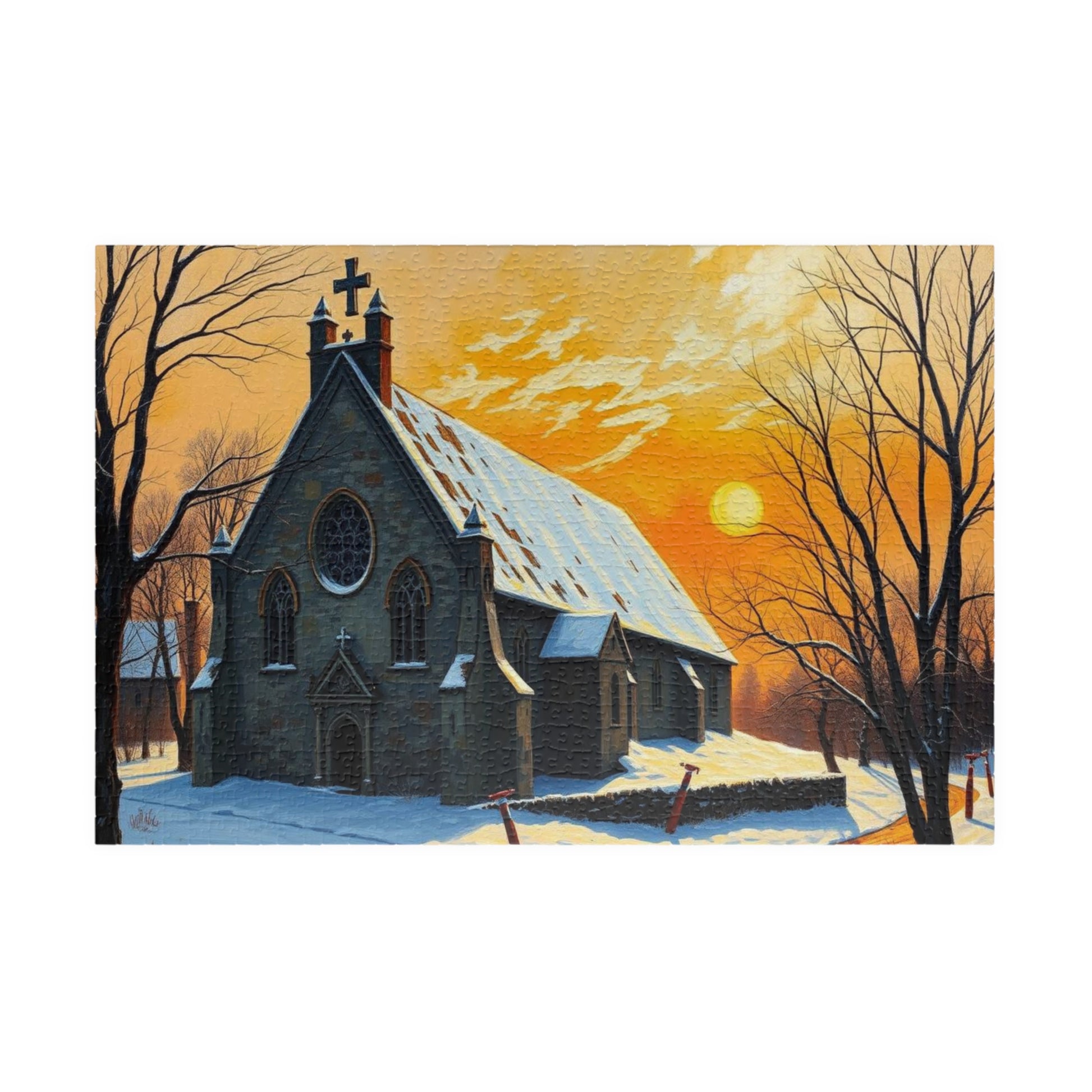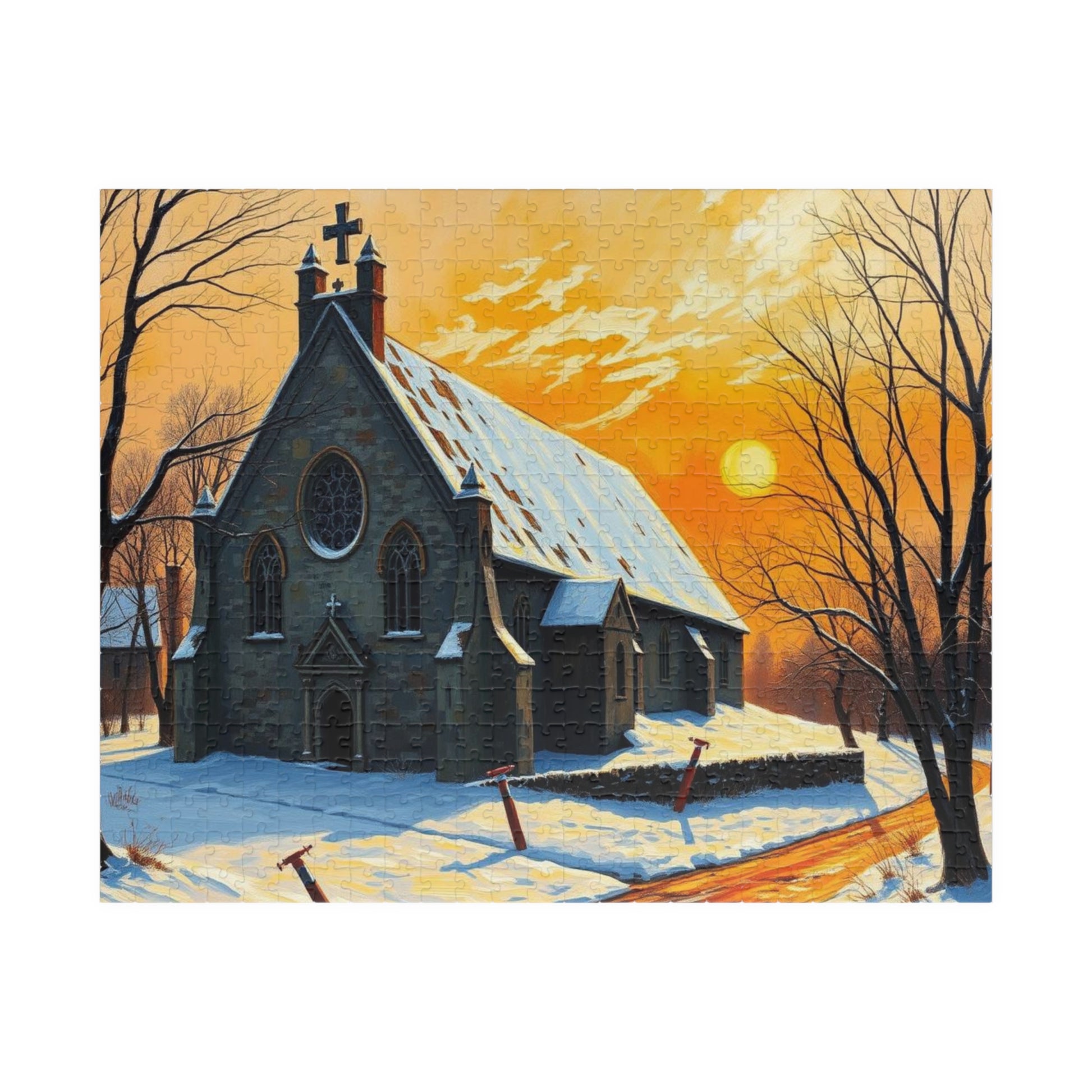 Twilight Cathedral Jigsaw Puzzle - Mystical Winter Chapel, Gothic Art Print, Dark Fantasy Art Gift for Puzzle Enthusiasts, Holiday Activity