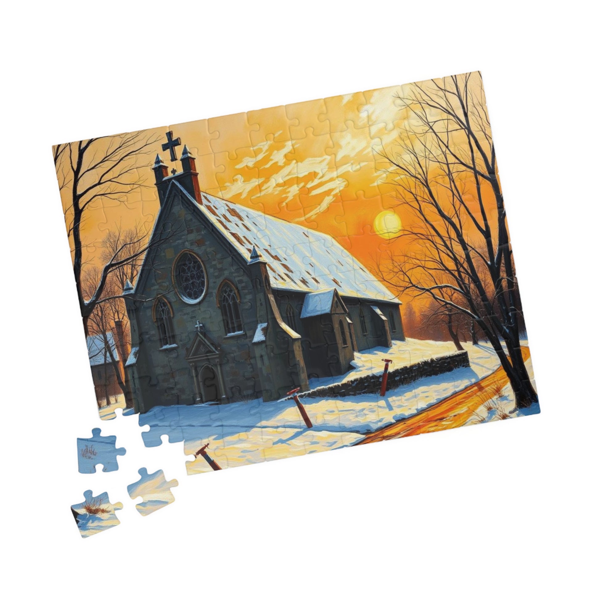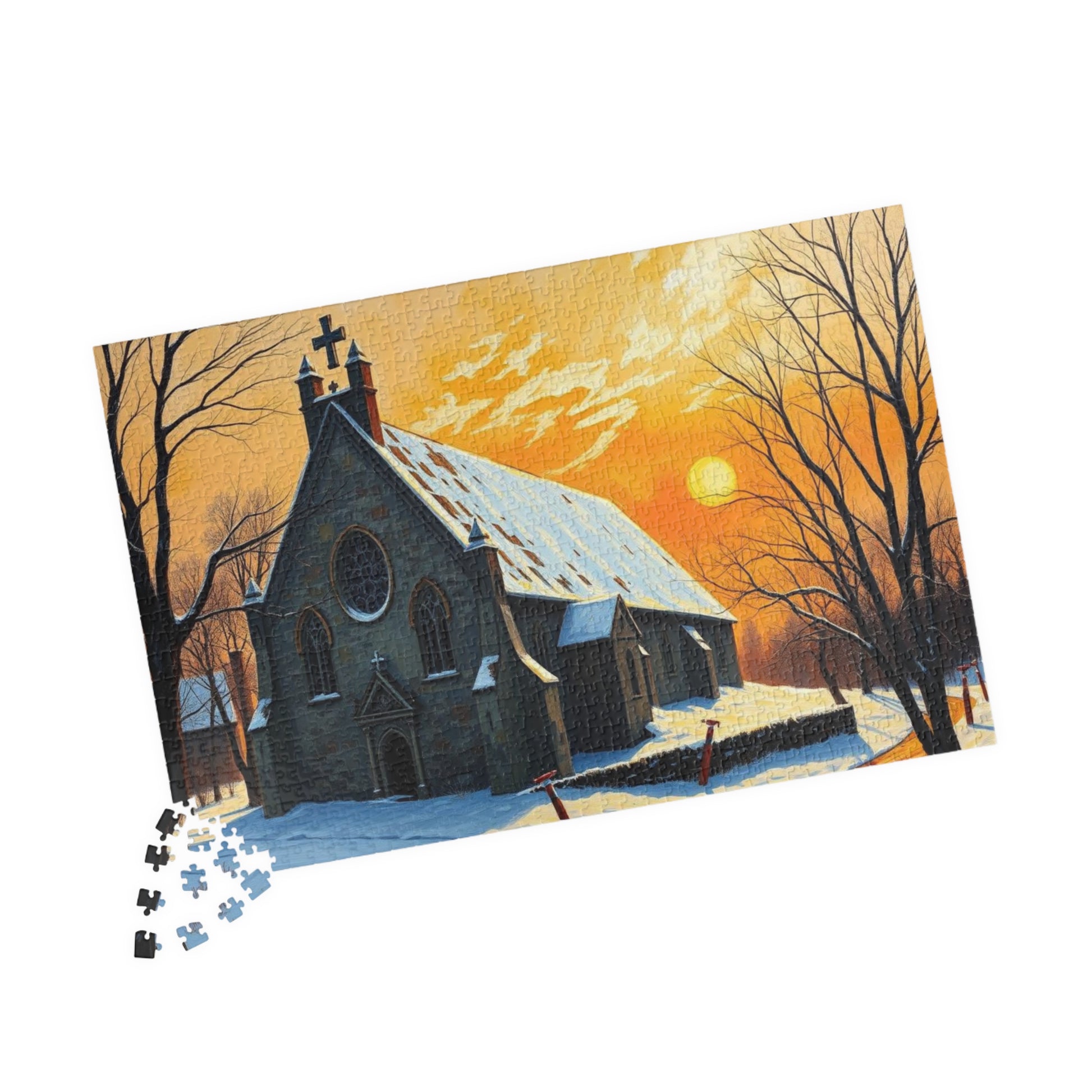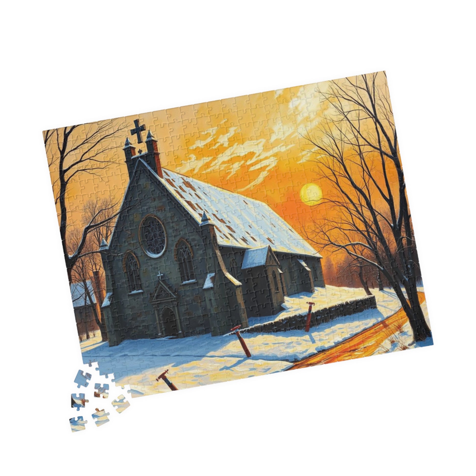 Twilight Cathedral Jigsaw Puzzle - Mystical Winter Chapel, Gothic Art Print, Dark Fantasy Art Gift for Puzzle Enthusiasts, Holiday Activity