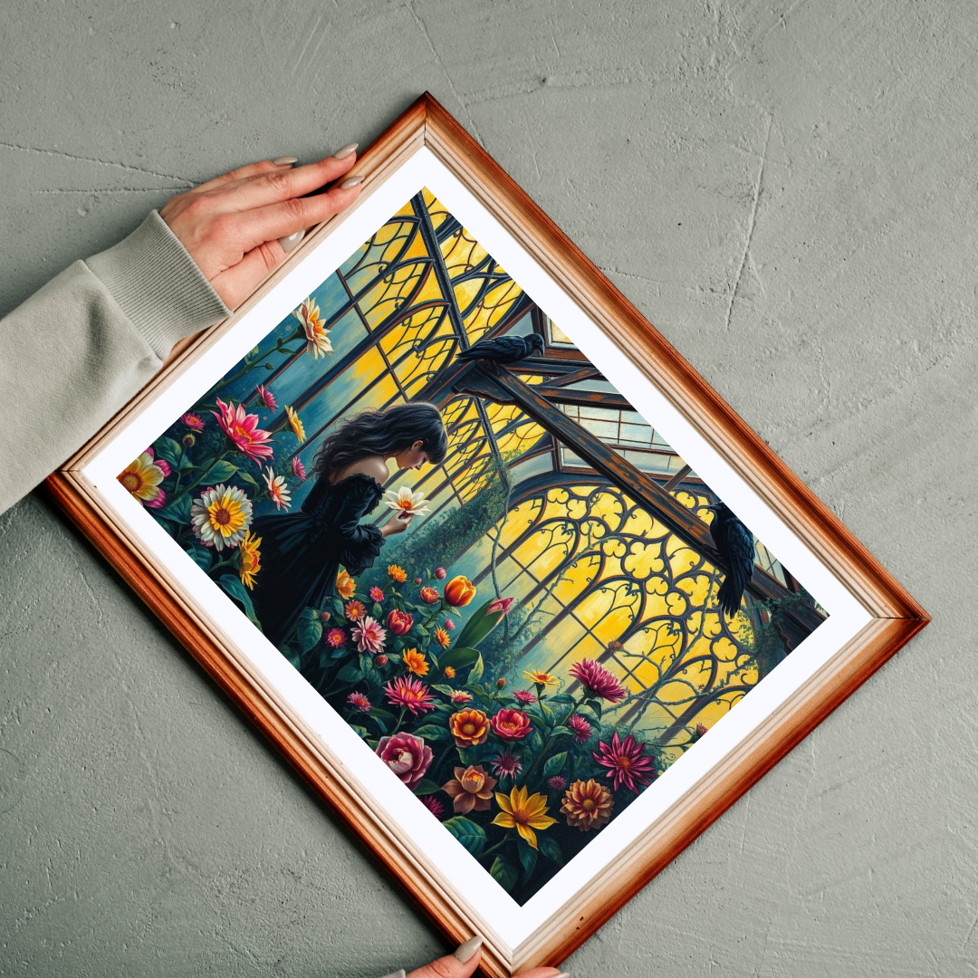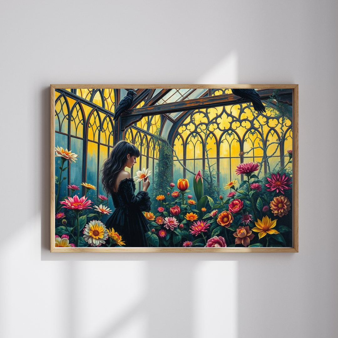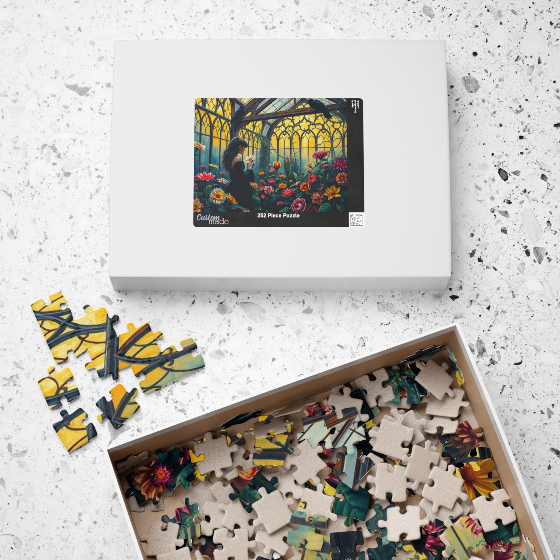 Immerse yourself in the dark and mysterious atmosphere of a gothic greenhouse with this puzzle featuring vibrant colors and a cracked stained glass design. Perfect for those who love a challenge and enjoy unique and haunting artwork. Ideal for Halloween, gothic enthusiasts, and puzzle lovers.