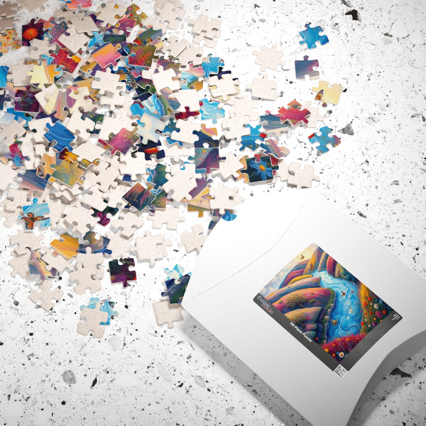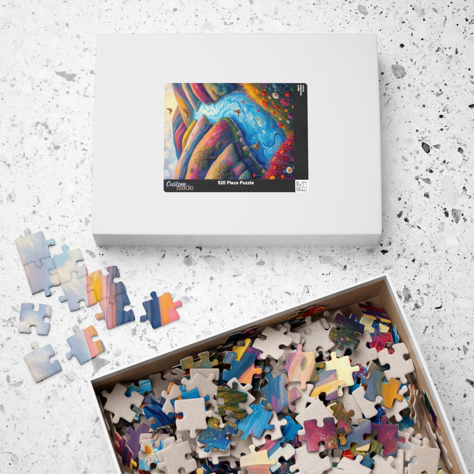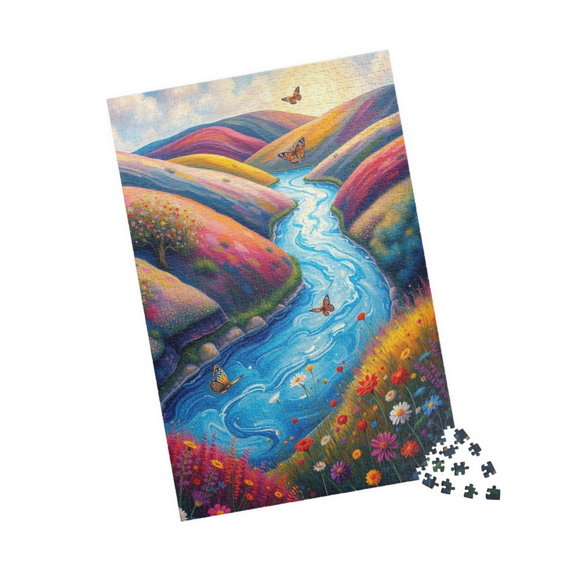 Valley Whispers - River Through Candy Hill Jigsaw Puzzle Collection, Beautiful Nature Puzzle, Colorful Landscape Art, Puzzle Lover Gift, Family Fun, 110/252/520/1014