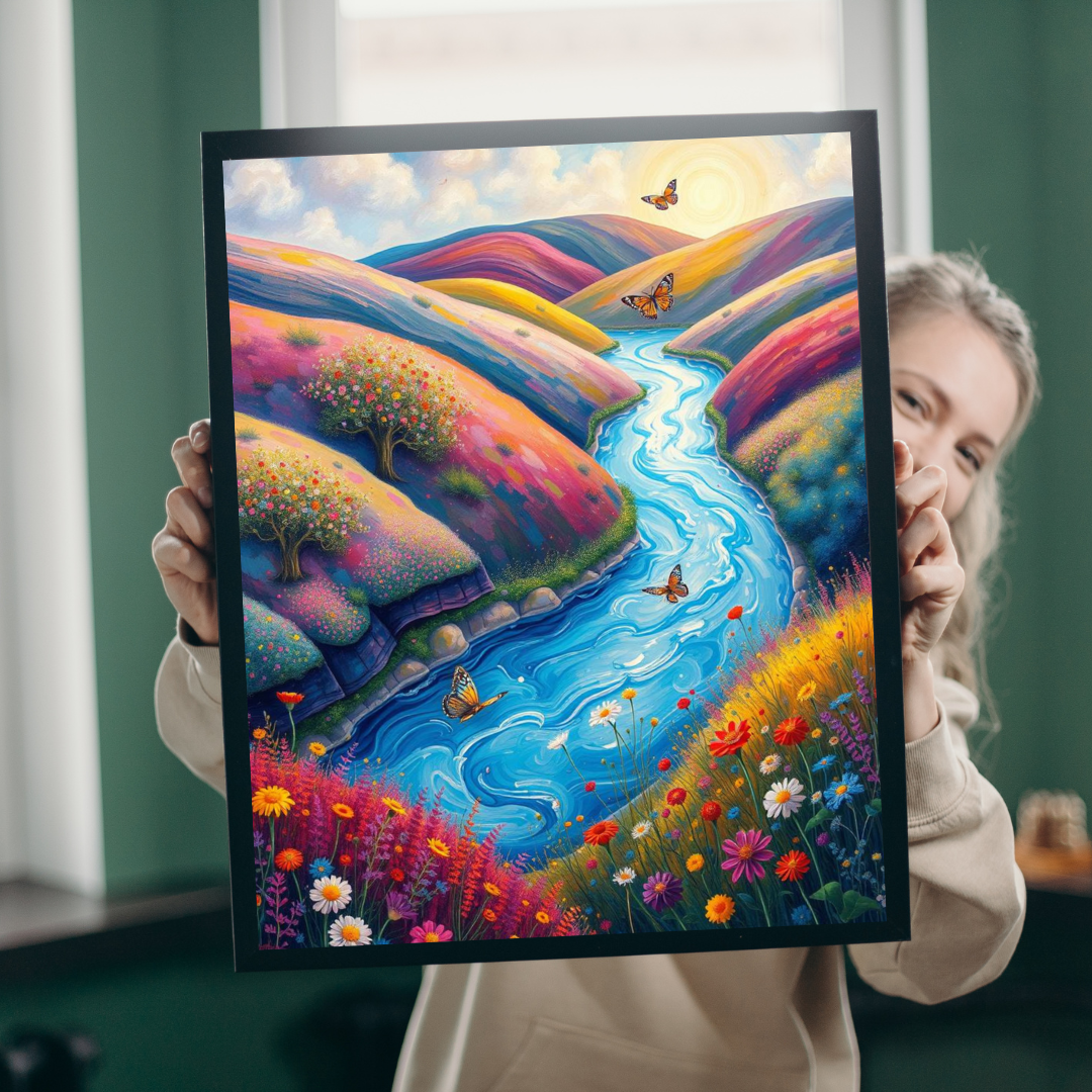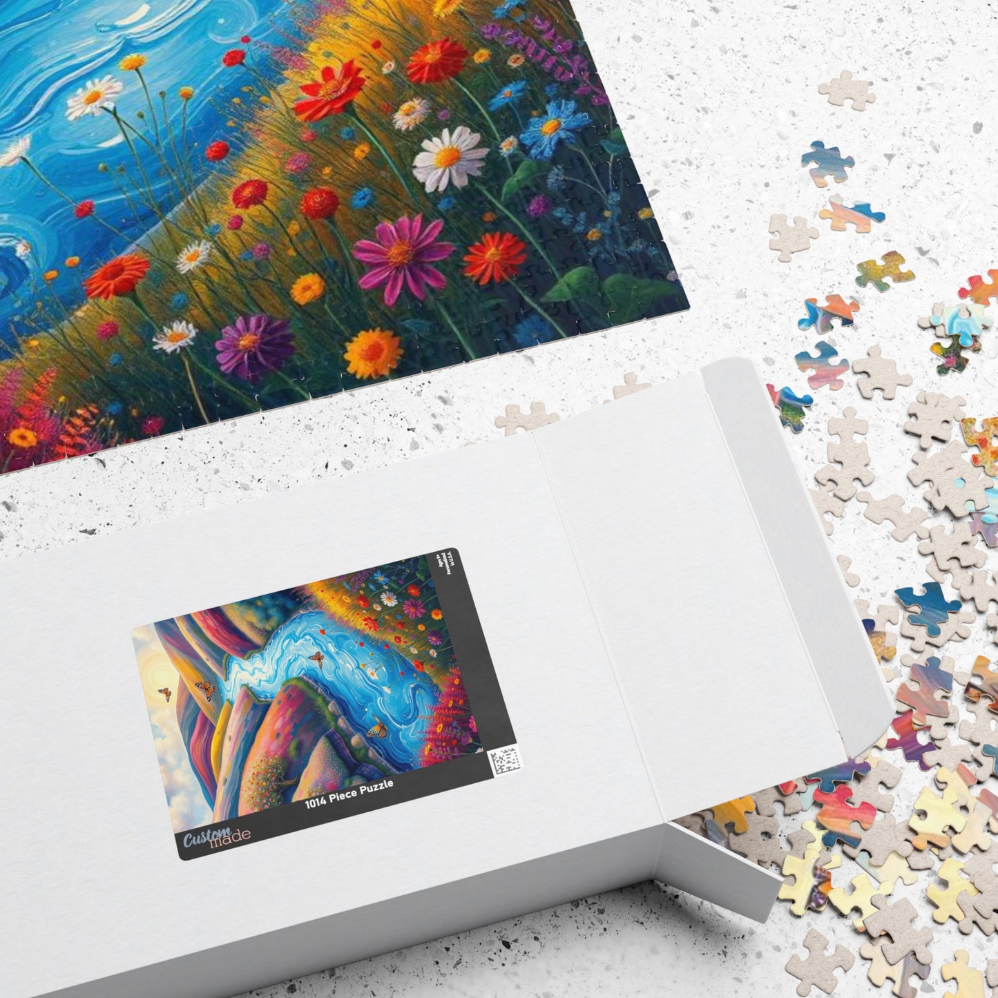Step into a dreamland where summer sings in swirls of color. River Through Candy Hills invites you to explore a magical valley where a shimmering river winds between soft, sugar-toned hills. Vibrant wildflowers bloom in impossible shades, and butterflies dance overhead like floating confetti. Inspired by the whimsical, poetic color palette of Marc Chagall, this puzzle offers a serene and surreal summer escape—perfect for puzzle lovers who crave both challenge and charm. Every piece unlocks a new pocket of beauty in this pastel wonderland. Ideal for puzzle enthusiasts or anyone seeking a relaxing hobby, it makes an excellent gift for birthdays, holidays, or simply to show you care. Celebrate special occasions with this lovely activity that adds warmth and connection to your moments together.