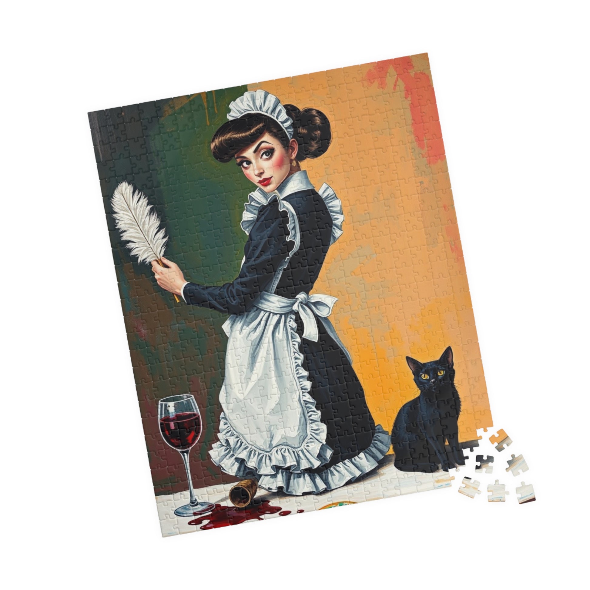 Vintage Maid Jigsaw Puzzle 110-1014 Piece | Retro Pop Art, Home Entertainment, Gift for Cat Lovers, Puzzle Night, Unique Collectible